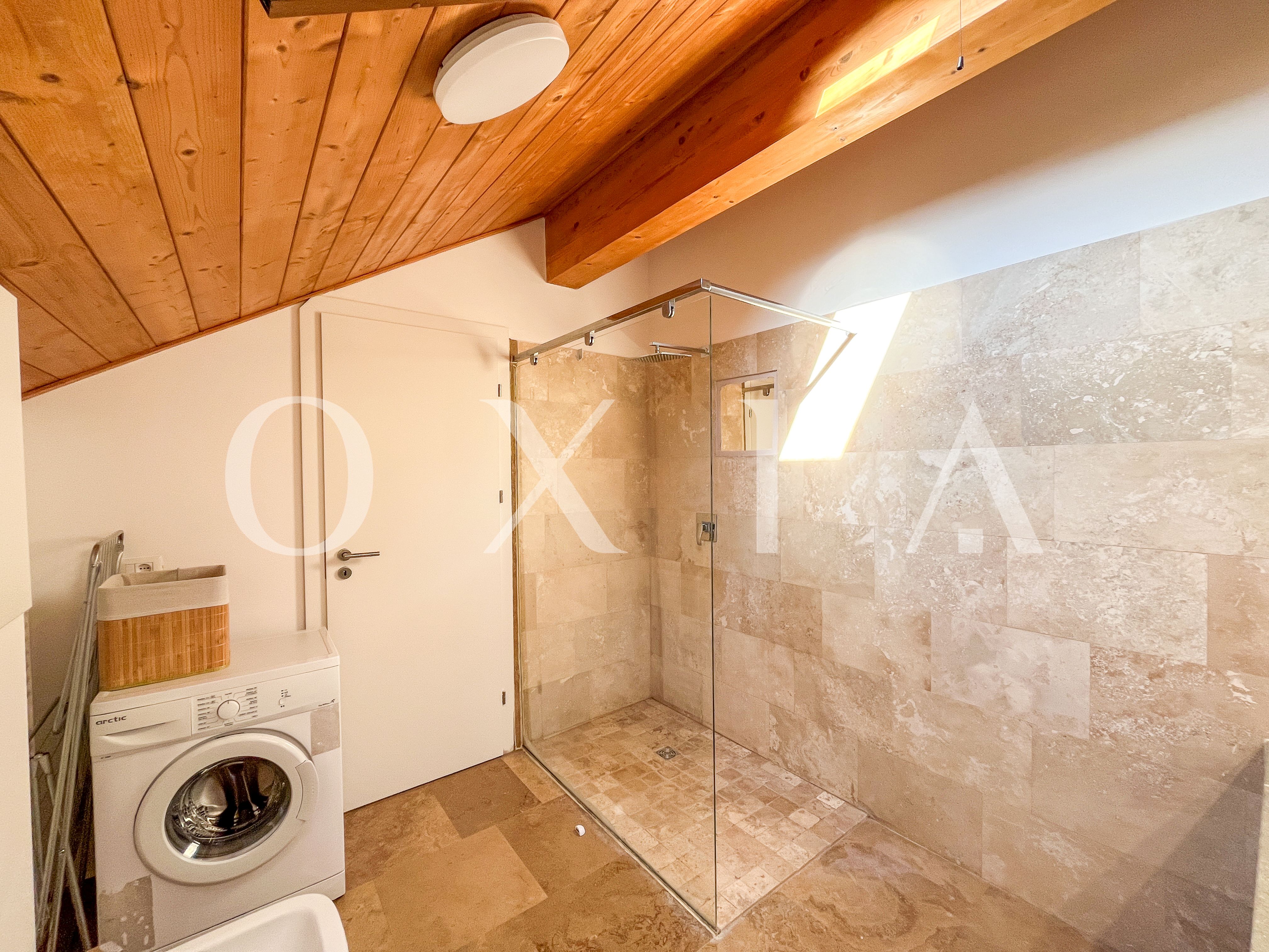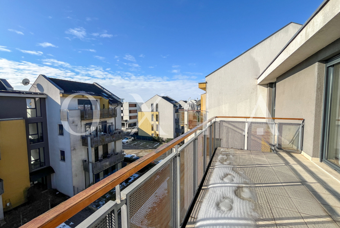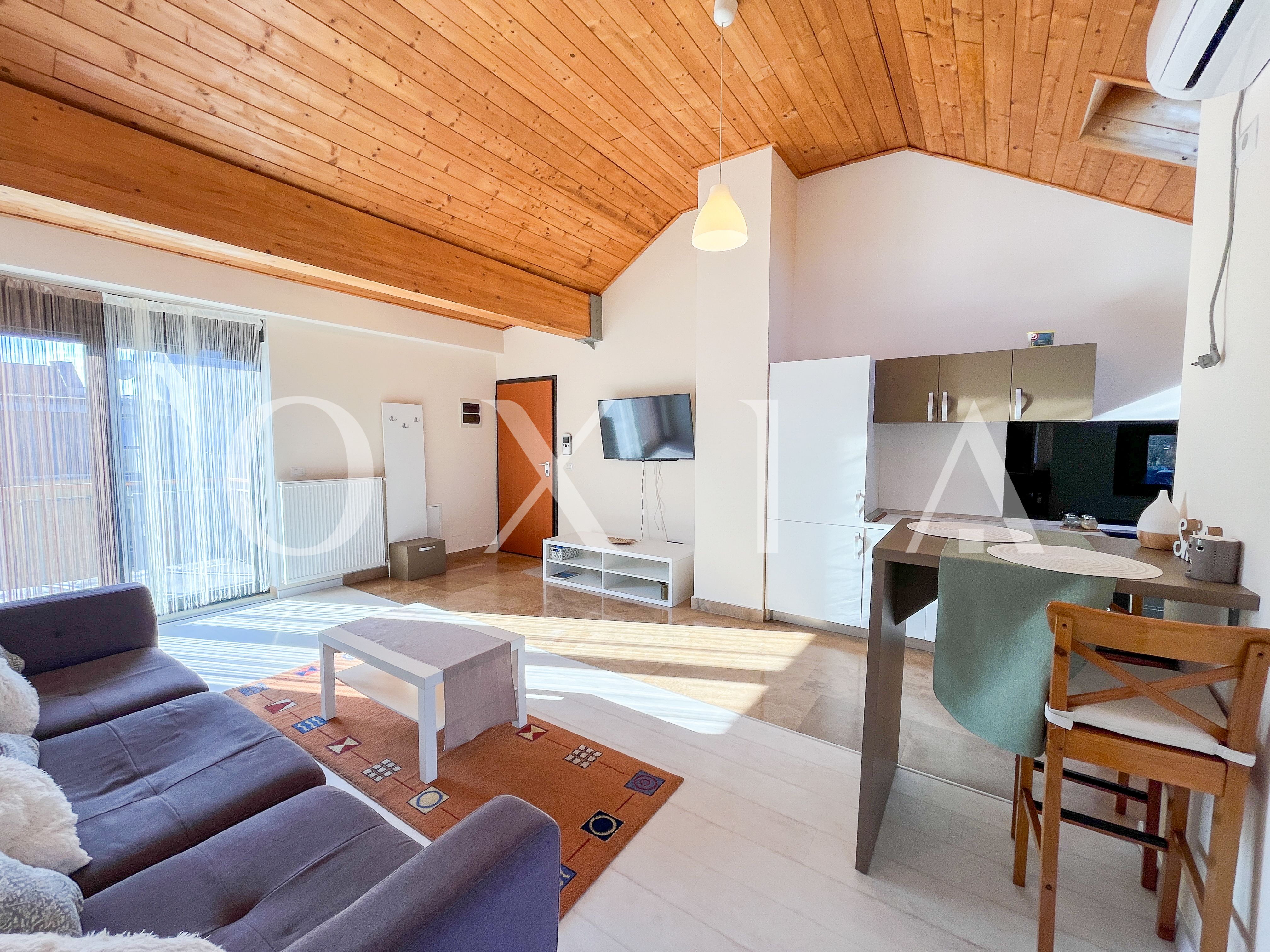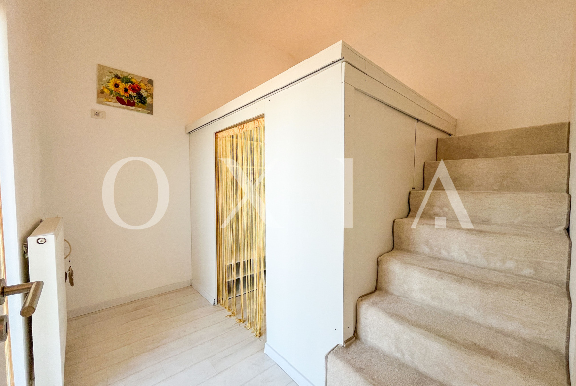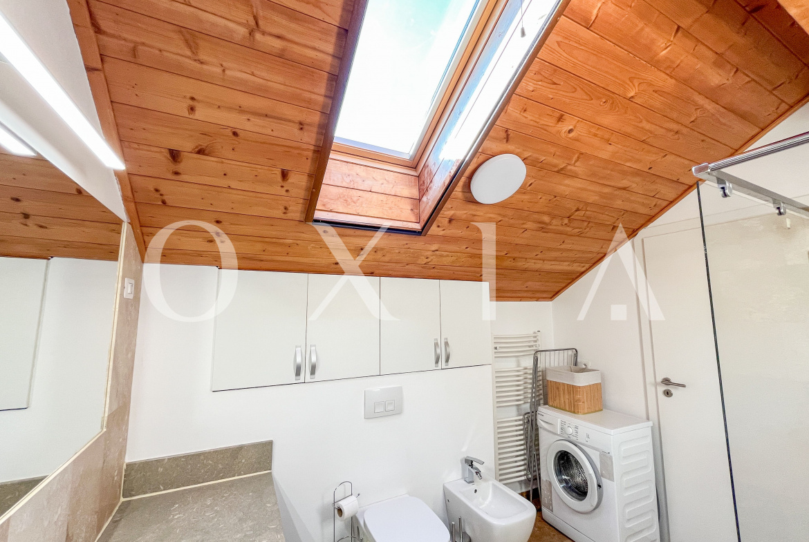 Locuinta beneficiaza de ferestre suplimentare Velux actionate electric prin telecomanda, tamplarie din aluminiu, usi interioare Porta Doors si se inchiriaza complet mobilata si utilata.