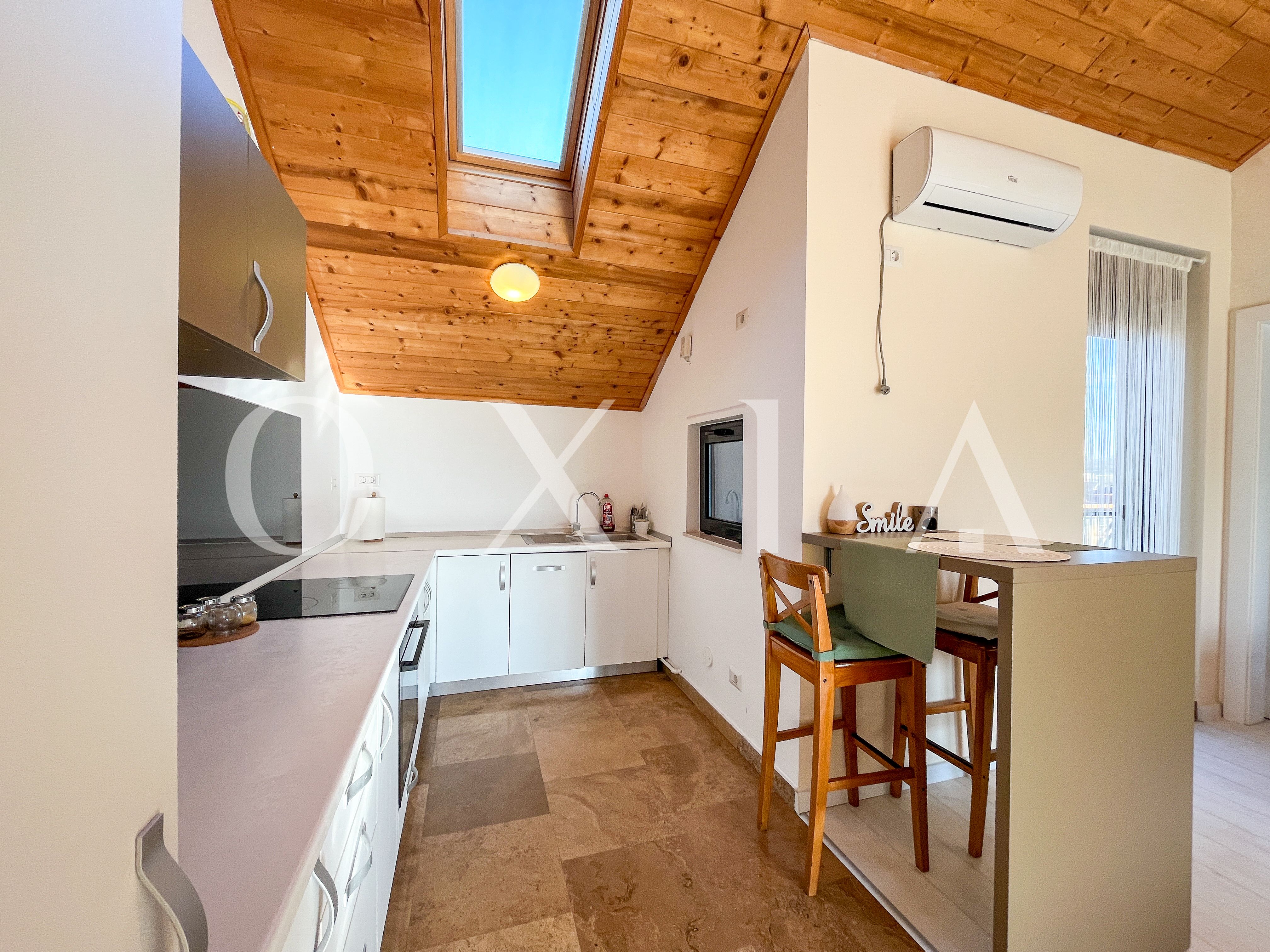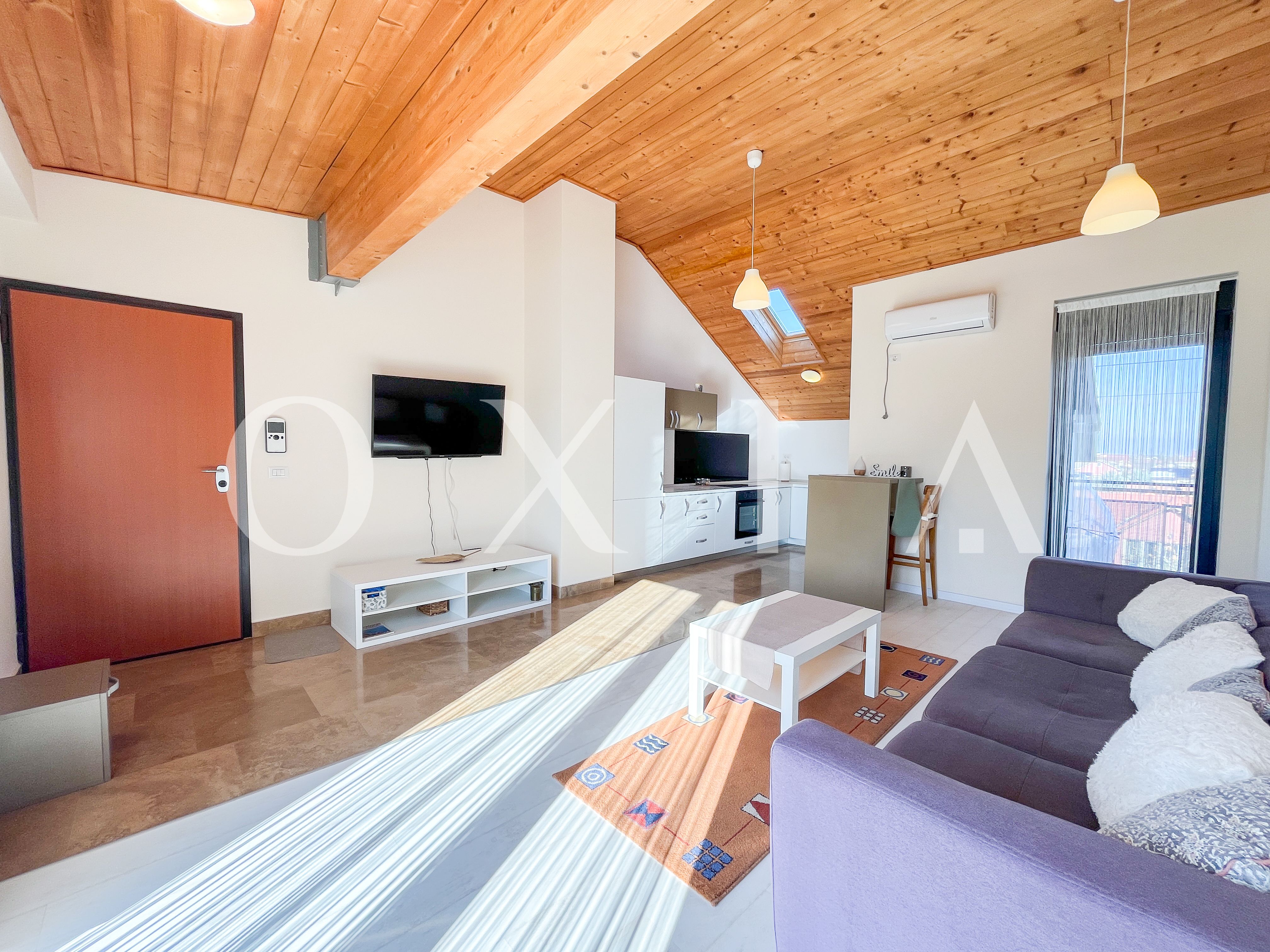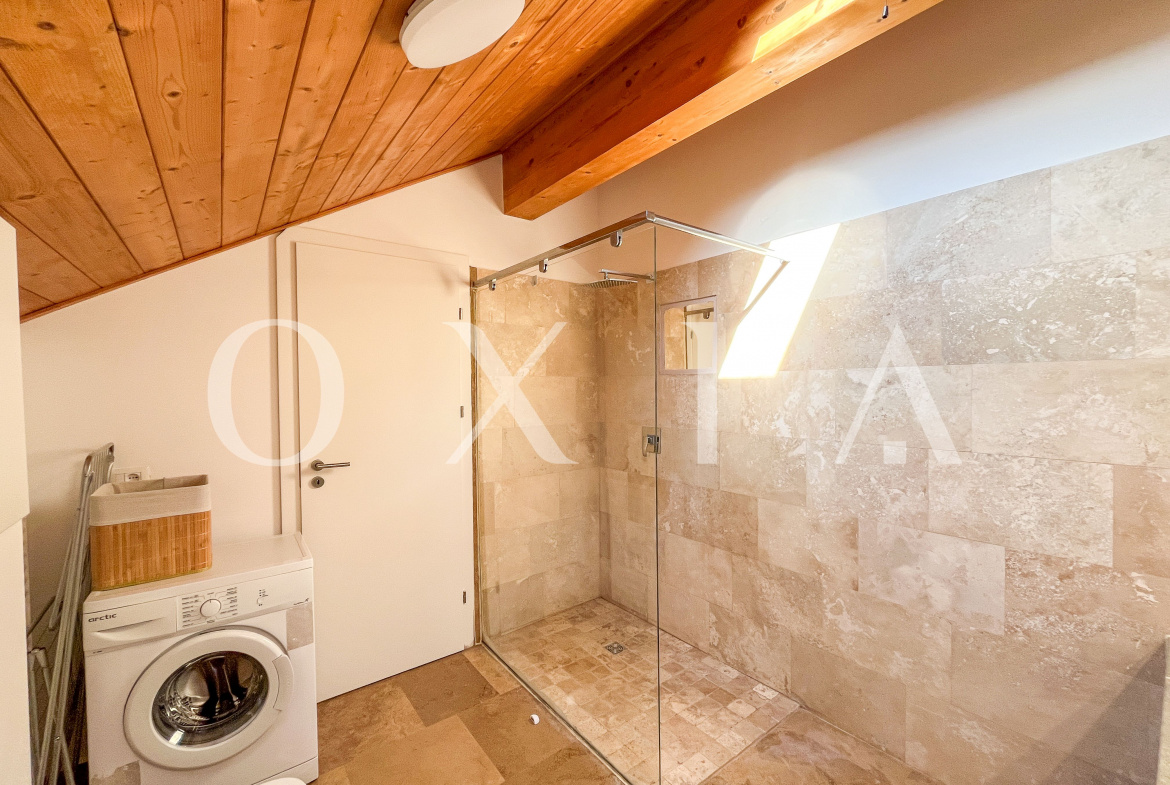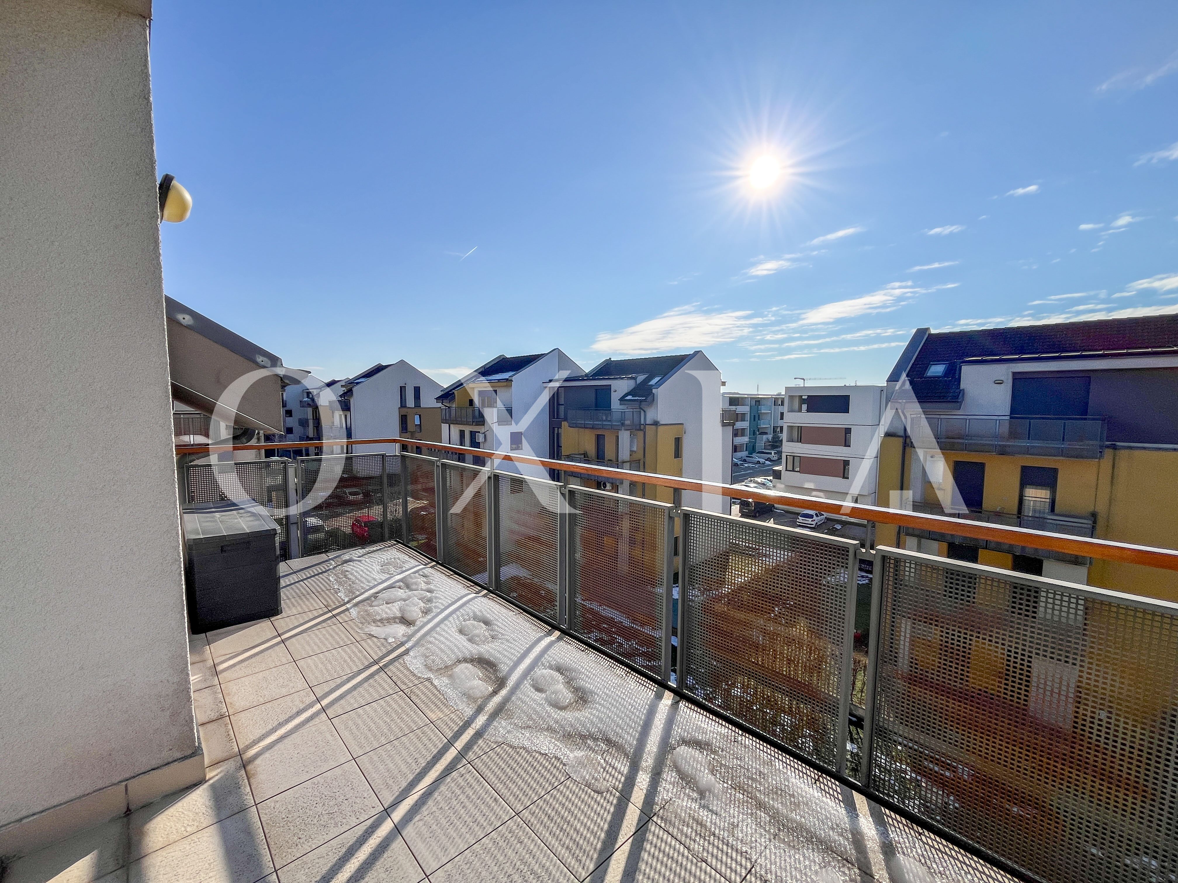 Locuinta beneficiaza de ferestre suplimentare Velux actionate electric prin telecomanda, tamplarie din aluminiu, usi interioare Porta Doors si se inchiriaza complet mobilata si utilata.