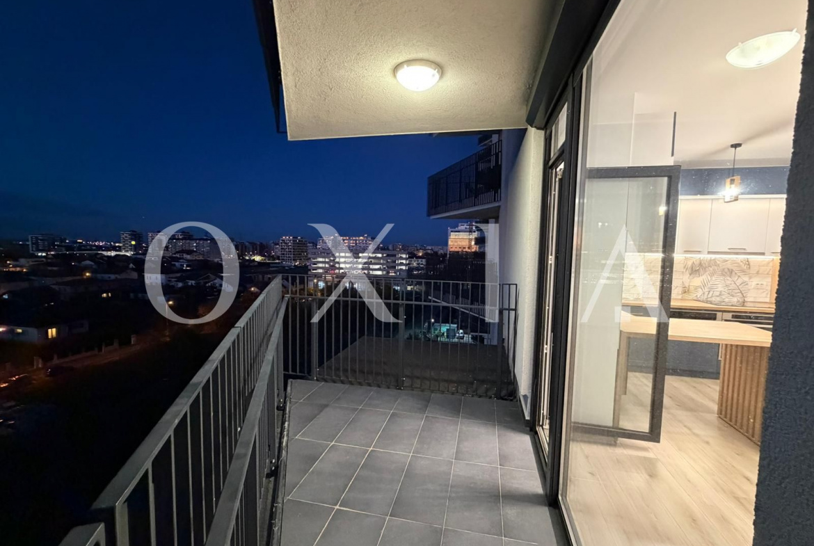 OXIA The Real Estate Agency prezinta spre vanzare apartament cu 3 camere in Timisoara, zona Torontalului, ansamblu rezidential XCity Towers, la eajul 7 din 16 (imobil cu doua ascensoare), cu suprafata de 63.81 mp plus 8.33 mp balcoane, compartimentat astfel: