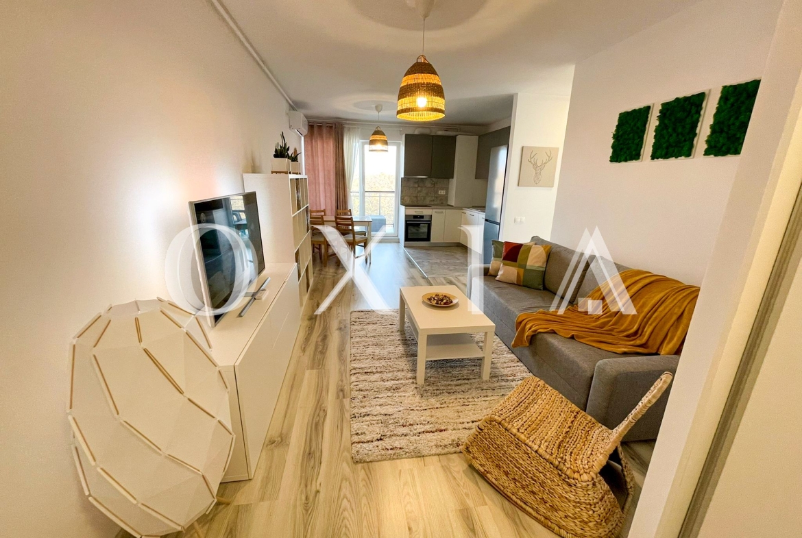 OXIA Imobiliare ofera spre inchiriere apartament cu 3 camere in Timisoara, zona Lipovei, situat in complexul rezidential Adora Forest, la etajul 8 din 11, cu suprafata de 60 MP utili + 8 MP terasa, compartimentat astfel: