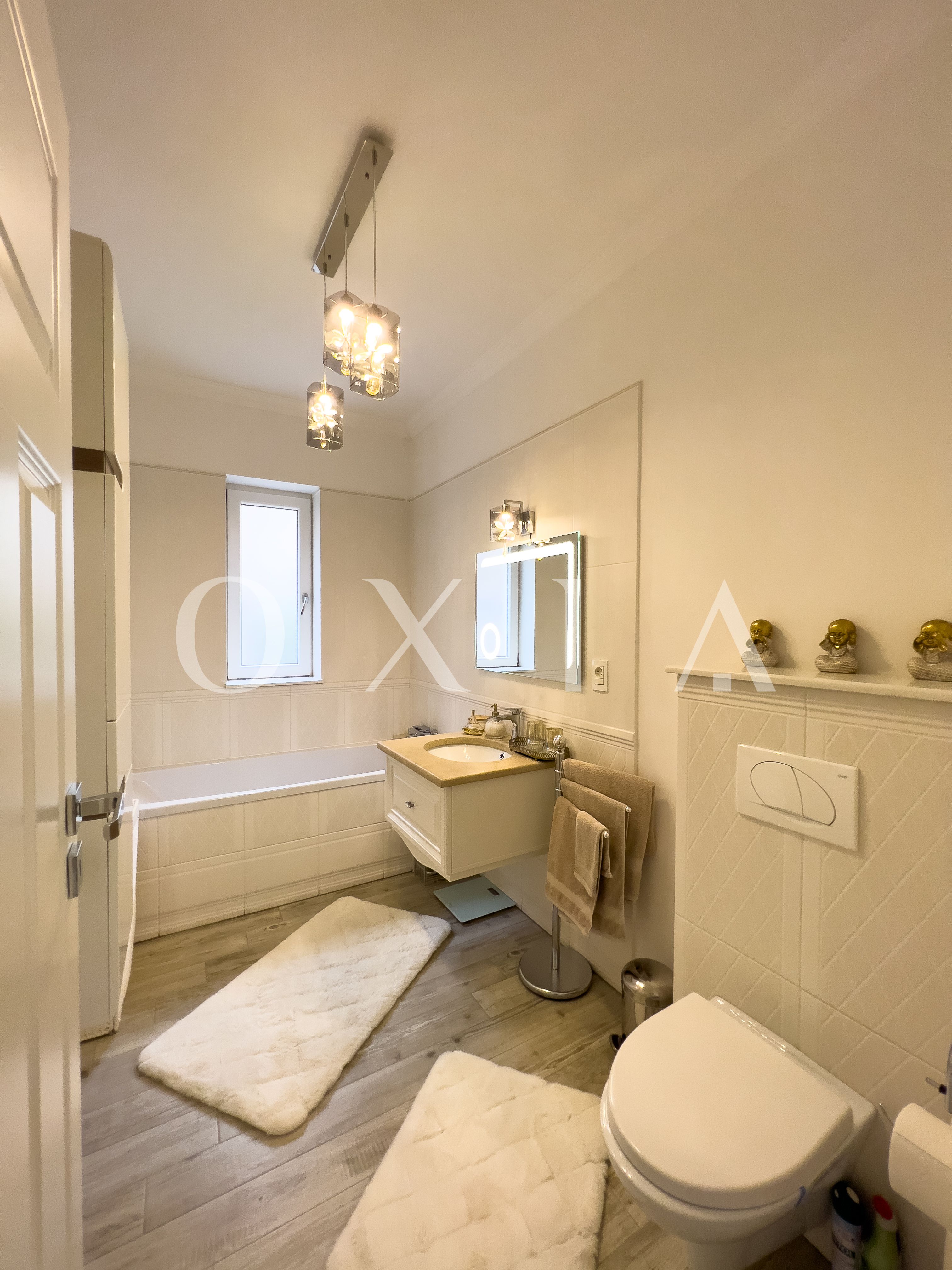 Apartamentul este nou si beneficiaza de amenajari moderne, fiind un adevarat exemplu de bun gust si eleganta. Confortul termic este garantat de centrala proprie pe gaz cu incalzire in pardoseala si de sistemul de climatizare.