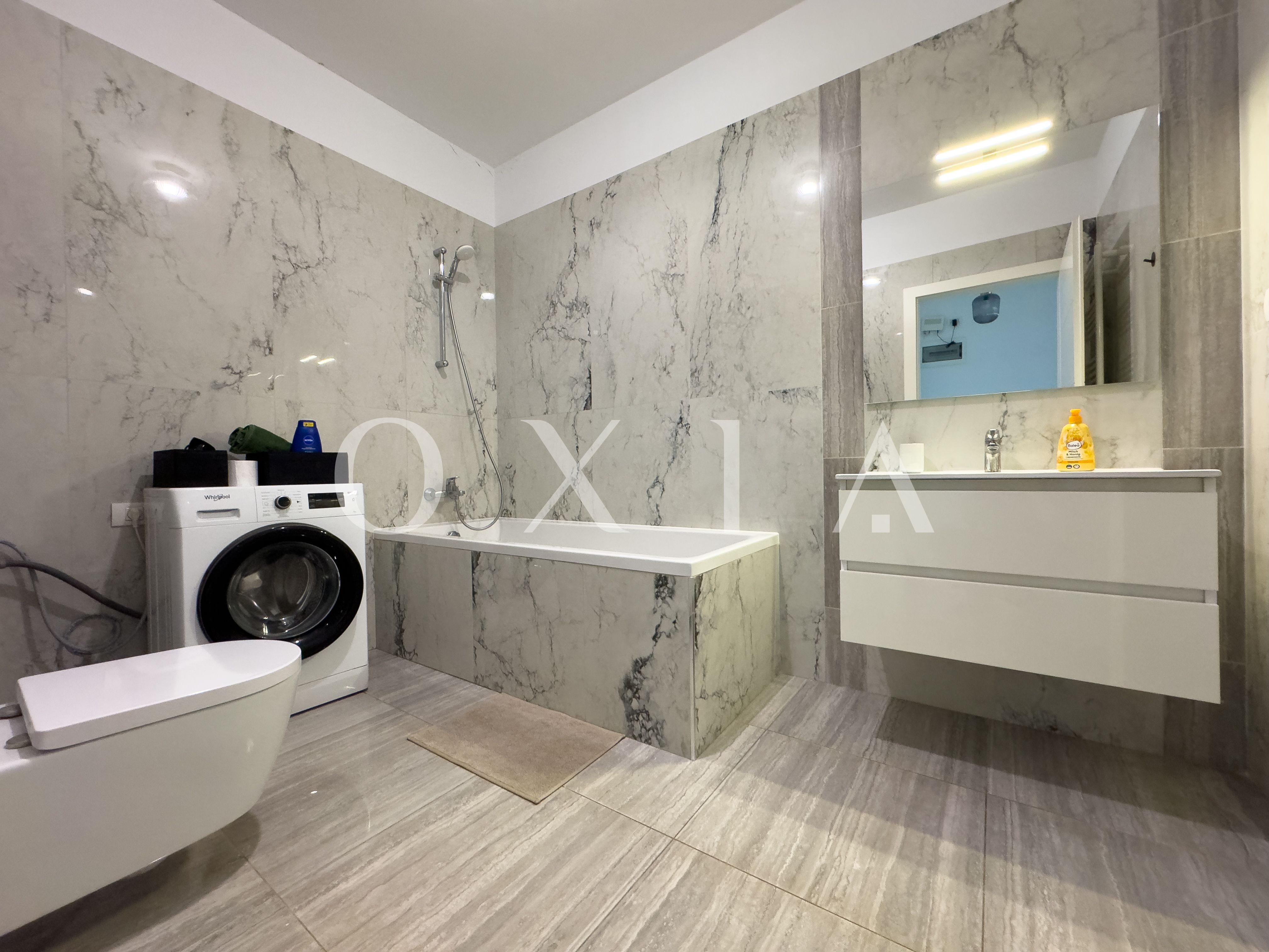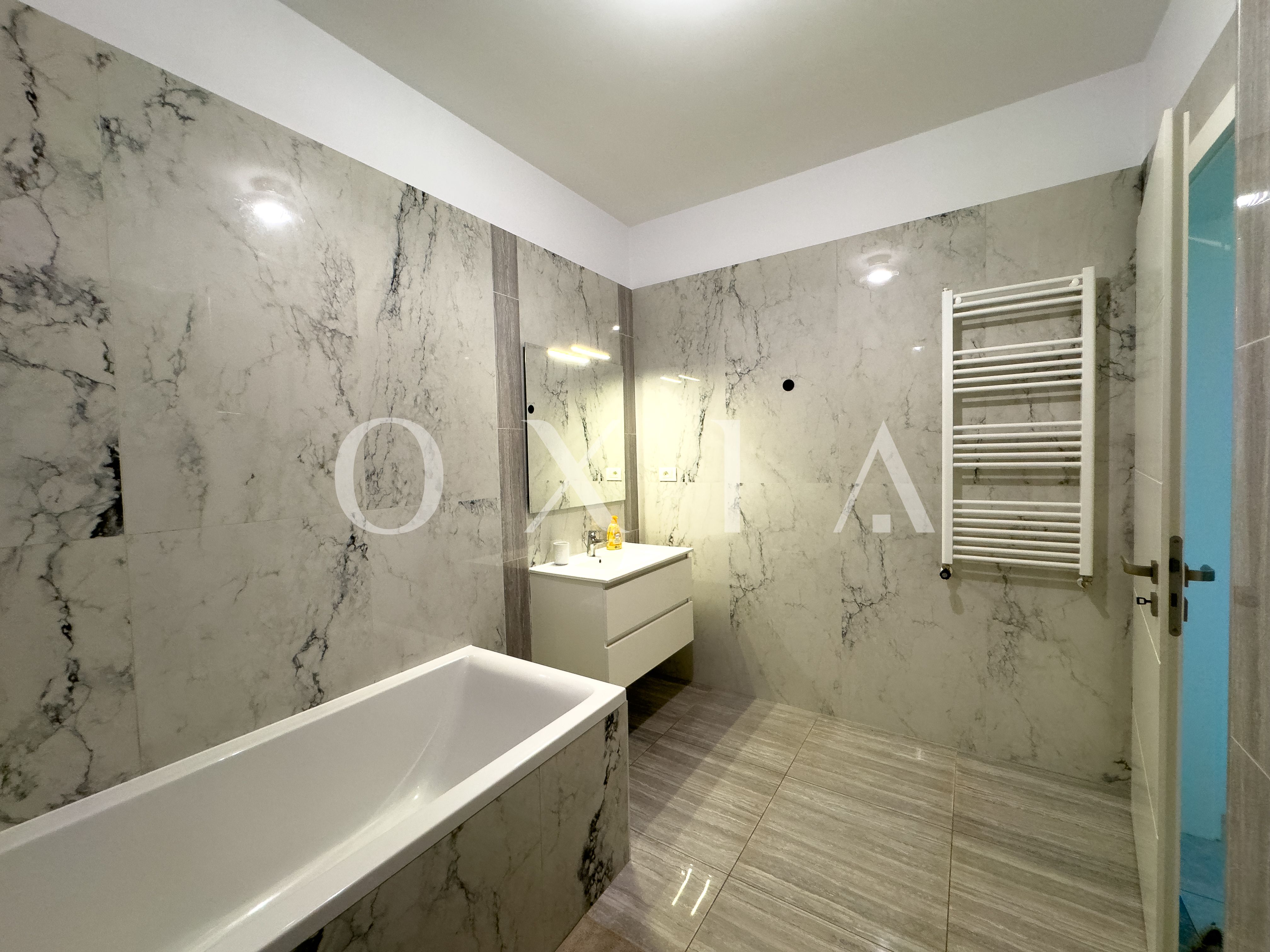 Baie moderna, echipata cu cada si sistem de ventilatie eficient