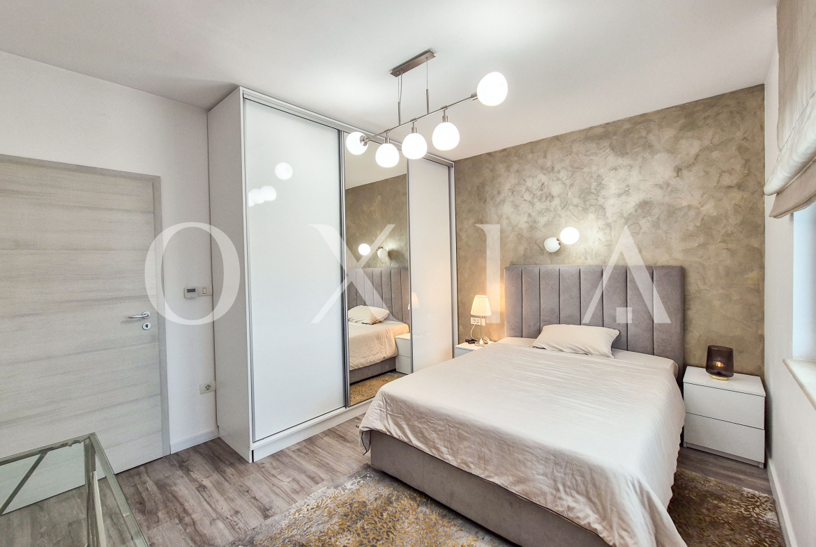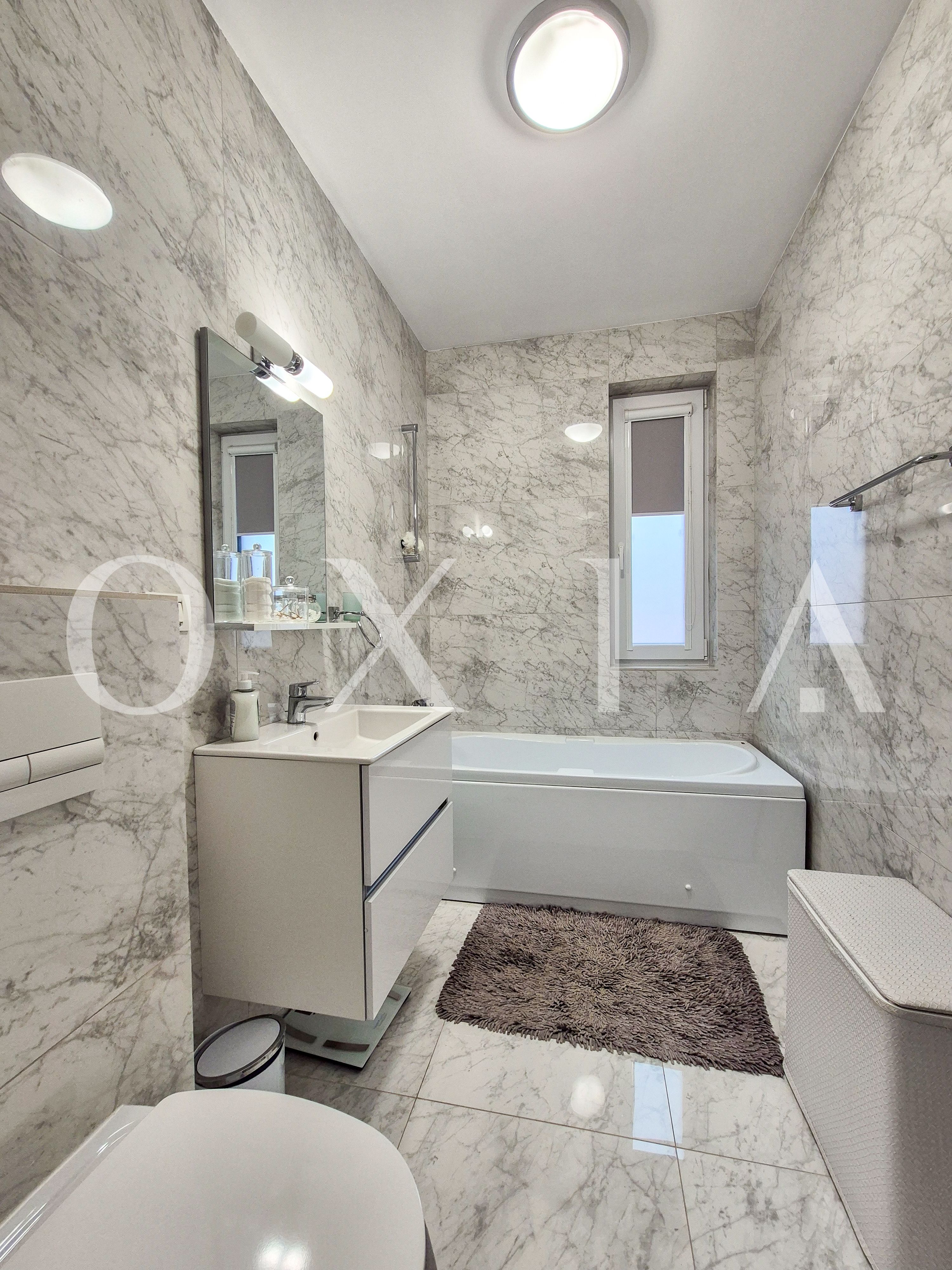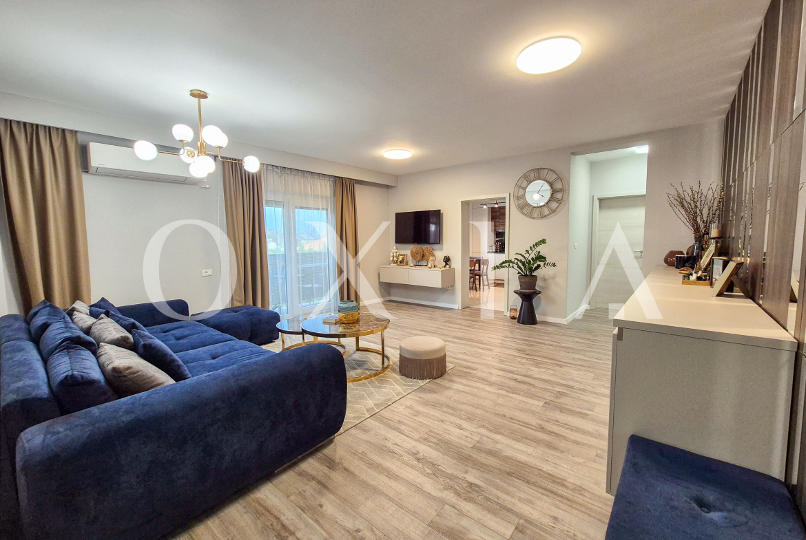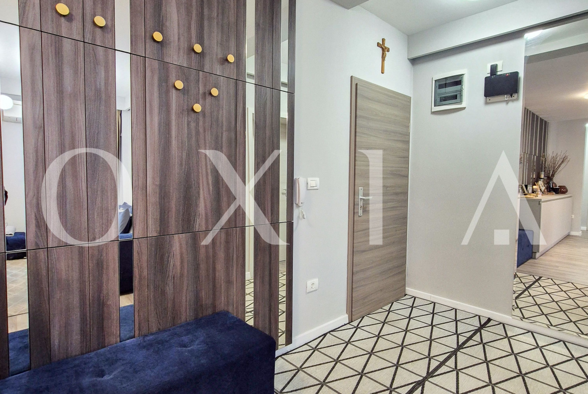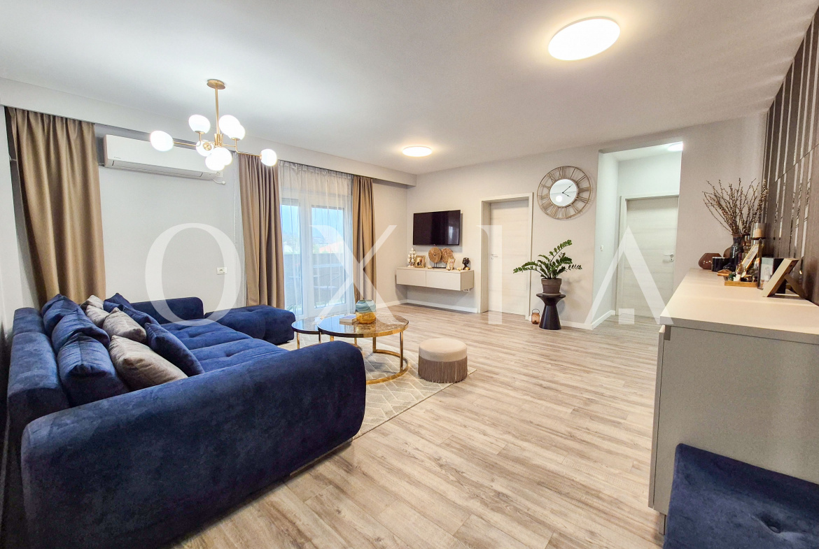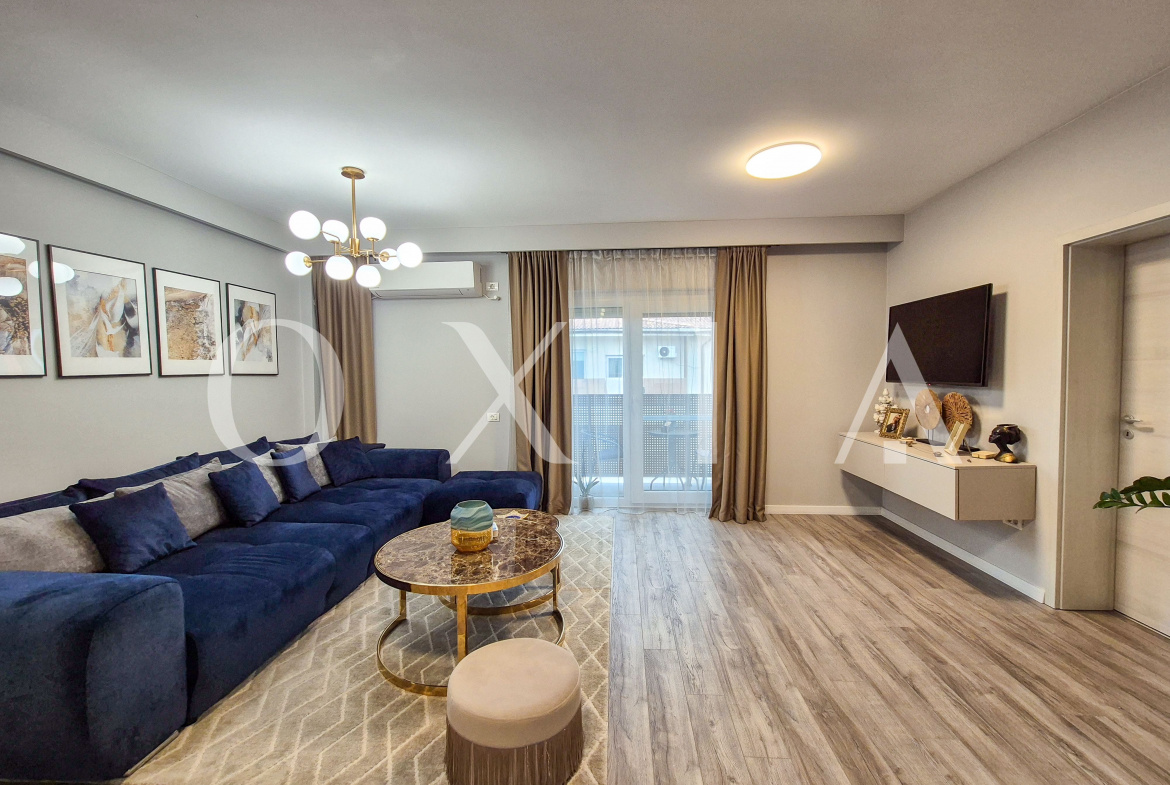 Finisajele si dotarile apartamentului reflecta atentia la detalii si calitatea superioara a executiei: gresie si faianta moderne, tamplarie PVC cu geam termopan, usi interioare elegante, usa metalica la intrare, rulouri electrice si vopsea lavabila. Mobilierul si electrocasnicele de ultima generatie completeaza perfect designul contemporan si functional.
