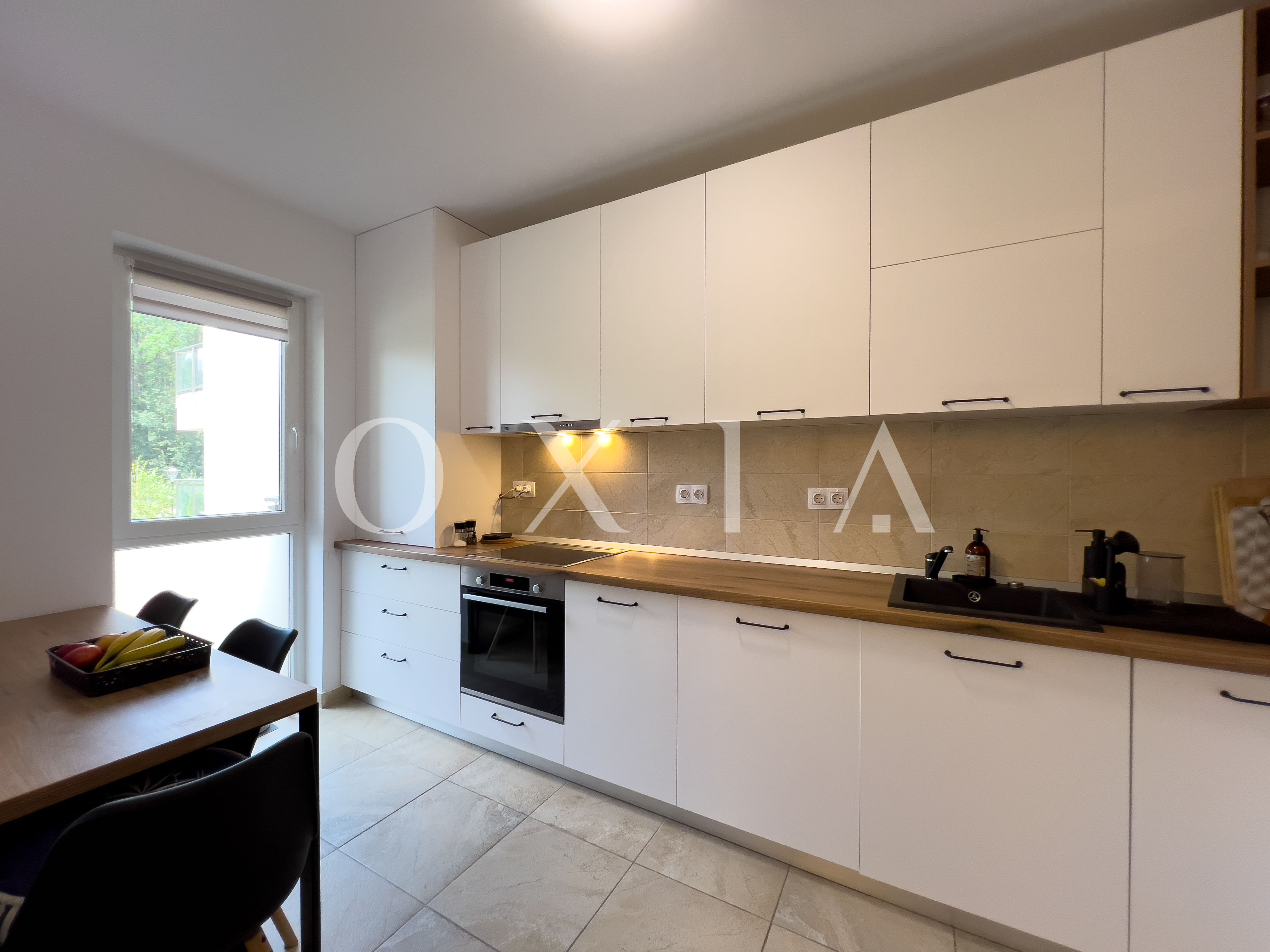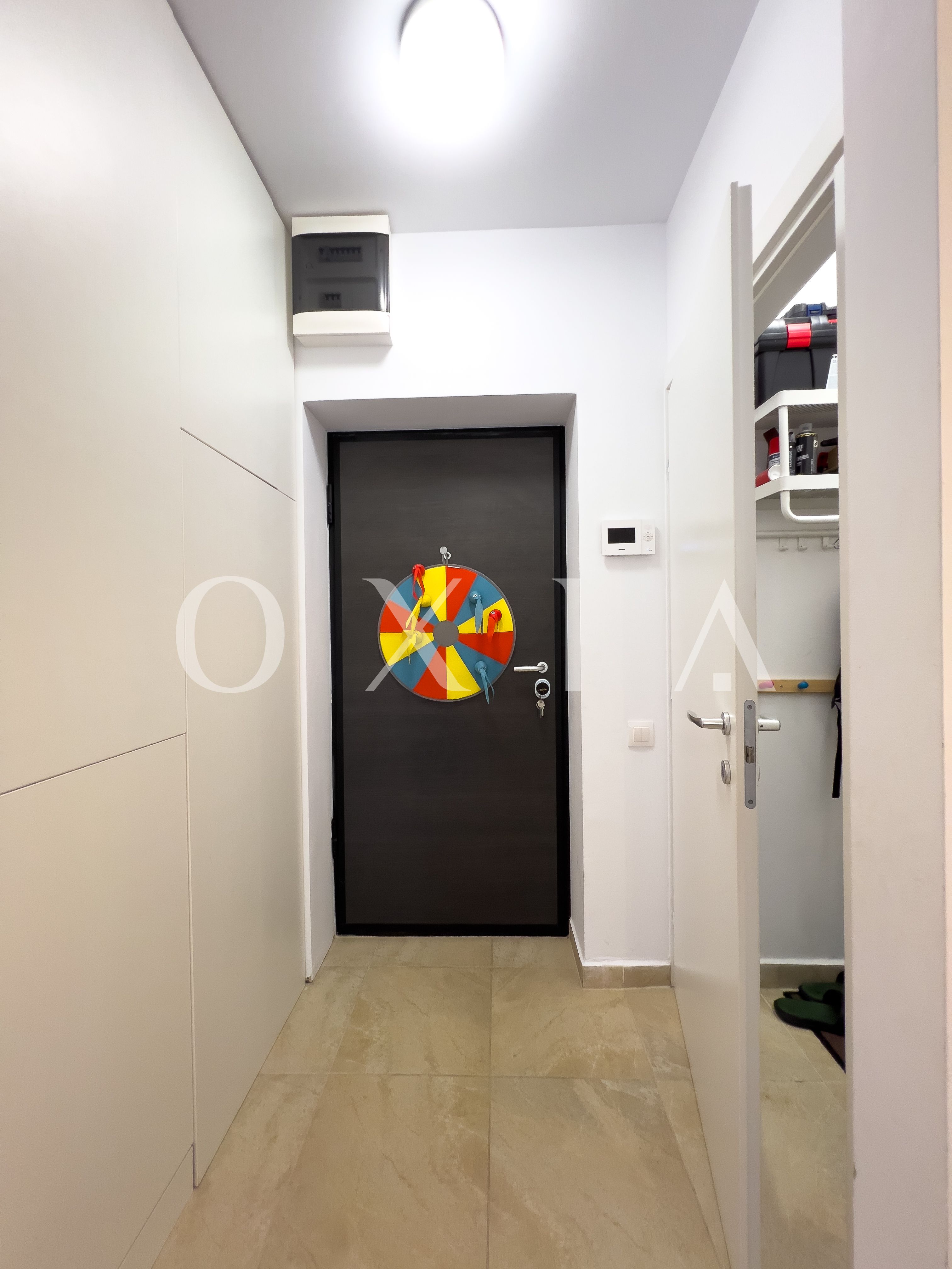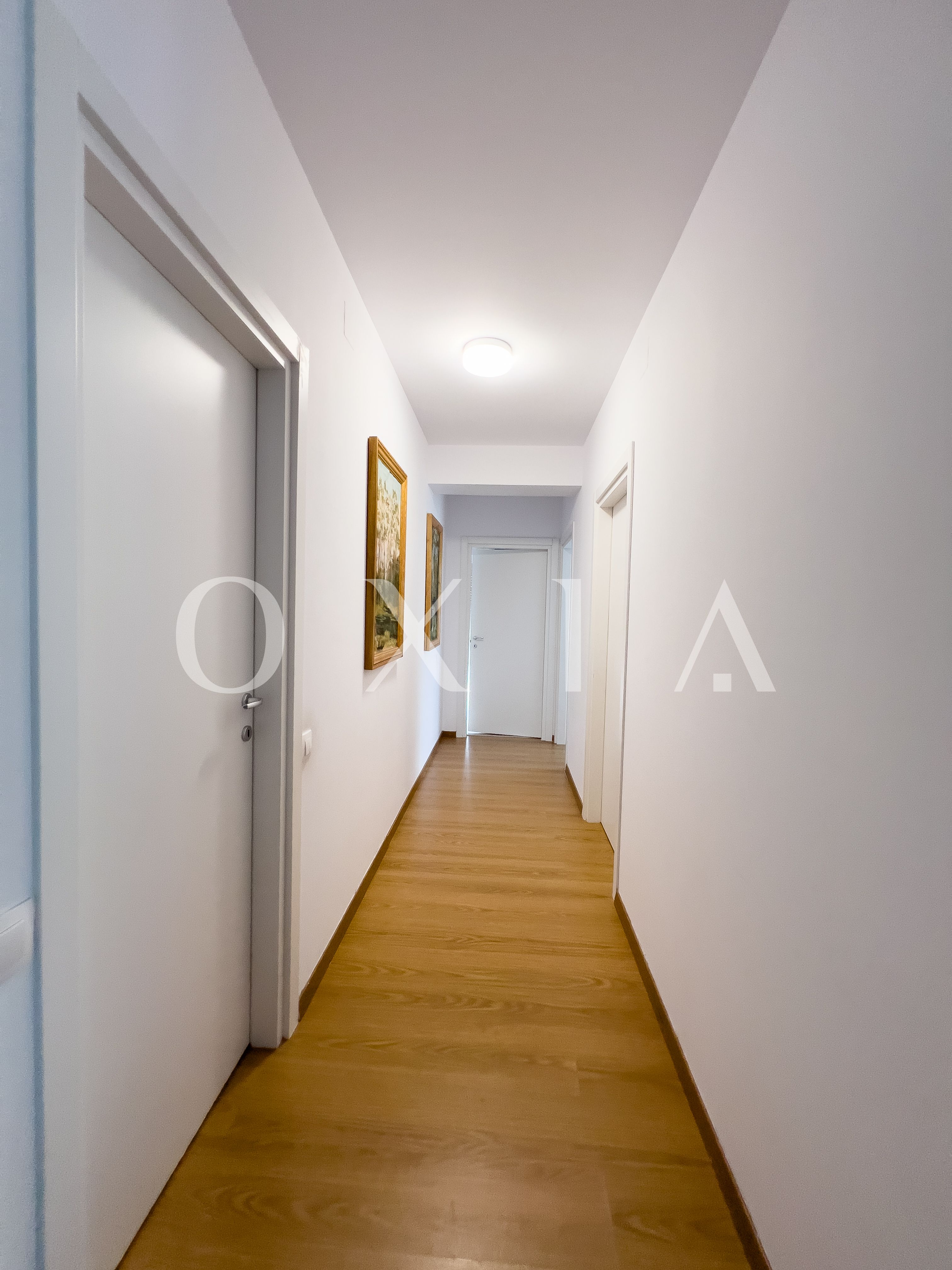 Apartamentul este finisat cu materiale de inalta calitate, incluzand o usa de intrare metalica antiefractie, placi de gresie si faianta moderne, parchet laminat, vopsea lavabila, ferestre PVC cu geam termopan si rulouri exterioare.