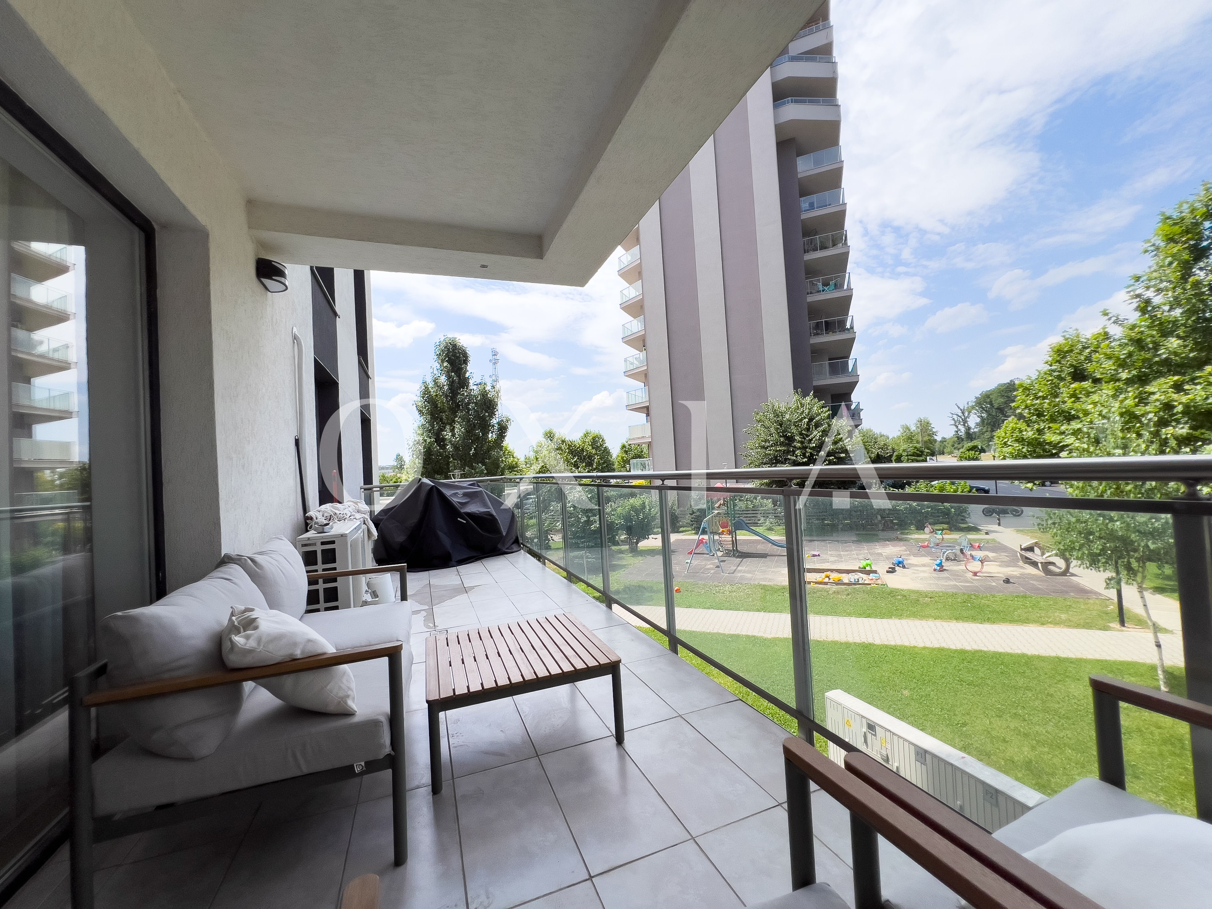 Complexul rezidential include un loc de joaca pentru copii, spatii verzi frumos amenajate si parcare.