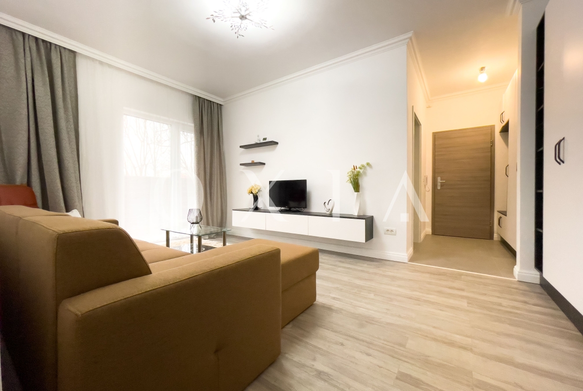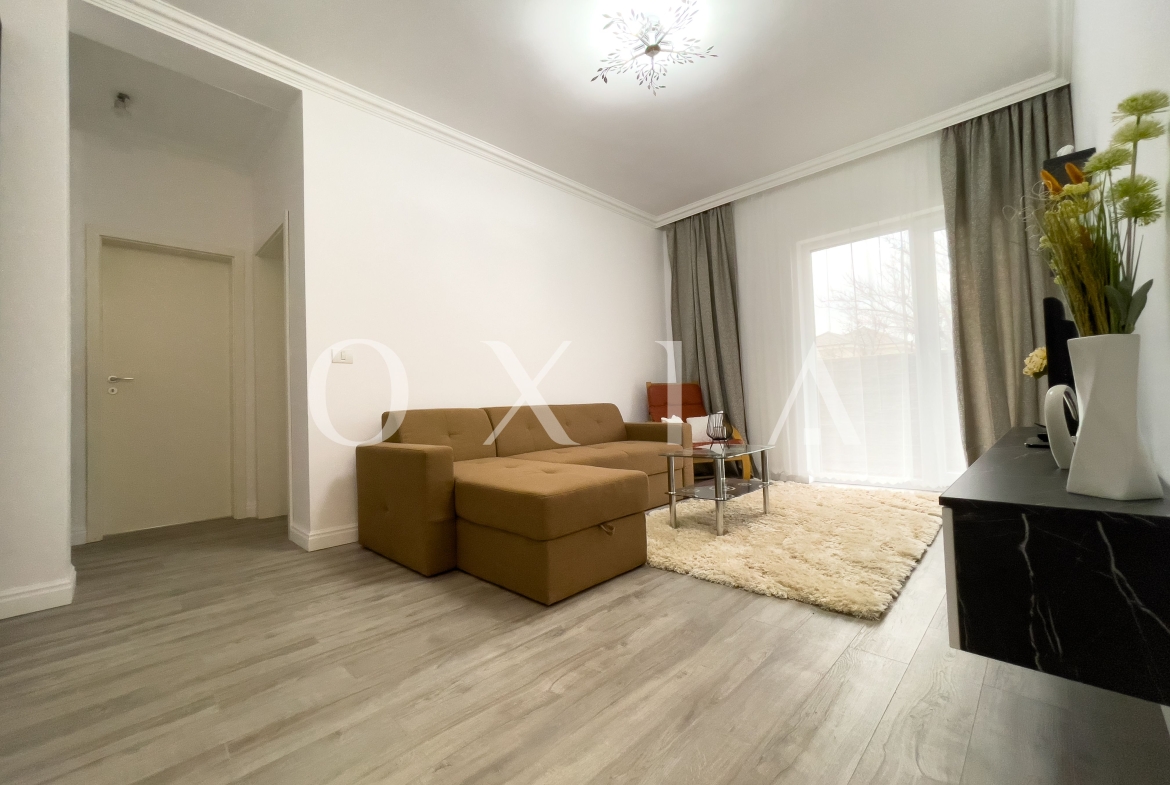 OXIA prezinta spre inchiriere apartament cu 2 camere in Giroc, situat la parterul unui imobil cu 2 etaje, semidecomandat, cu suprafata de 50 MP utili + 40 MP gradina, compartimentat astfel: