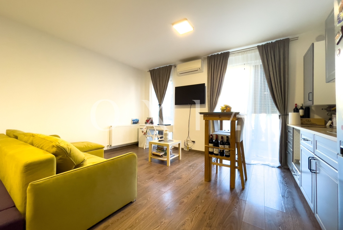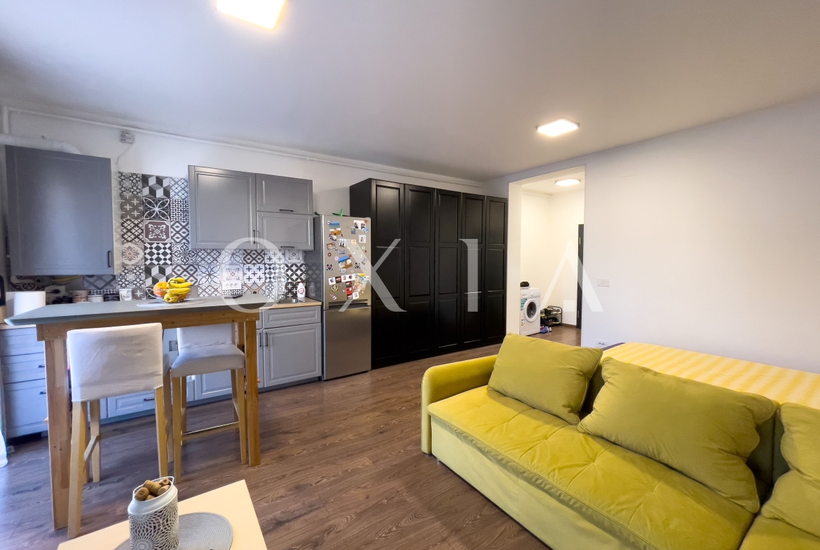OXIA prezinta spre vanzare apartament cu 1 camera tip STUDIO, situat in Timisoara, zona Girocului-Braytim ( strada Mures ), situat la parter, cu suprafata de 35,26 MP utili + 25 mp gradina proprie, compartimentat astfel: