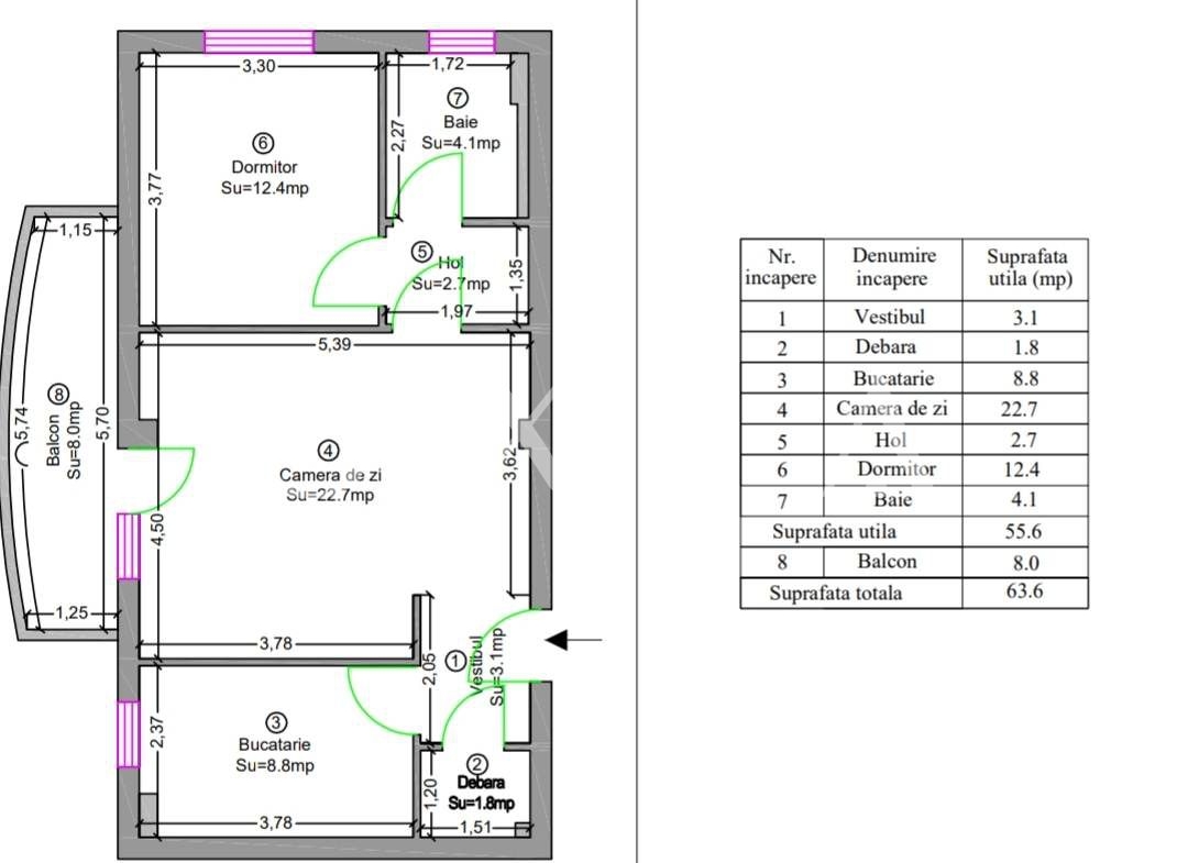 • Suprafata proprietate 55.6 mp