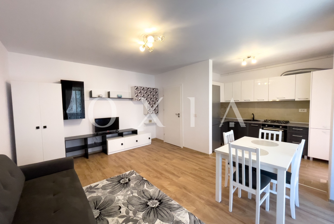 OXIA prezinta spre inchiriere aparatment cu 2 camere in Timisoara, zona Aradului, strada Armoniei, complex rezidential IRIS , situat la etajul 2 din 9, cu suprafata de 60 MP, compartimentat astfel;