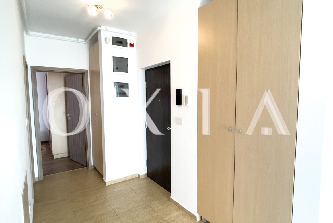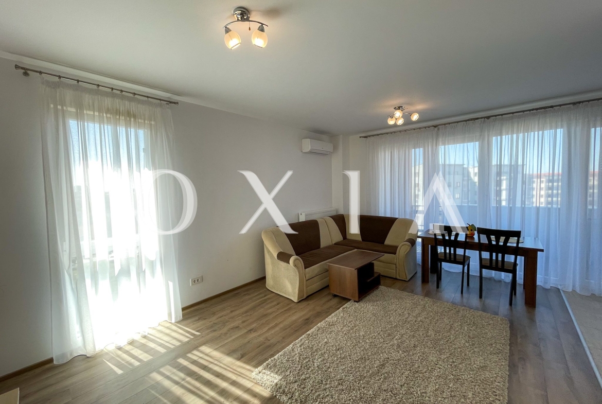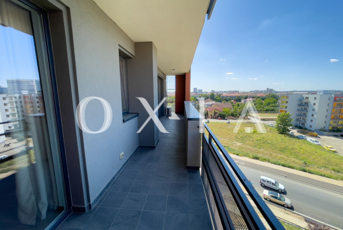 OXIA prezinta spre inchiriere apartament cu 2 camere in Timisoara, zona Aradului, complex rezidential IRIS, situat la etajul 6 din 8 ( imobil cu 2 lifturi ), cu suprafata de 55 MP utili + terasa pe toata lungimea apartamentului, compartimentat astfel: