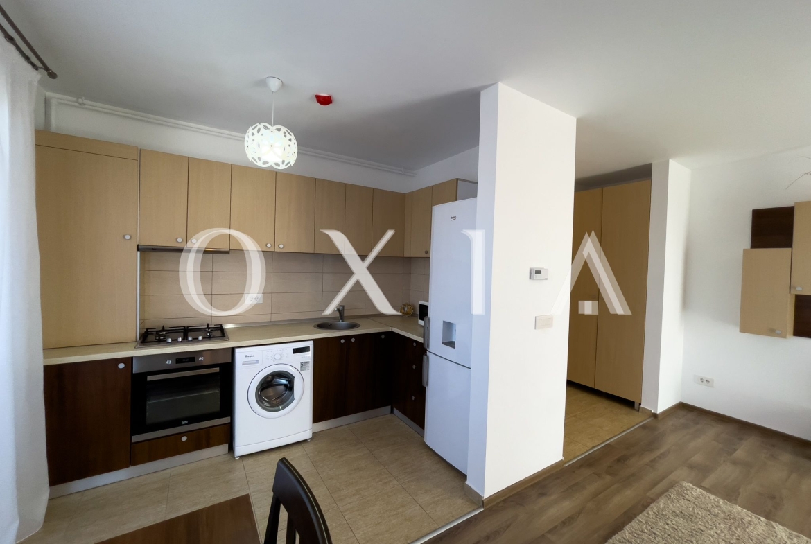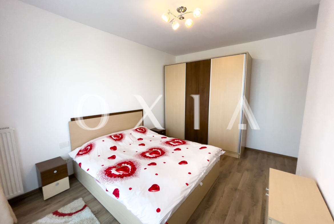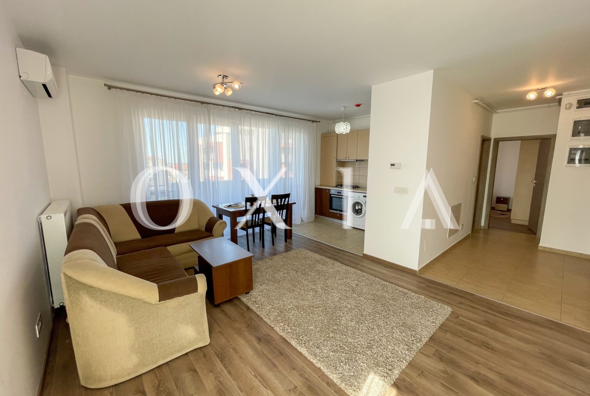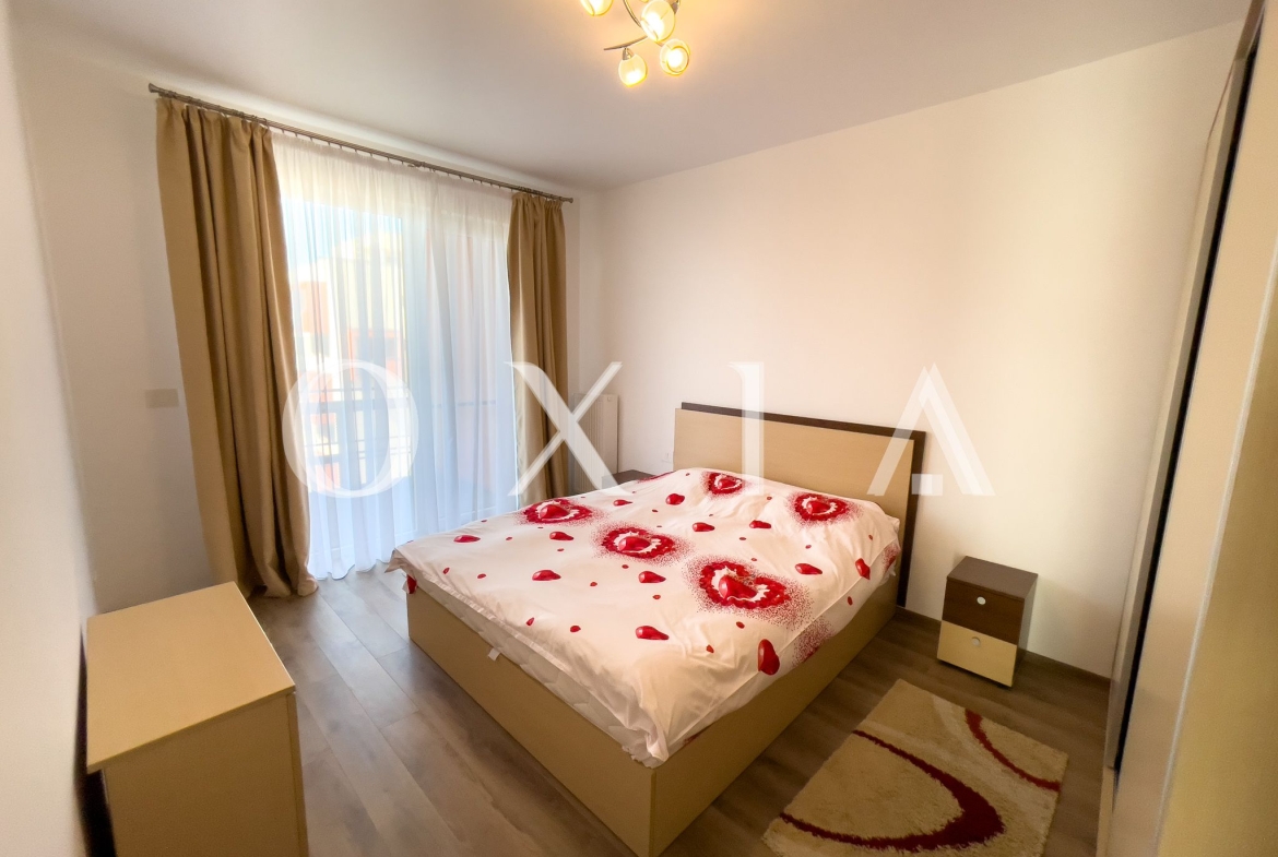 OXIA prezinta spre inchiriere apartament cu 2 camere in Timisoara, zona Aradului, complex rezidential IRIS, situat la etajul 6 din 8 ( imobil cu 2 lifturi ), cu suprafata de 55 MP utili + terasa pe toata lungimea apartamentului, compartimentat astfel: