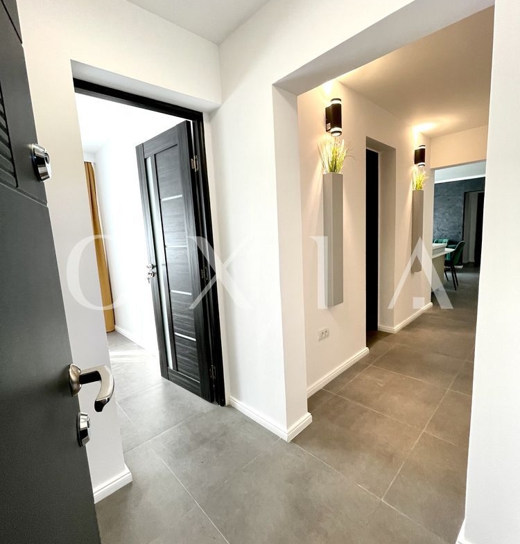 Apartamentul este renovat complet si beneficiaza de amenajari moderne: placi de gresie/faianta, ferestre PVC cu geam termopan, usi interioare celulare, usa intrare metalica, vopsea lavabila, mobila executata la comanda ,etc.