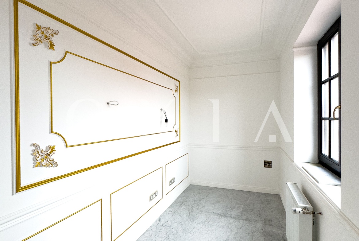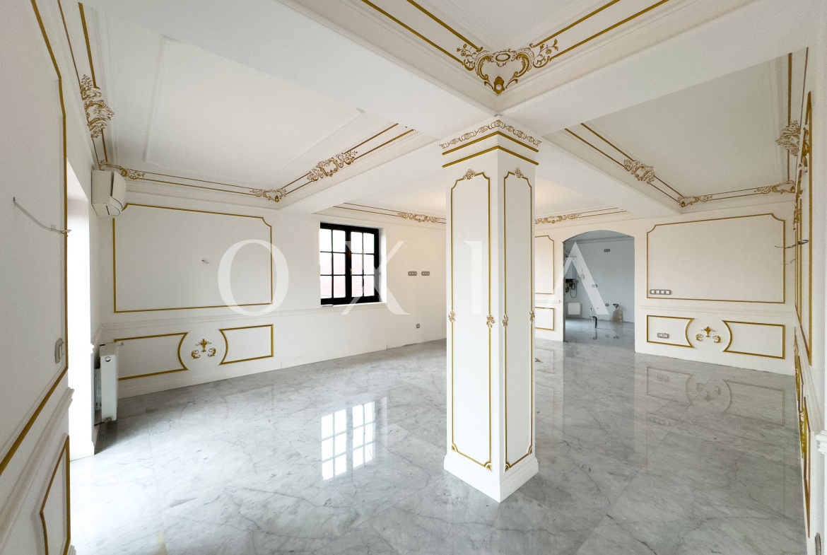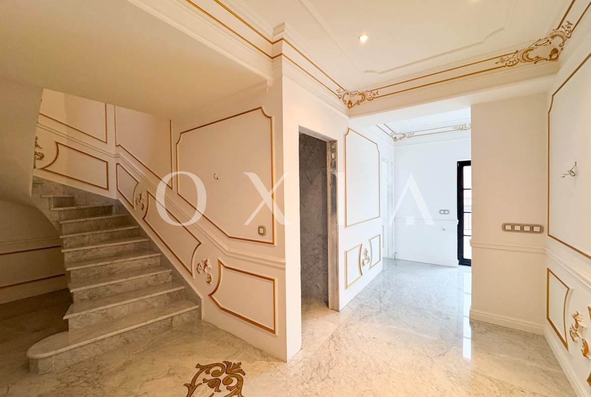 Va prezentam un penthouse de exceptie, situat intr-un imobil modern, construit in 2014, ce imbina stilul baroc cu confortul contemporan.