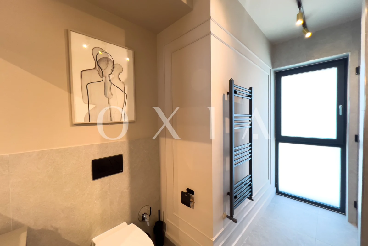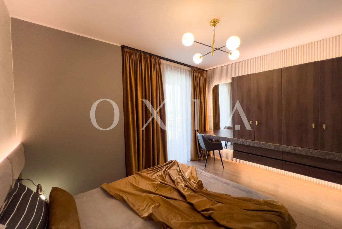 Apartamentul este nou si beneficiaza de amenajari premium: usa intrare metalica antiefractie, usi interior MDF vopsite in culoarea peretilor, placi de gresie/faianta, parchet laminat, ferestre PVC cu geamuri tripan, vopsea lavabila, vopsea San Marco, prize si intrerupatoare in configuratie personalizata, iluminat cu becuri led, etc.