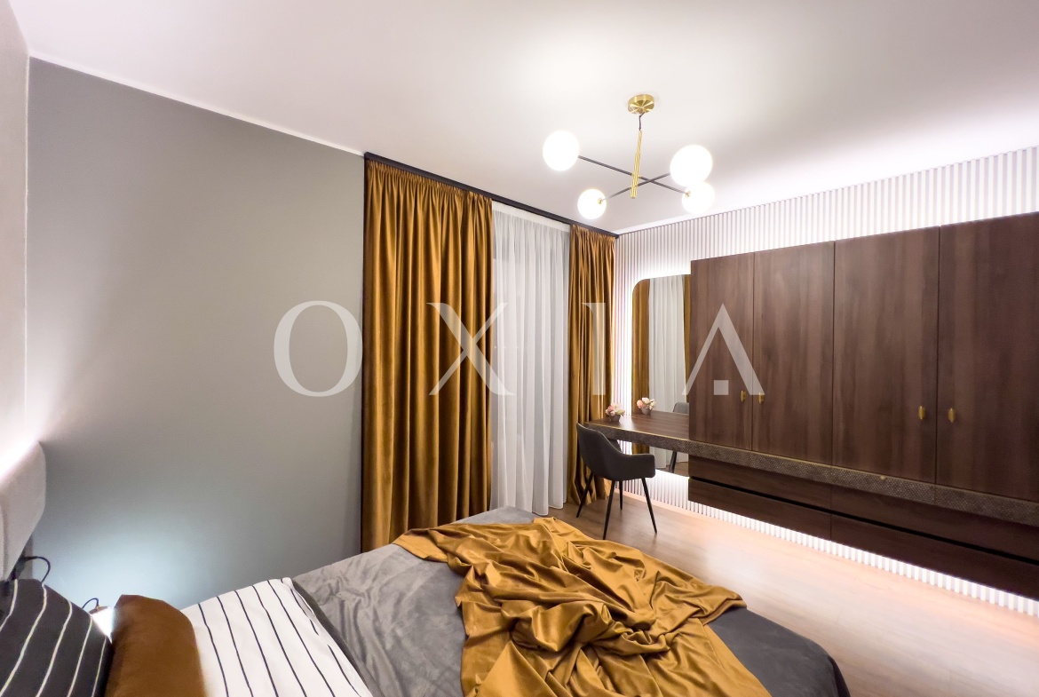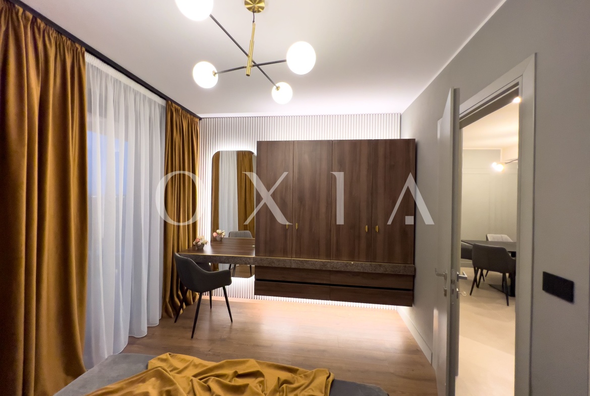 Apartamentul este nou si beneficiaza de amenajari premium: usa intrare metalica antiefractie, usi interior MDF vopsite in culoarea peretilor, placi de gresie/faianta, parchet laminat, ferestre PVC cu geamuri tripan, vopsea lavabila, vopsea San Marco, prize si intrerupatoare in configuratie personalizata, iluminat cu becuri led, etc.