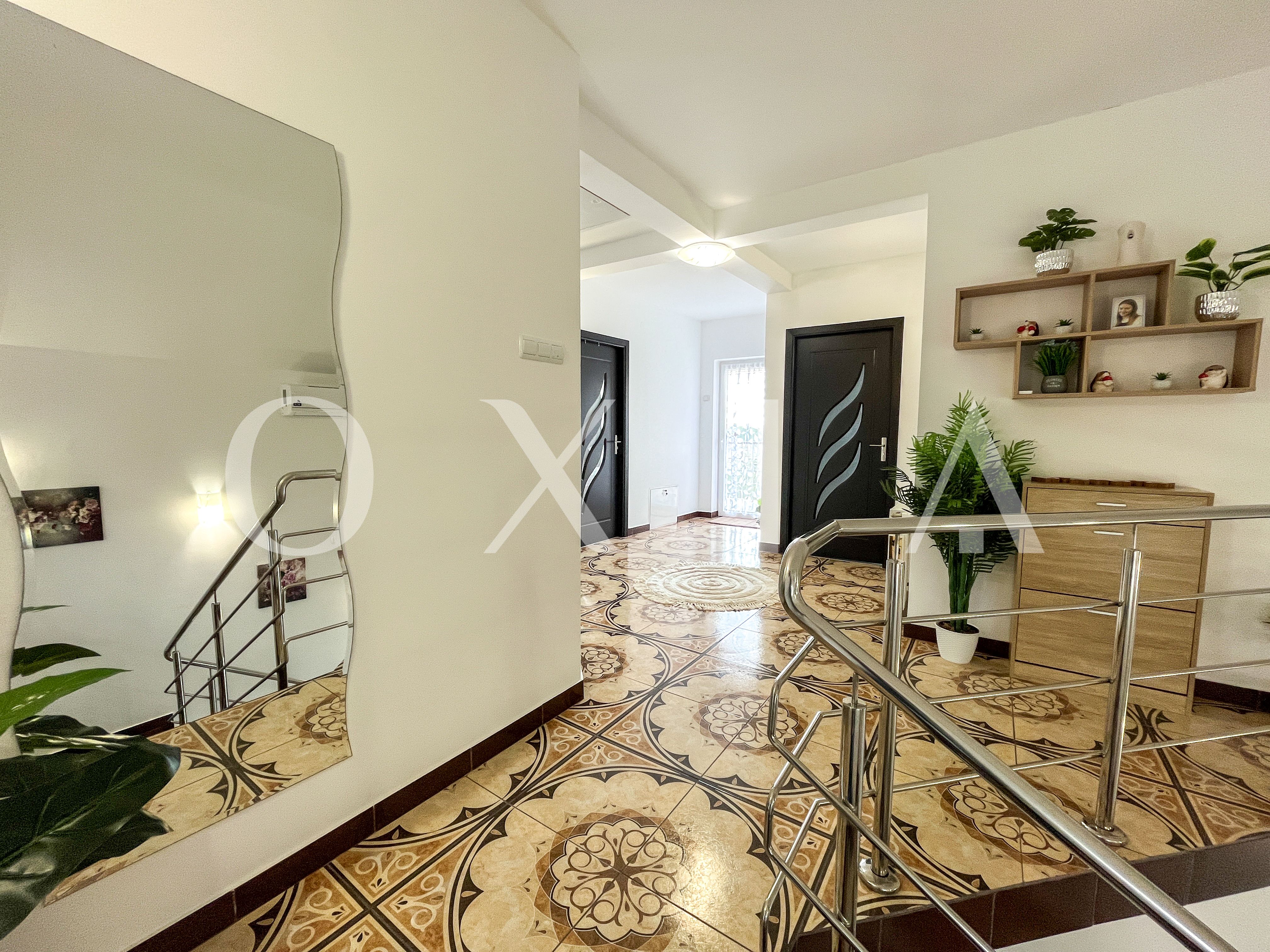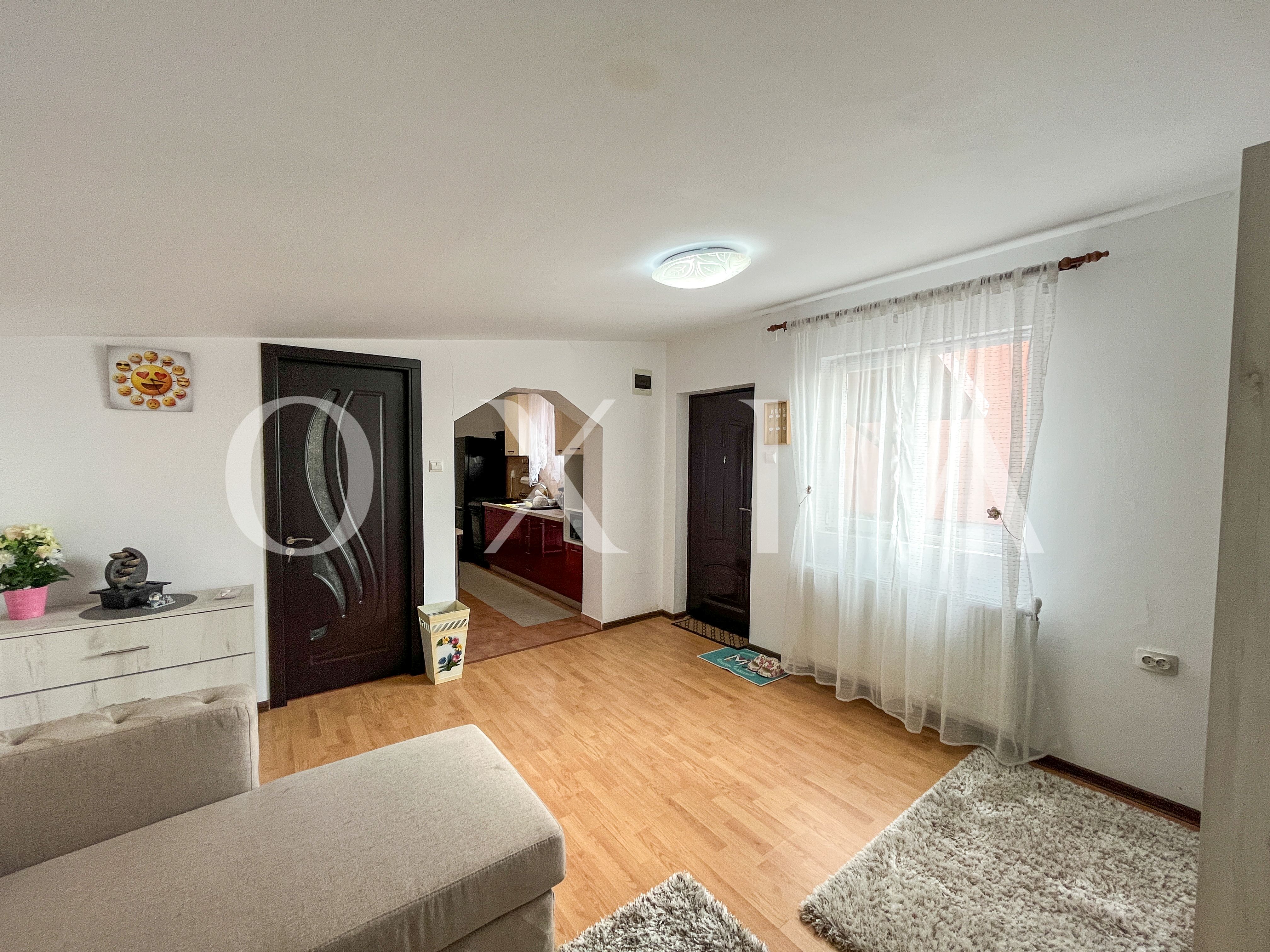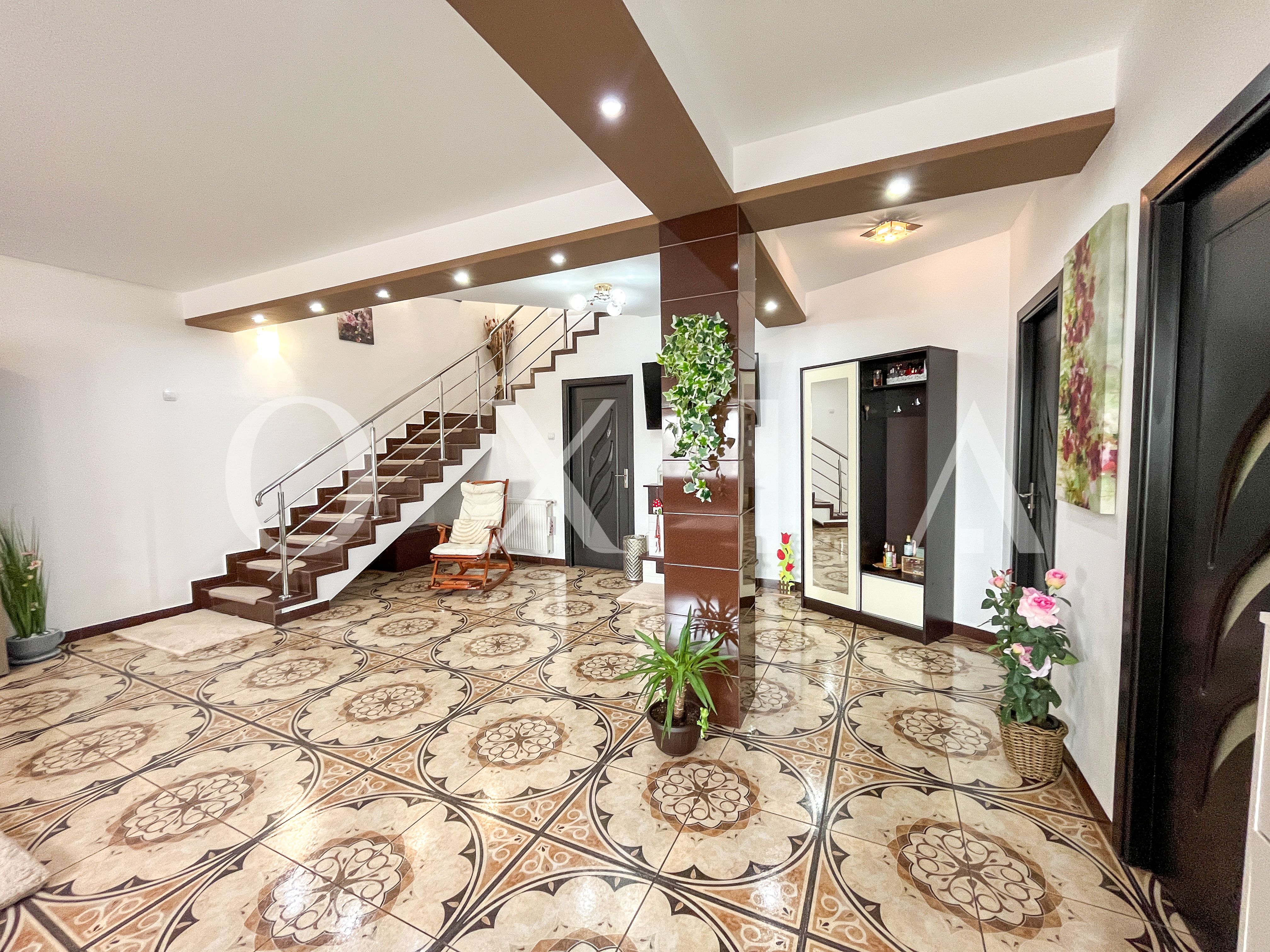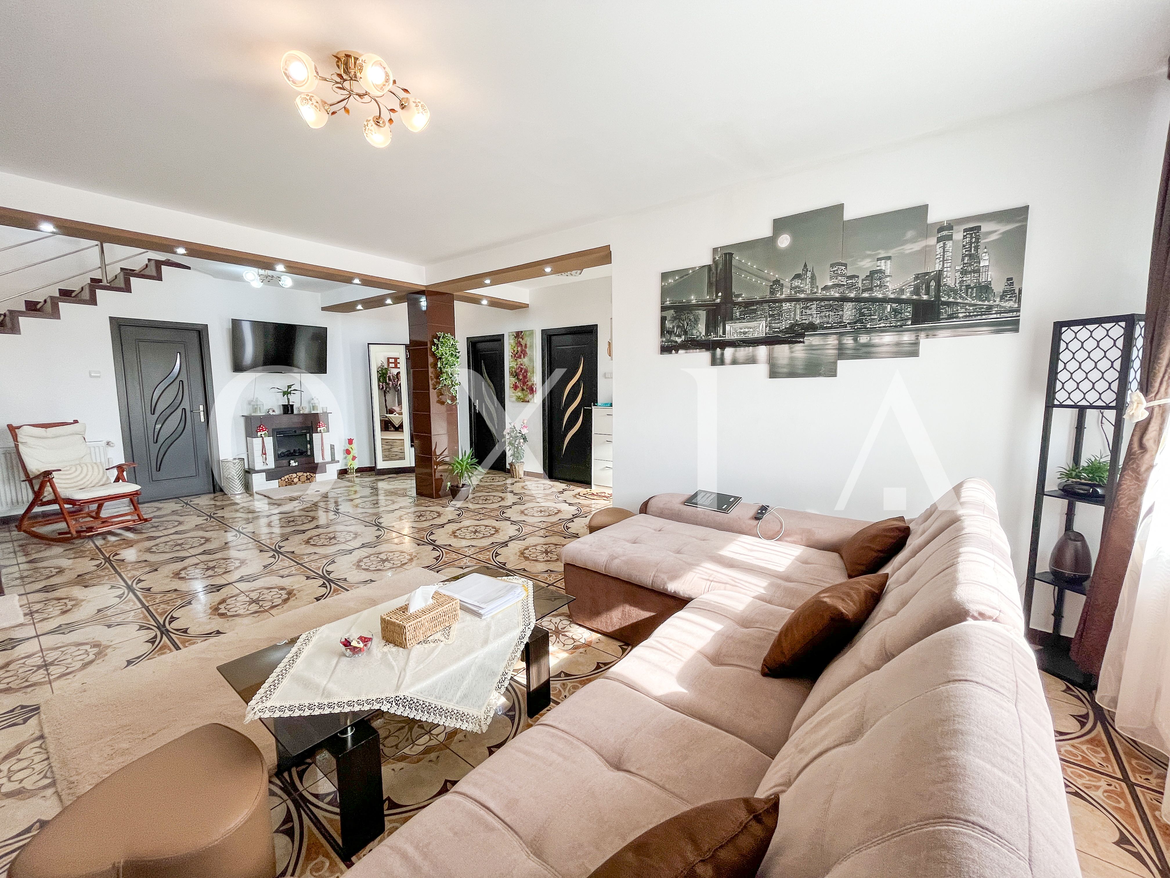 Aceasta proprietate dispune de un regim de inaltime P+M cu suprafata totala a terenului de 550 mp, o suprafata utila de 124 mp, completata de o terasa inchisa de 15 mp , portcart pentru masina, poarta actionata electric si 3 locuri de parcare in curte.