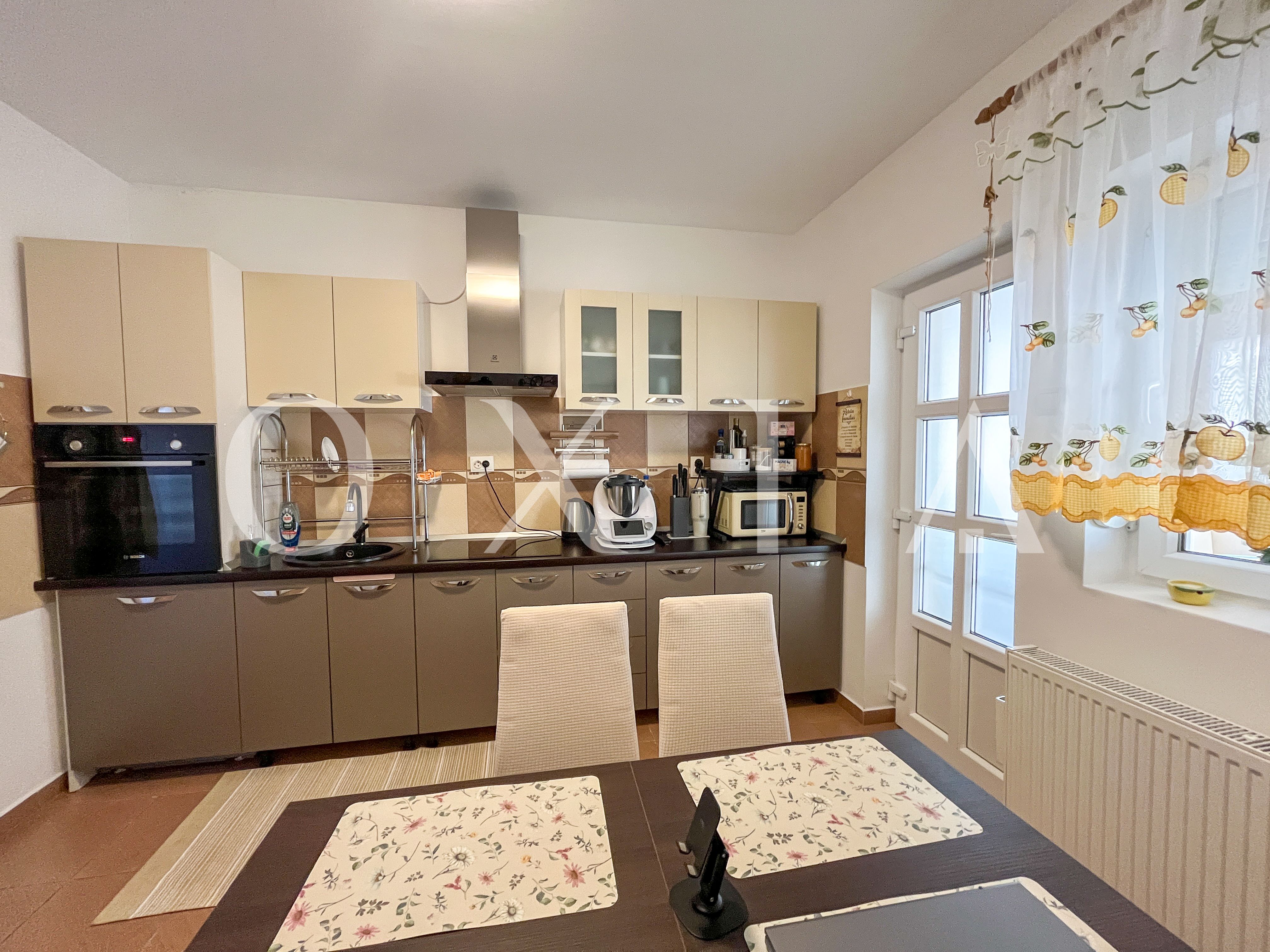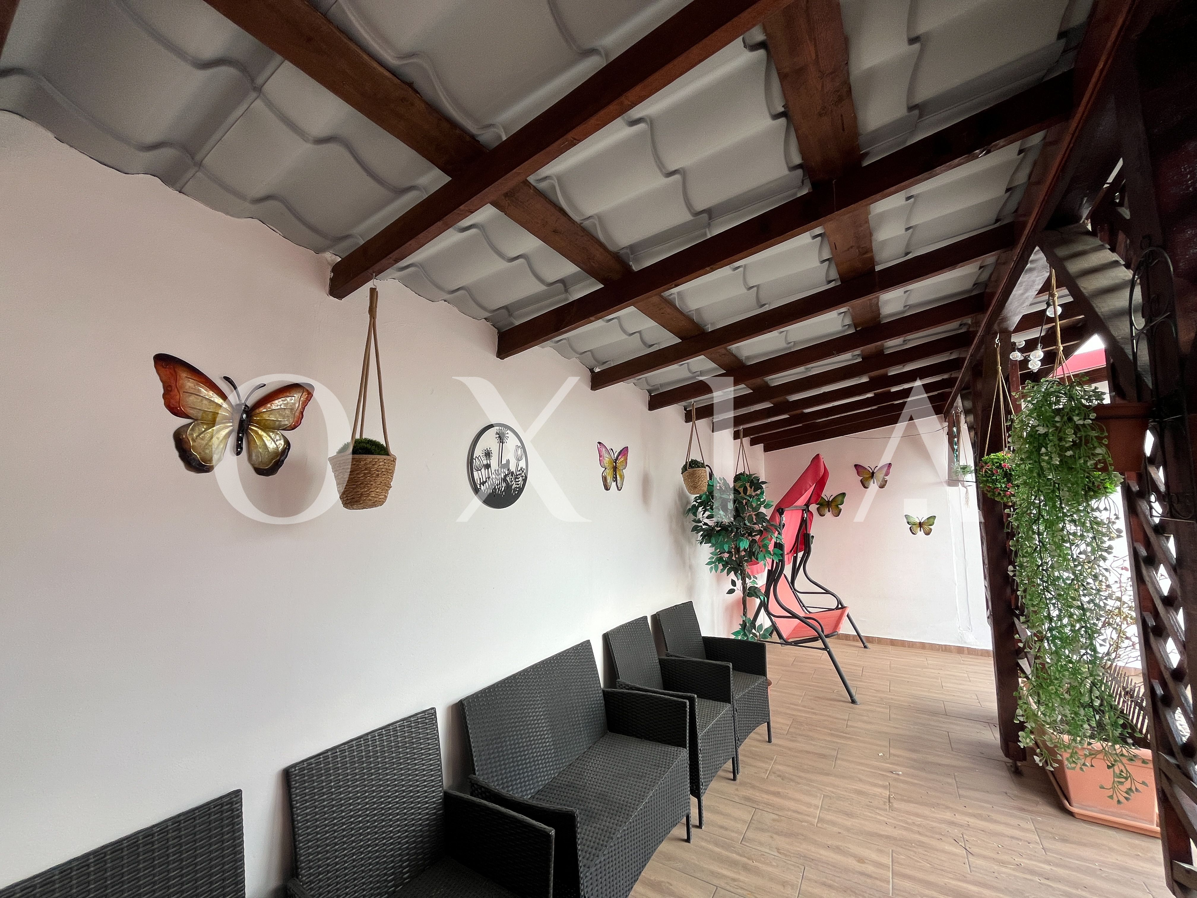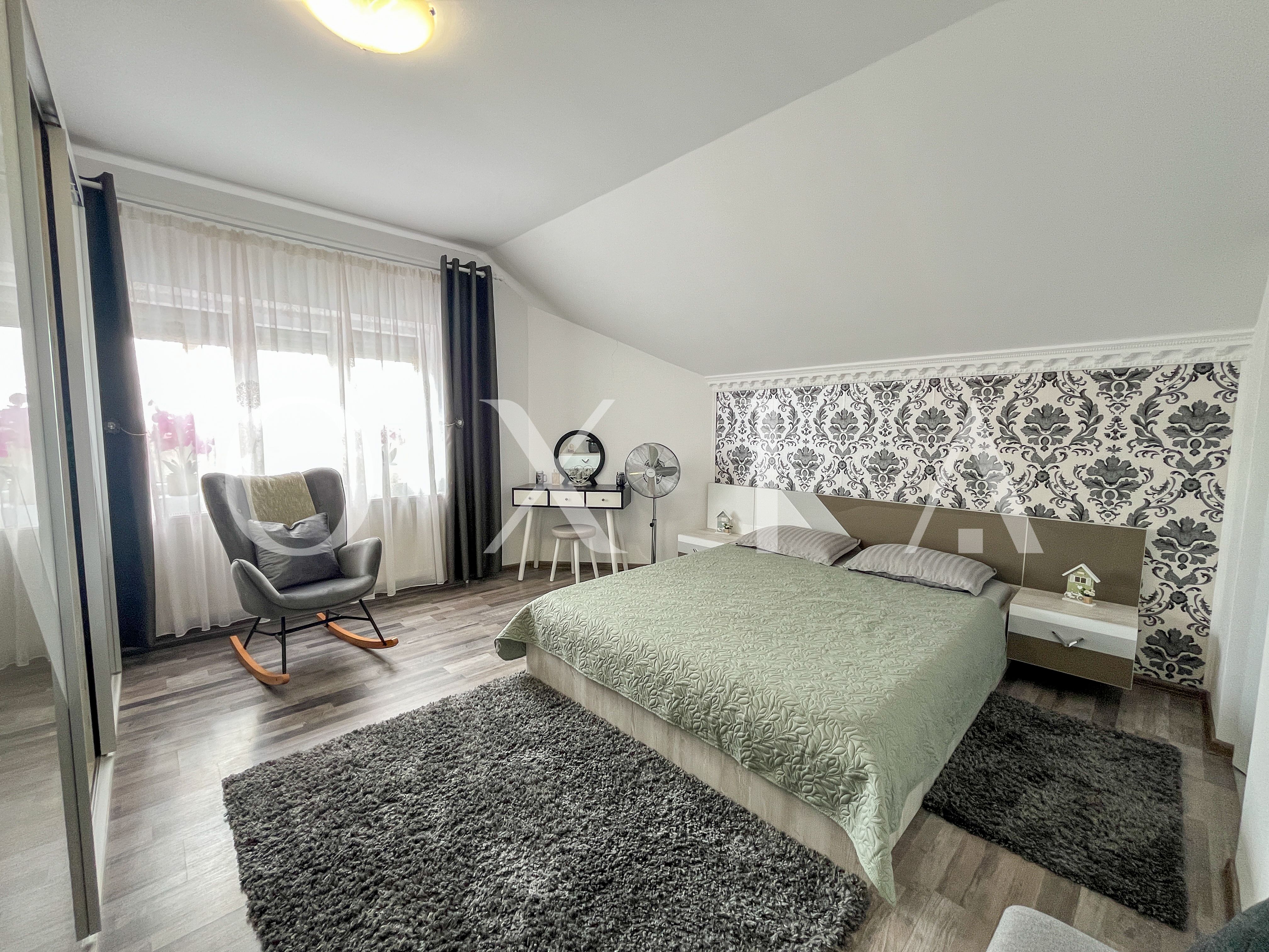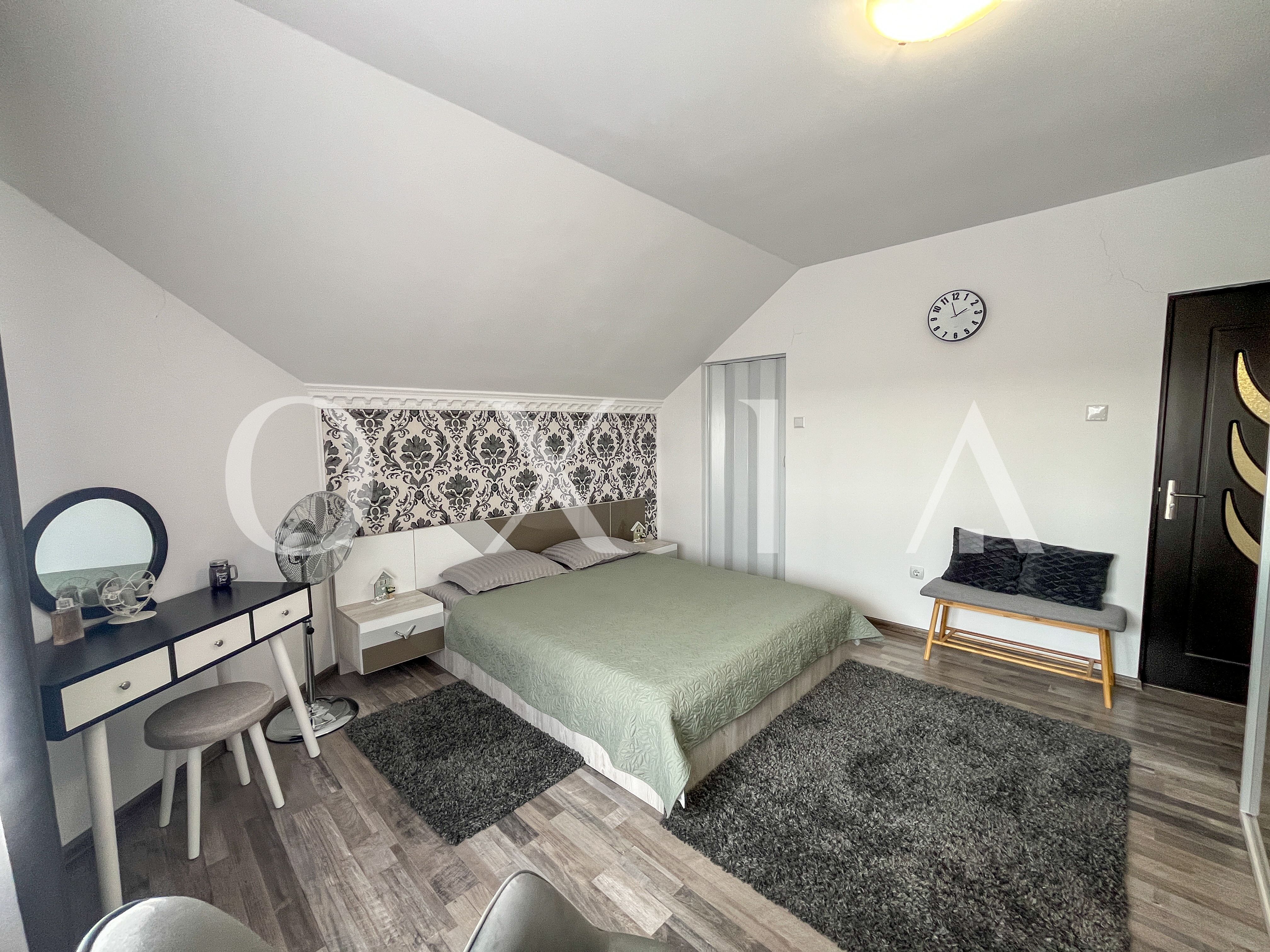 Aceasta proprietate dispune de un regim de inaltime P+M cu suprafata totala a terenului de 550 mp, o suprafata utila de 124 mp, completata de o terasa inchisa de 15 mp , portcart pentru masina, poarta actionata electric si 3 locuri de parcare in curte.