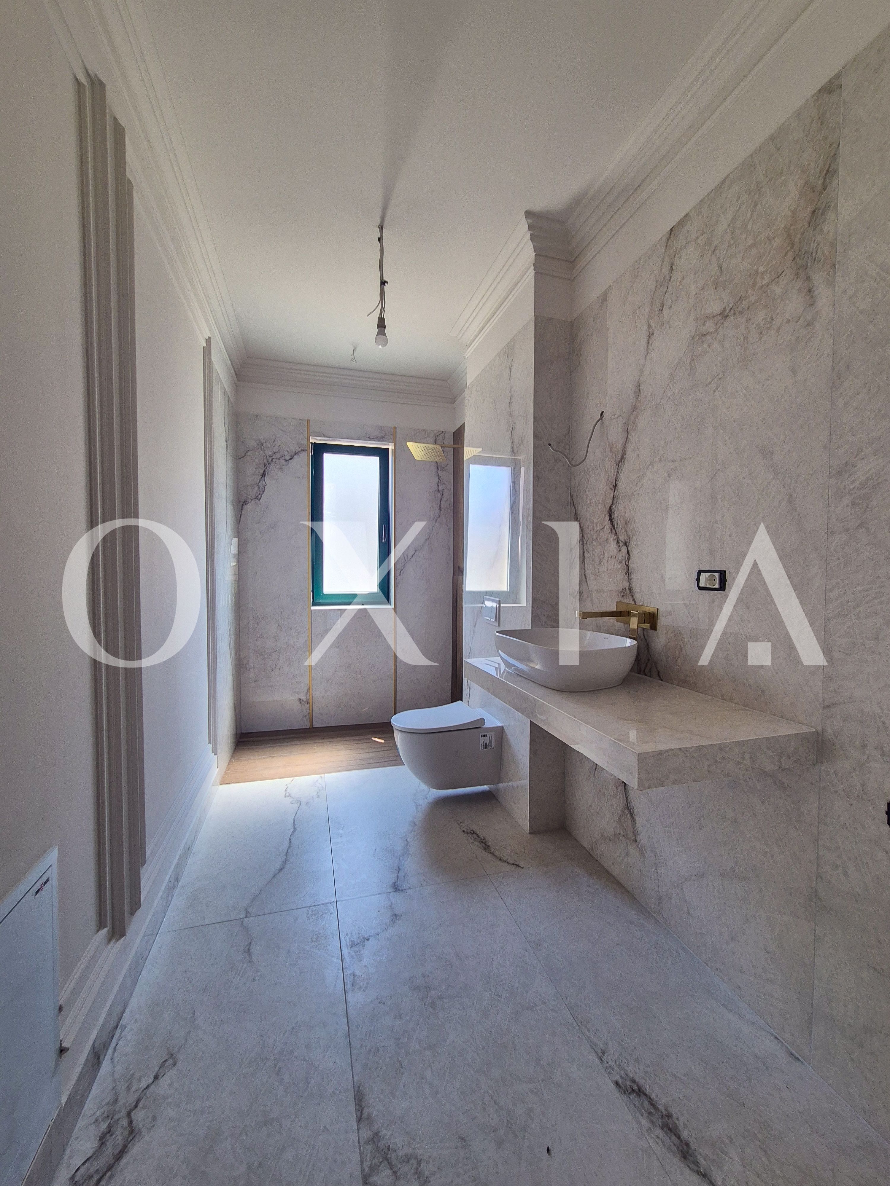 Fiecare detaliu al finisajelor a fost atent selectionat pentru a reflecta un standard inalt de calitate si eleganta: ziduri interioare cat si exterioare caramida Camacon de 25 cm, polistiren si tencuiala decorativa Caparol, tamplarie PVC Aluplast cu 7 camere, geamuri termopan Saint – Goban cu protectie solara, feronerie Marko, obiecte sanitare gama premium import Italia, etc.