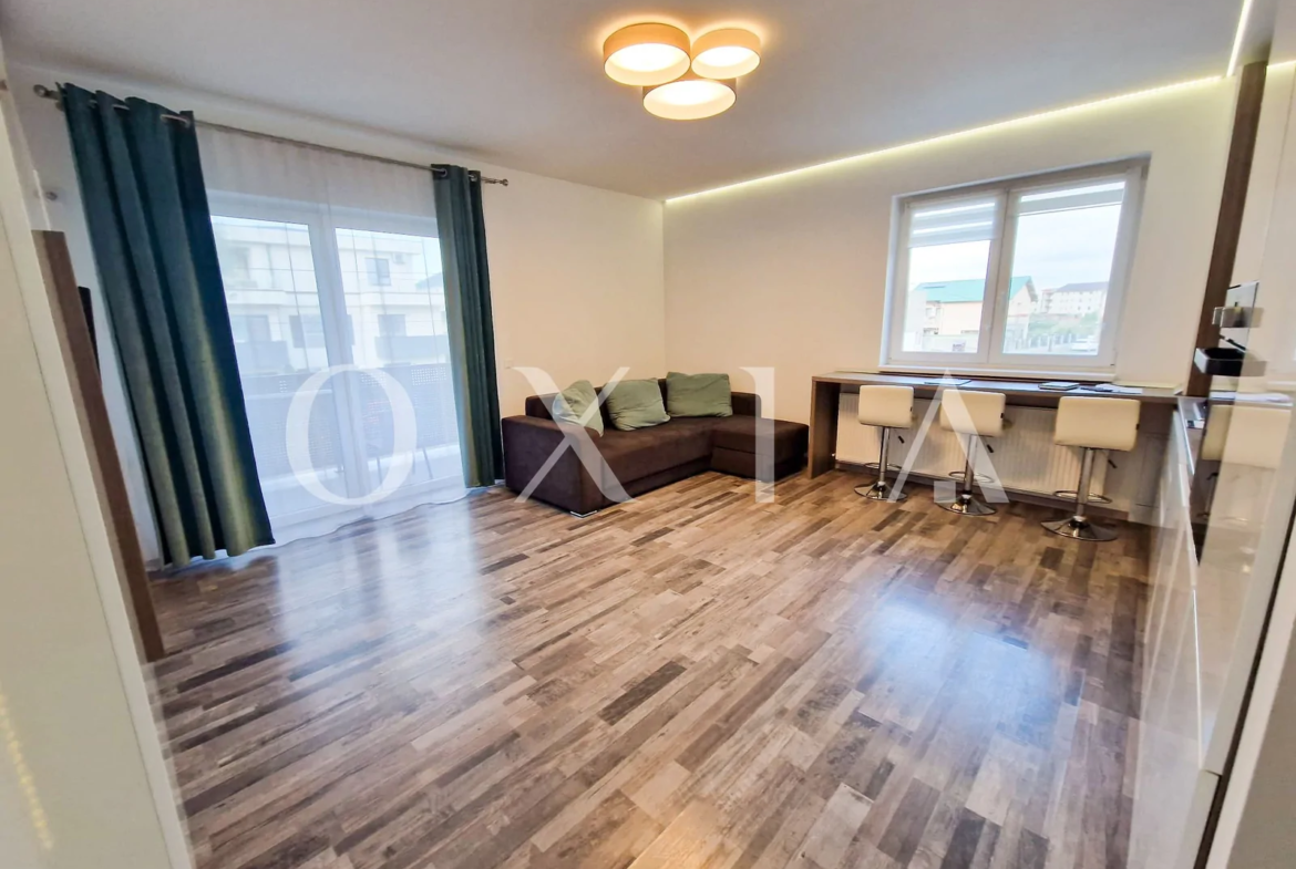 OXIA prezinta spre inchiriere apartament cu 2 camere in Giroc/Cartierul Florilor, strada Crinului, situat la etajul 1/4, semidecomandat, compartimentat astfel: