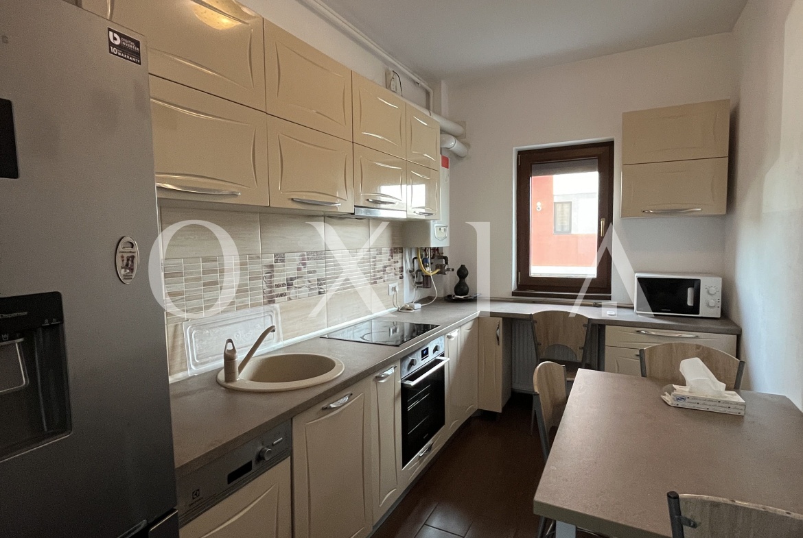OXIA prezinta spre inchiriere apartament cu 3 camere, situat in Timisoara, Braytim, zona benzinariei Eso, la etajul 1 in imobil cu regim de inaltime P+4, semidecomandat, cu suprafata de 62.45 mp utili+ 6.30 mp balcon, compartimentat astfel: