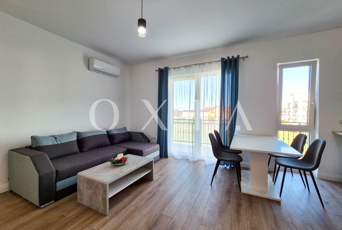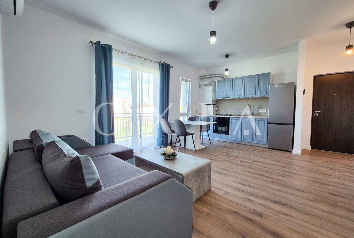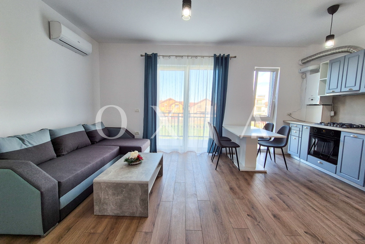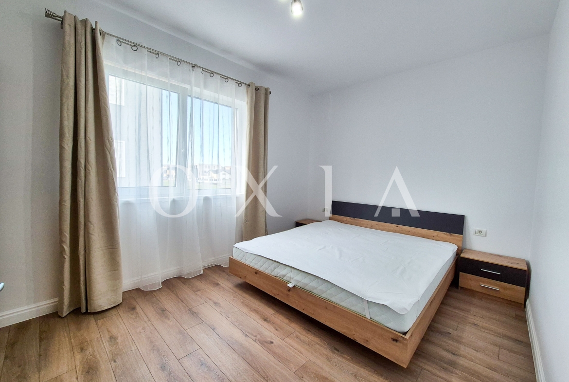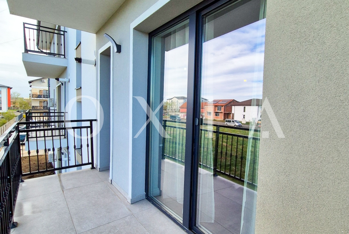 OXIA prezinta in exclusivitate spre inchiriere apartament cu 2 camere in Giroc, Cartierul Florilor, strada Petalei, situat in imobil P+3E, la etajul 1, semidecomandat, cu suprafata de 46 MP utili + terasa de 6 MP, compartimentat astfel: