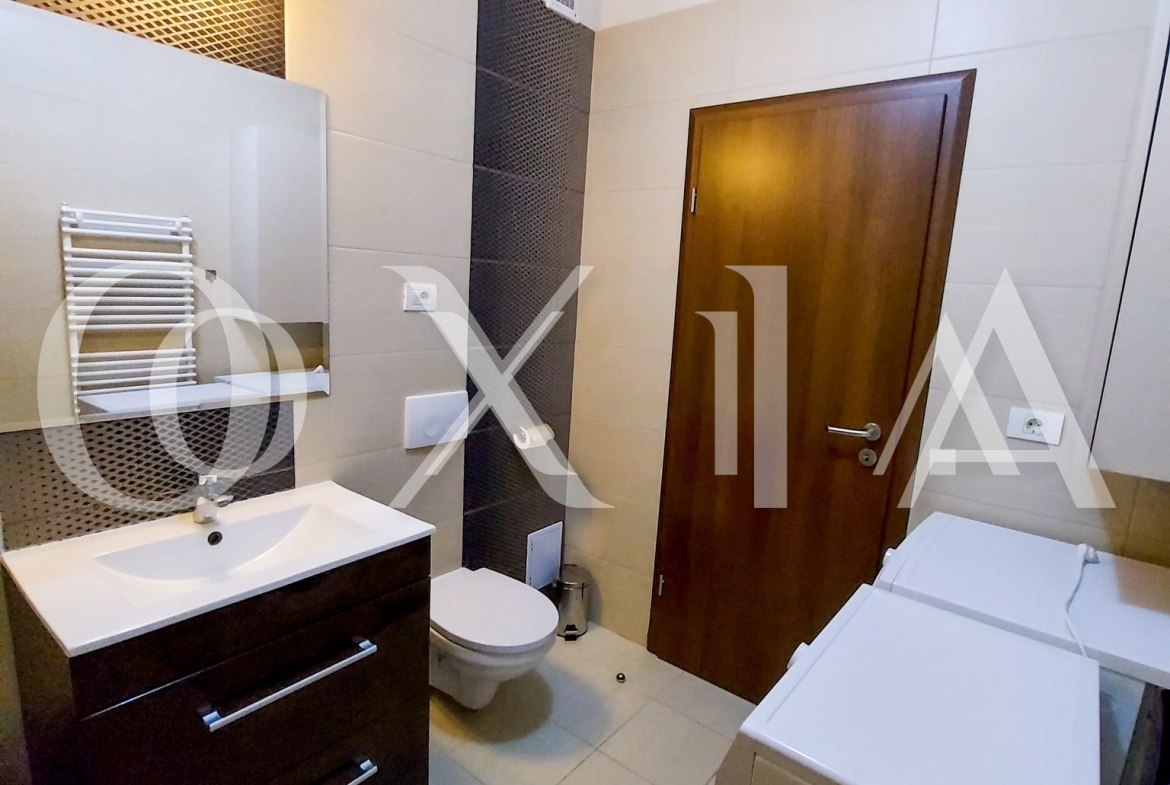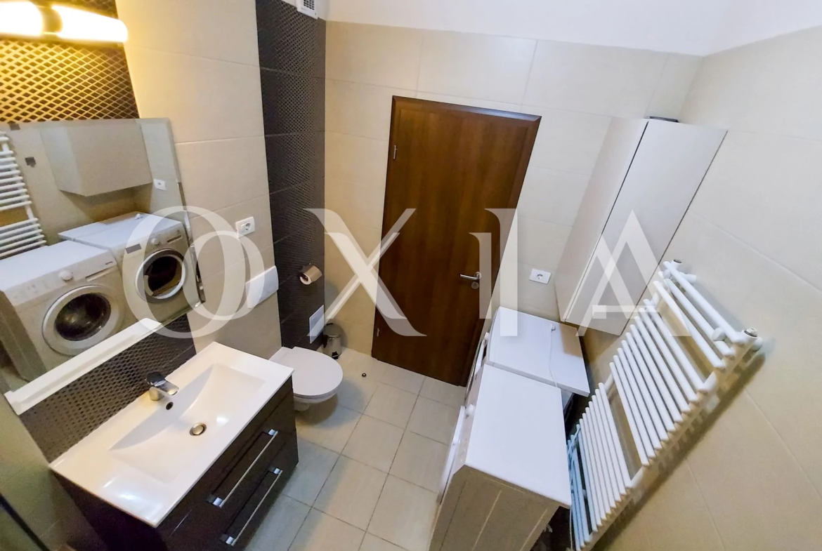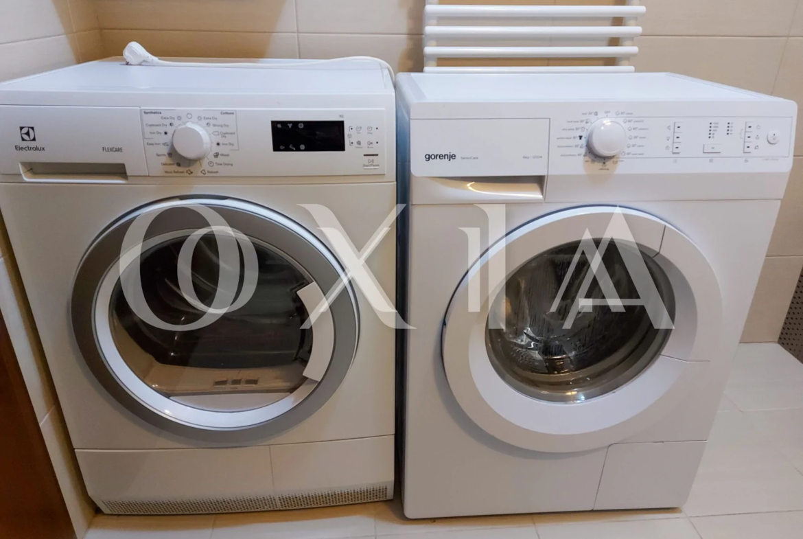 Apartamentul se inchiriaza complet mobilat si utilat ( TV, masina de spalat rufe, uscator rufe, masina de spalat vase, frigider, plita de pag, cuptor electric, etc ).