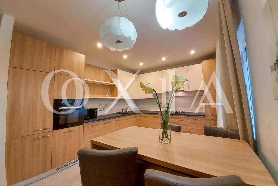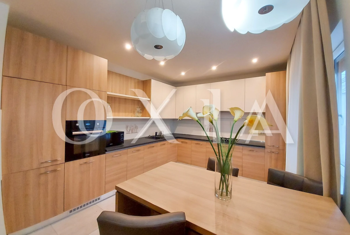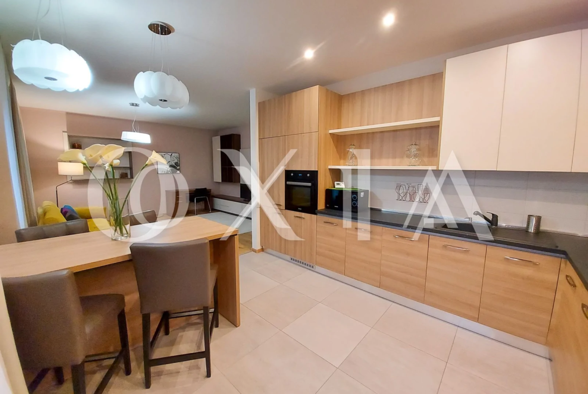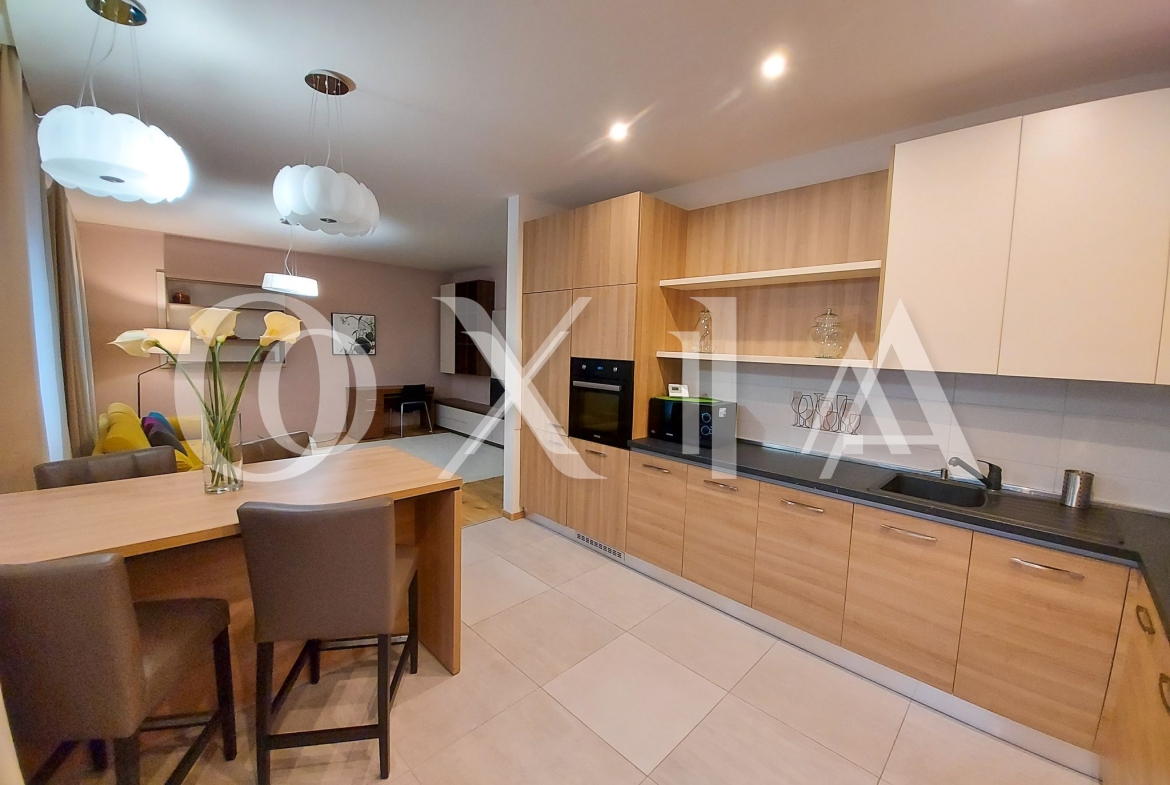 Apartamentul se inchiriaza complet mobilat si utilat ( TV, masina de spalat rufe, uscator rufe, masina de spalat vase, frigider, plita de pag, cuptor electric, etc ).