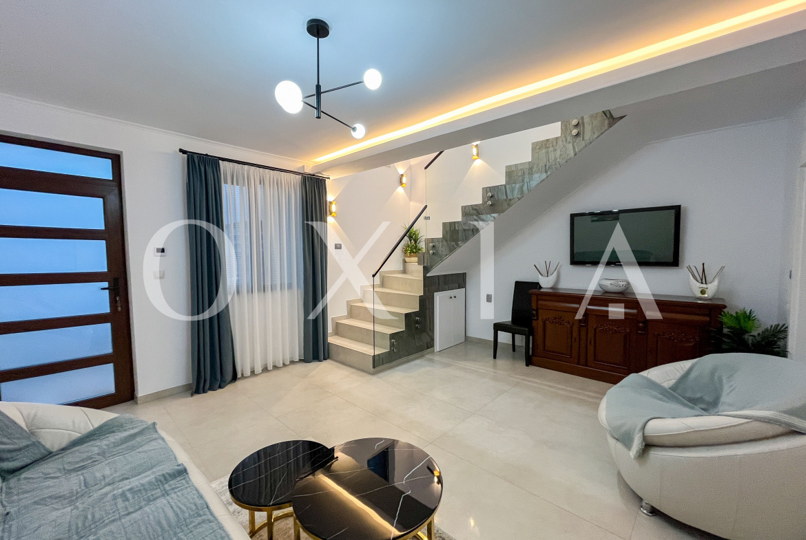 Casa beneficiaza de amenajari moderne: Usa intrare PVC, usi interioare celulare ,ferestre PVC cu geam termopan tripan, placi de gresie/faianta, parchet, etc.