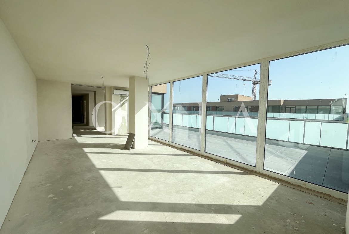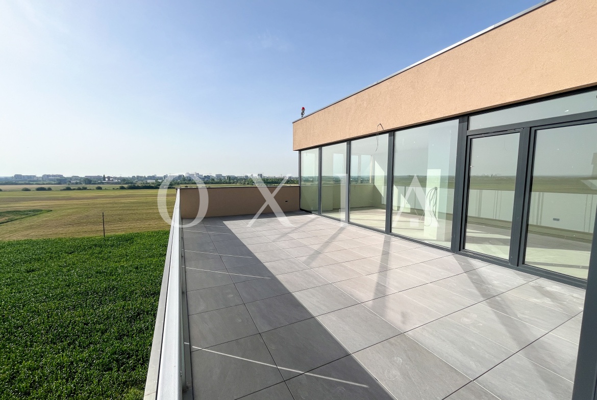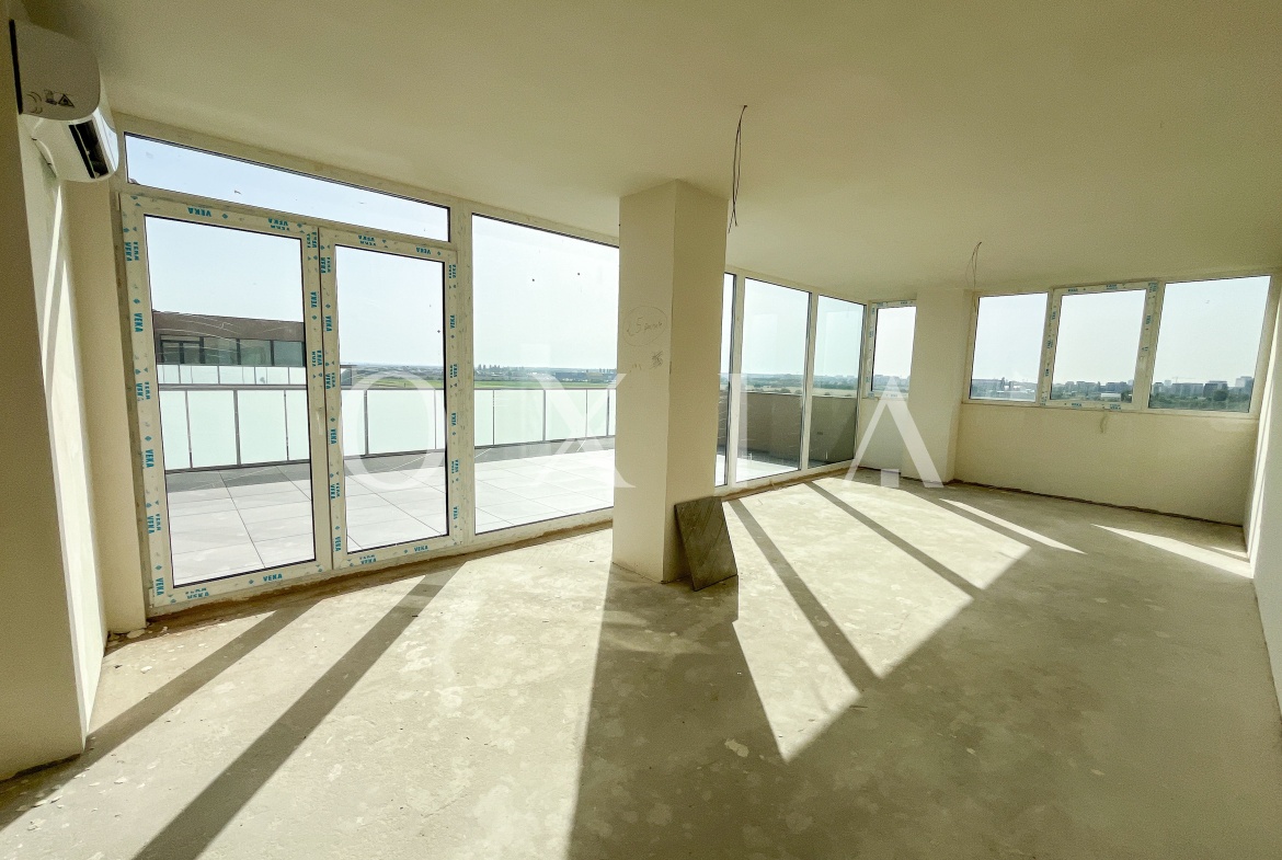 OXIA prezinta spre vanzare apartament Penthouse cu 3 camere, situat in Timisoara zona Calea Torontalului, Campeador Residence, etaj retras 7/7, semidecomandat, cu suprafata de aproximativ 105 mp utili+ aproximativ 80 mp terasa, compartimentat astfel: