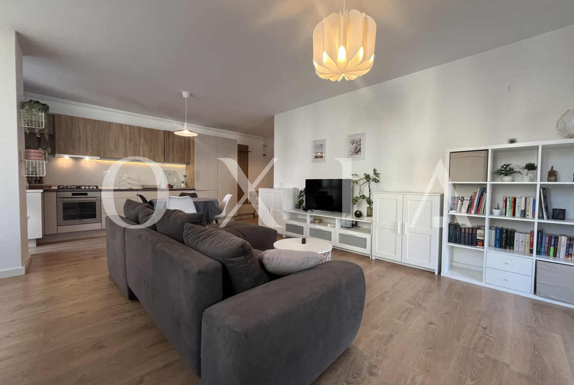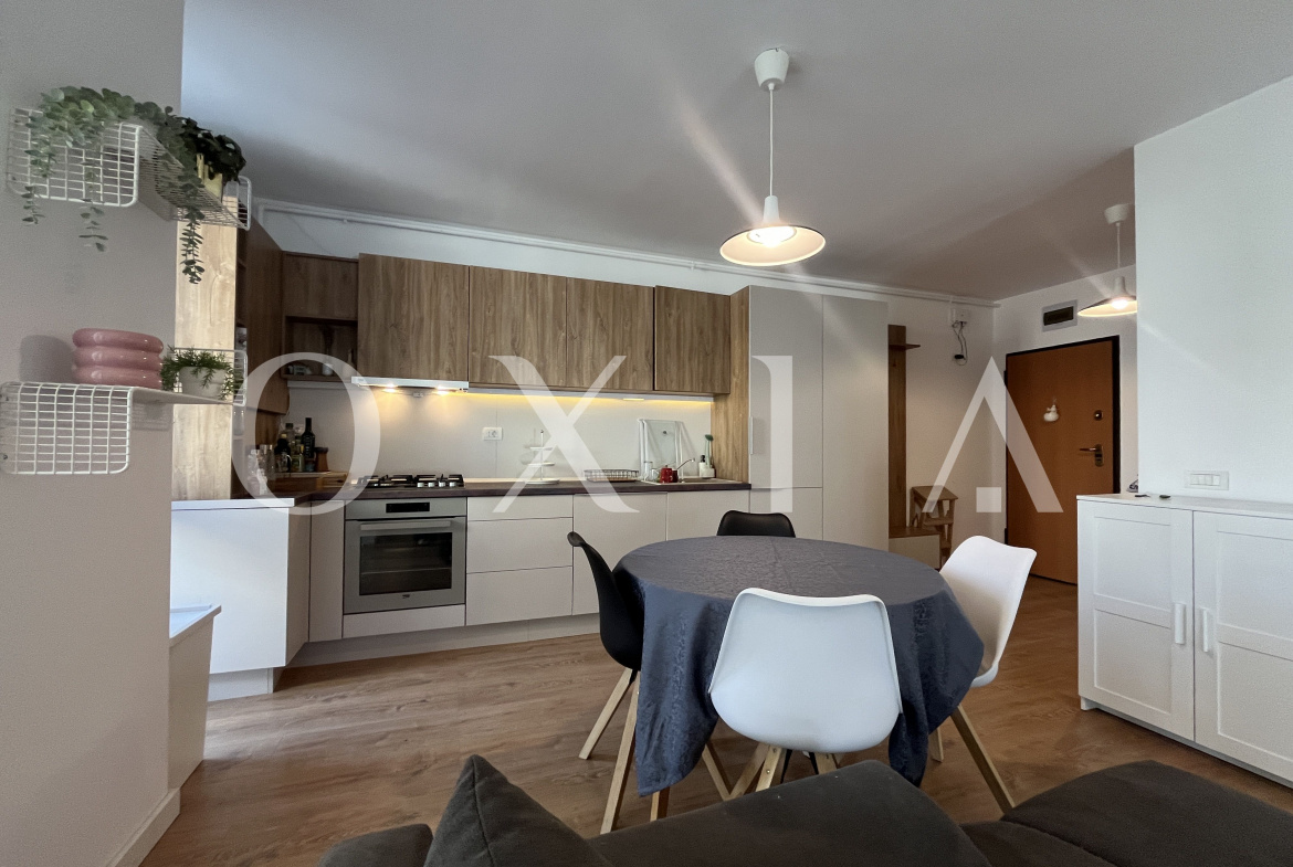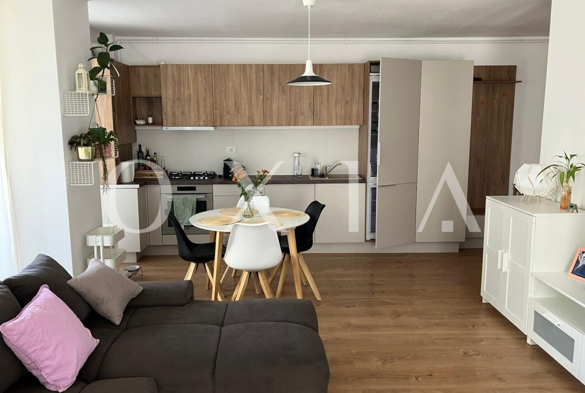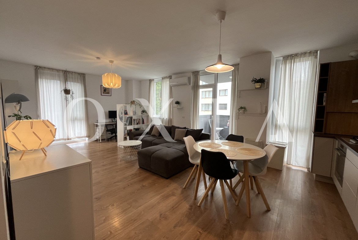 Proprietatea se inchiriaza mobilata si utilata(Aer conditionat, centrala termica Bosch cu termostat WiFi, incalzire in pardoseala, podea parchet stratificat calitativ, masina de spalat rufe, uscator electric de rufe, masina de spalat vase (incorporata), frigider inalt cu congelator (incorporat), canapea 3 locuri, TV QLED 43 inch, birou cu scaun de birou si monitor, aparat de cafea cu capsule, ventilator de plafon in dormitor (cu telecomanda), rulouri din aluminiu, pat de 1,8 m latime cu saltea semi-ferma, complet utilat si dotat (farfurii, tacamuri, castroane etc.))