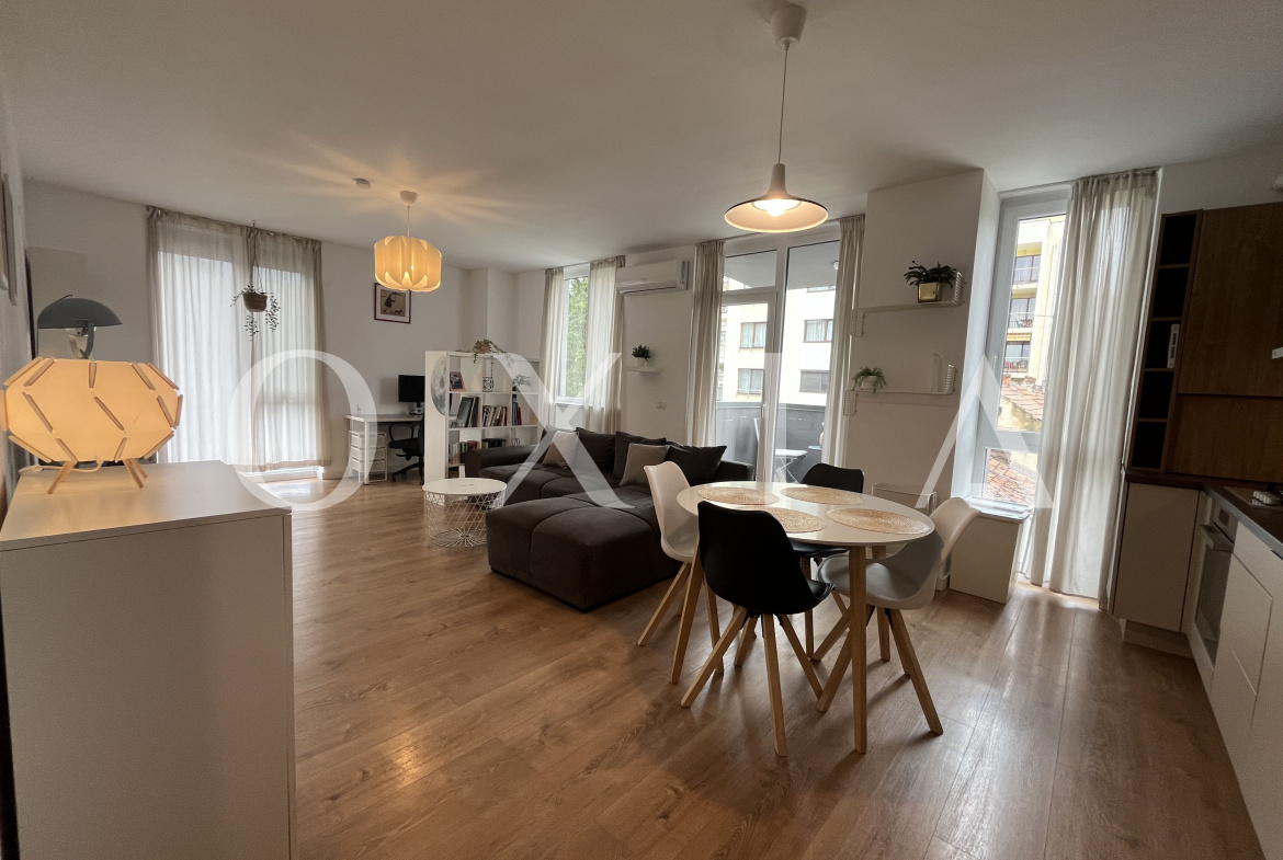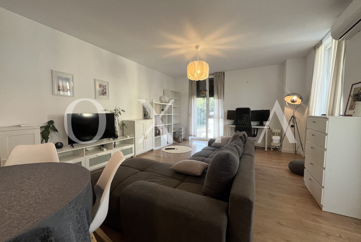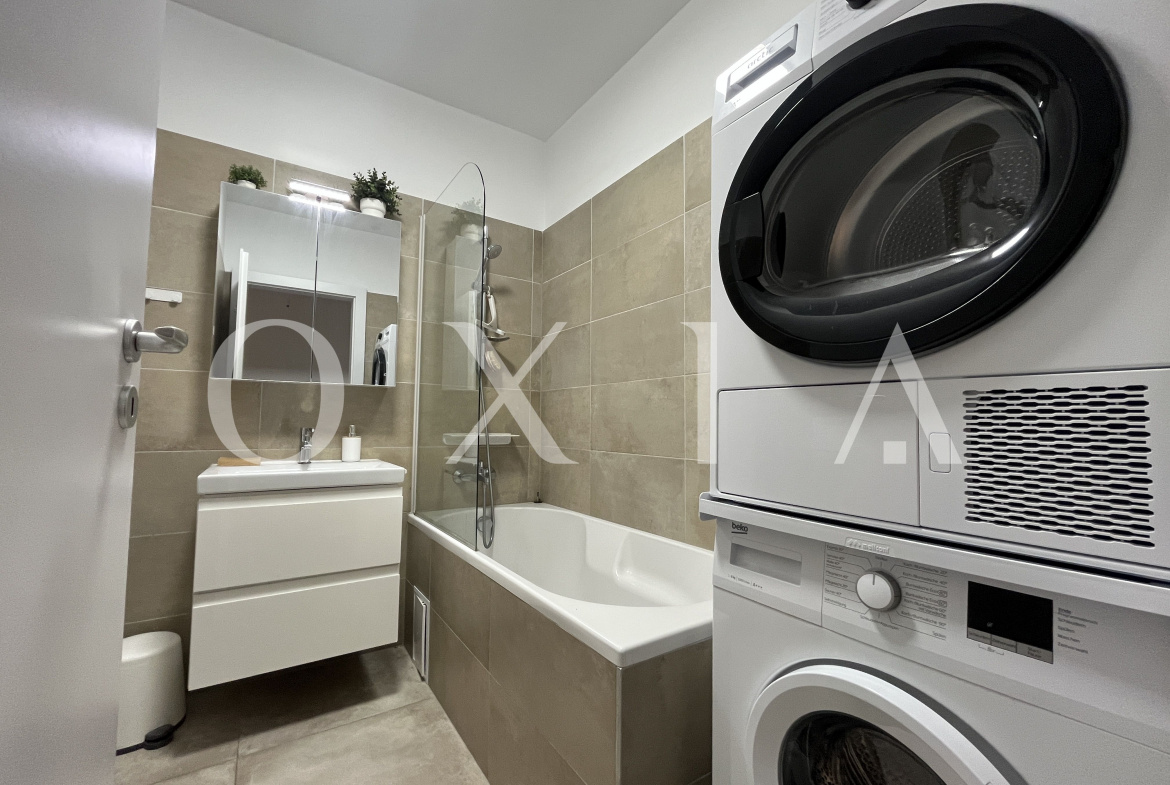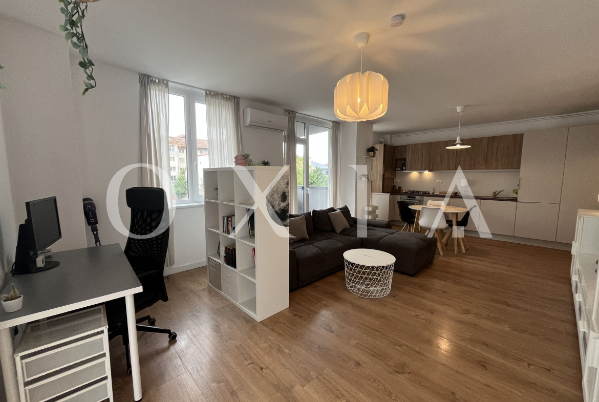 Proprietatea se inchiriaza mobilata si utilata(Aer conditionat, centrala termica Bosch cu termostat WiFi, incalzire in pardoseala, podea parchet stratificat calitativ, masina de spalat rufe, uscator electric de rufe, masina de spalat vase (incorporata), frigider inalt cu congelator (incorporat), canapea 3 locuri, TV QLED 43 inch, birou cu scaun de birou si monitor, aparat de cafea cu capsule, ventilator de plafon in dormitor (cu telecomanda), rulouri din aluminiu, pat de 1,8 m latime cu saltea semi-ferma, complet utilat si dotat (farfurii, tacamuri, castroane etc.))