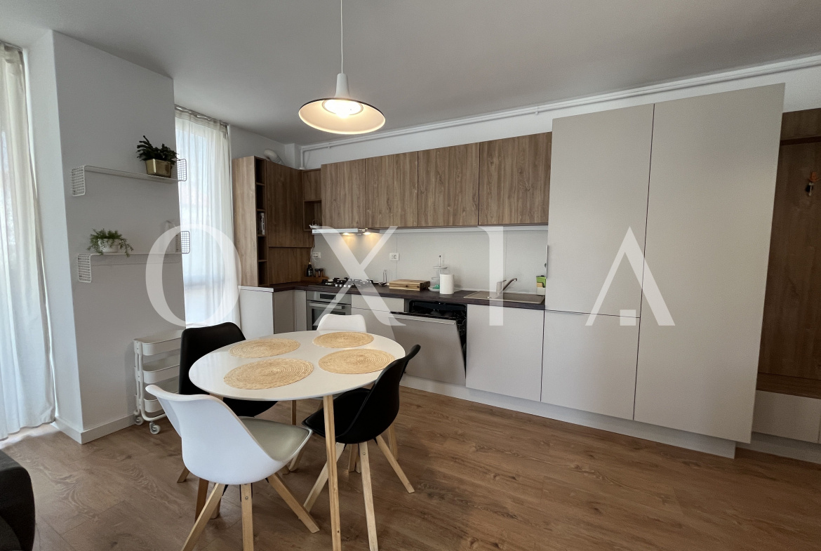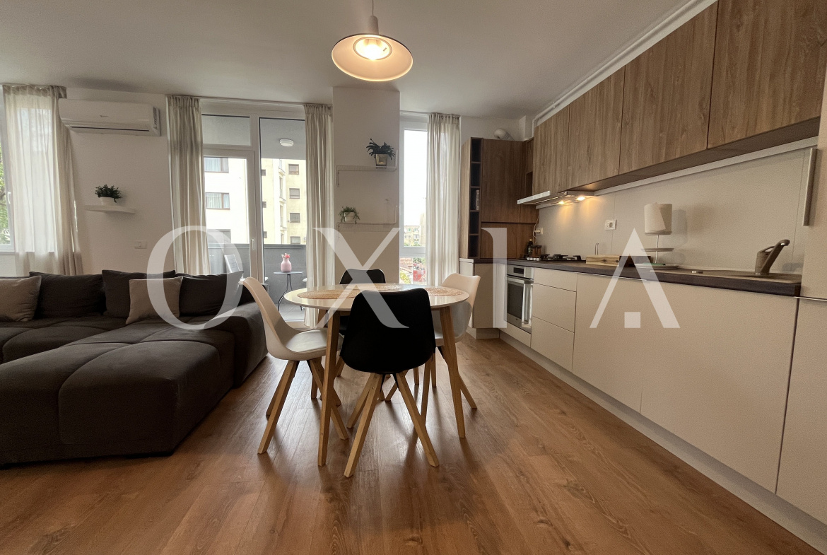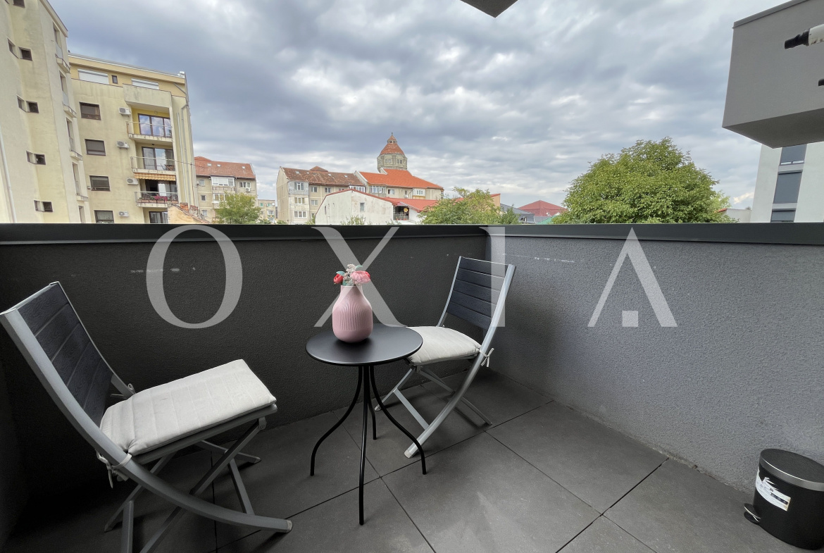OXIA prezinta spre inchiriere un apartament cu 2 camere in Timisoara, zona Telegrafului, complex rezidential Campeador City (Samuil Micu 9), situat la etajul 1 in imobil cu 7 etaje, cu suprafata utila de 54,7 MP + 4 mp balcon, compartimentat astfel: