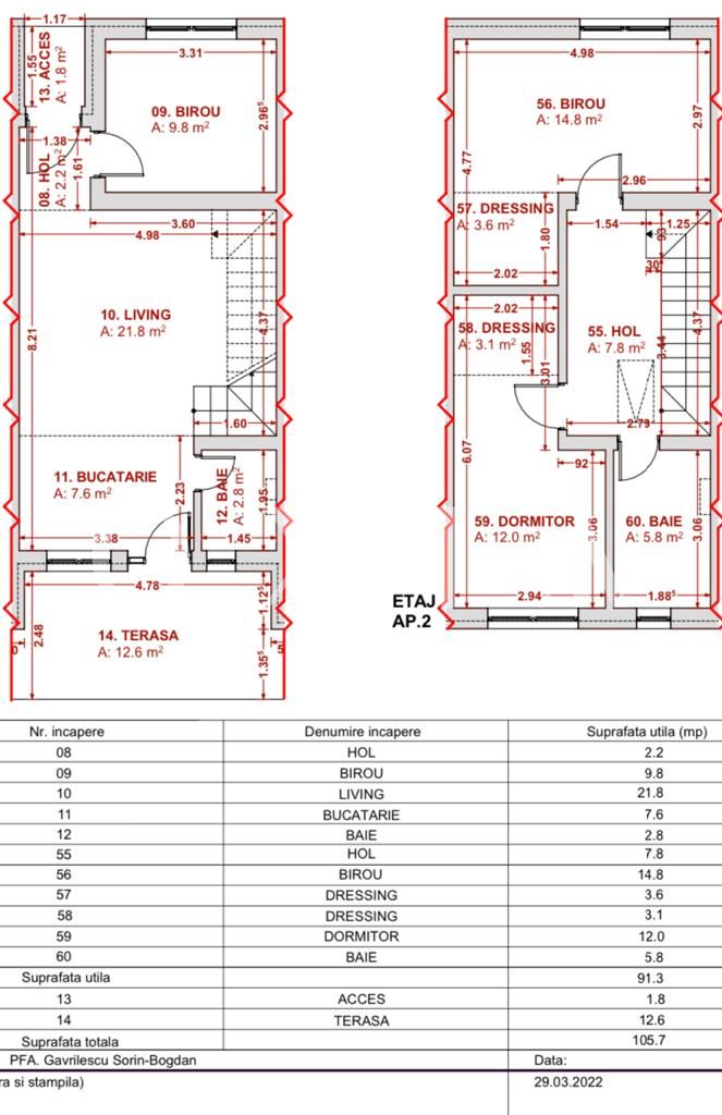 Parter: hol acces, living cu bucatarie open space, dormitor/birou, baie, terasa partial acoperita