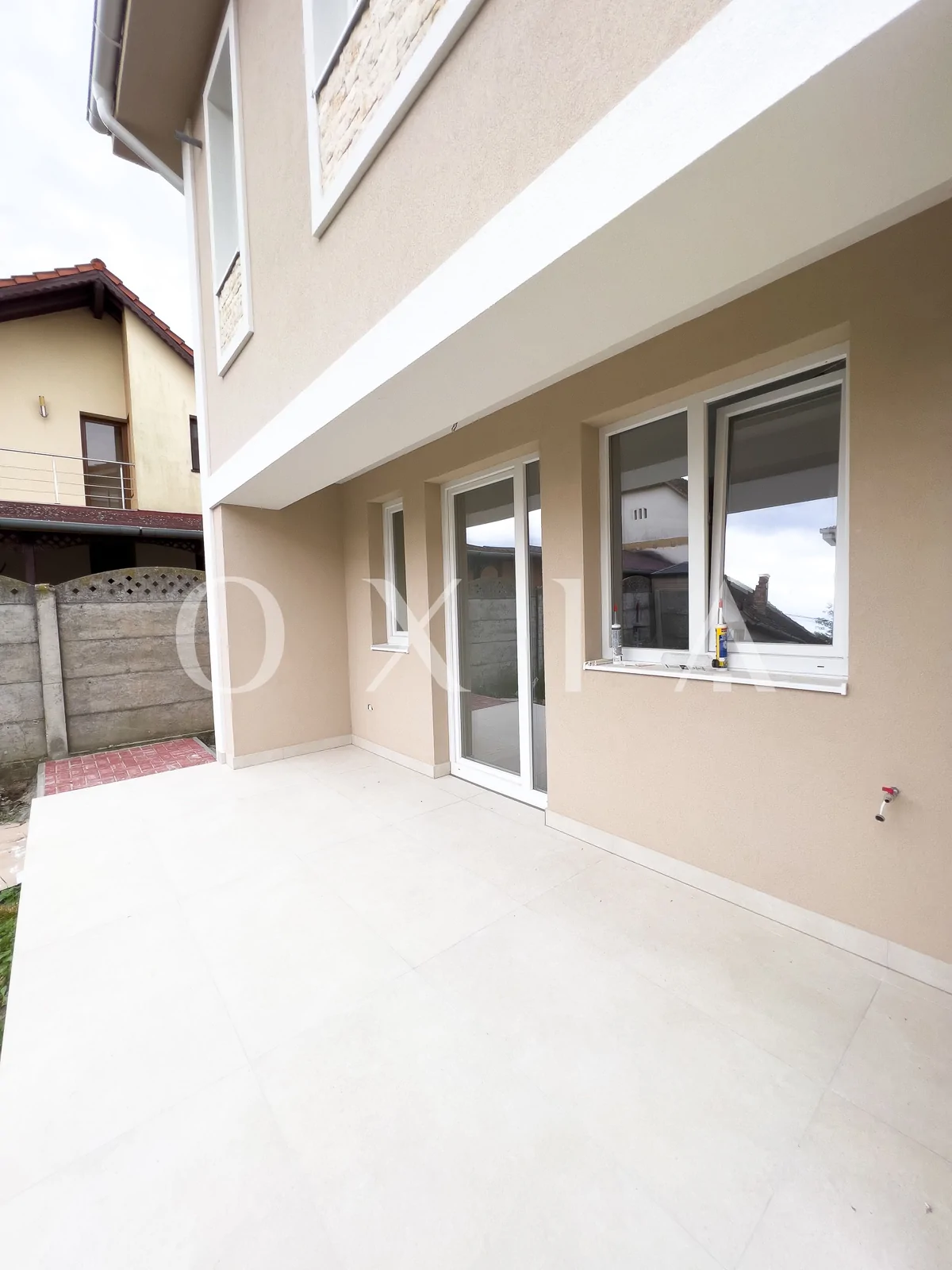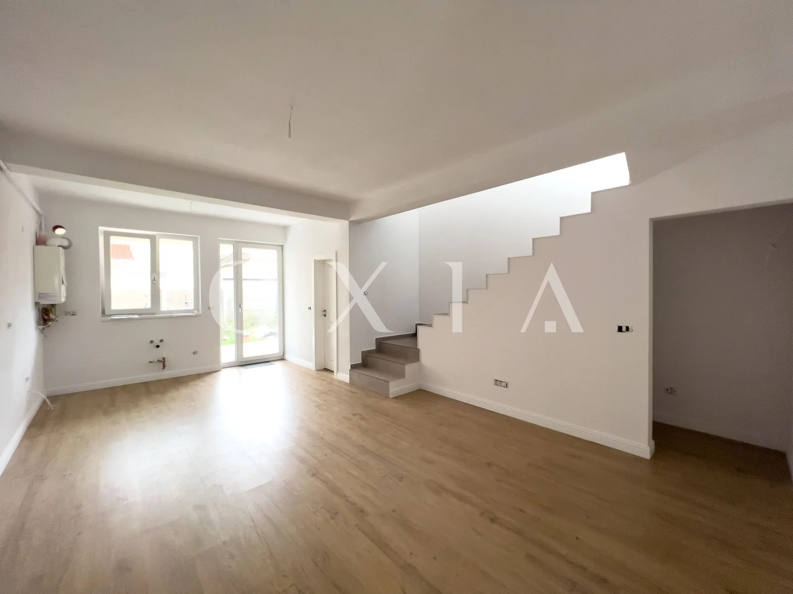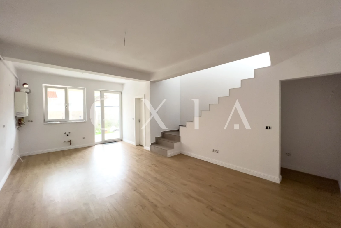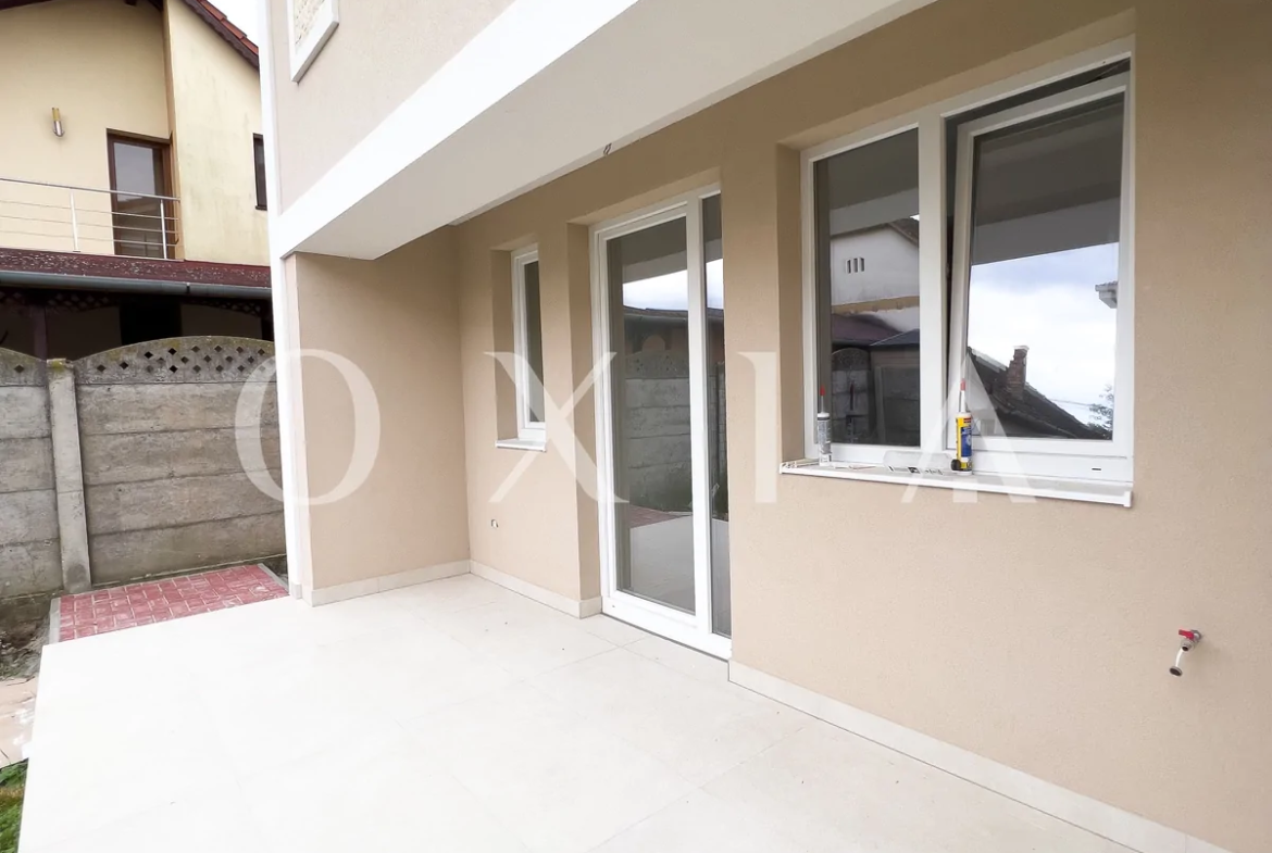 OXIA prezinta spre vanzare casa in Giroc, intr-un ansablu rezidential, cu suprafata terenului de 130 mp, suprafata construita de 130mp(amprenta casei la sol este de aproximativ 70mp), suprafata utila de 92 mp + 13 mp terasa partial acoperita, compartimentata astfel: