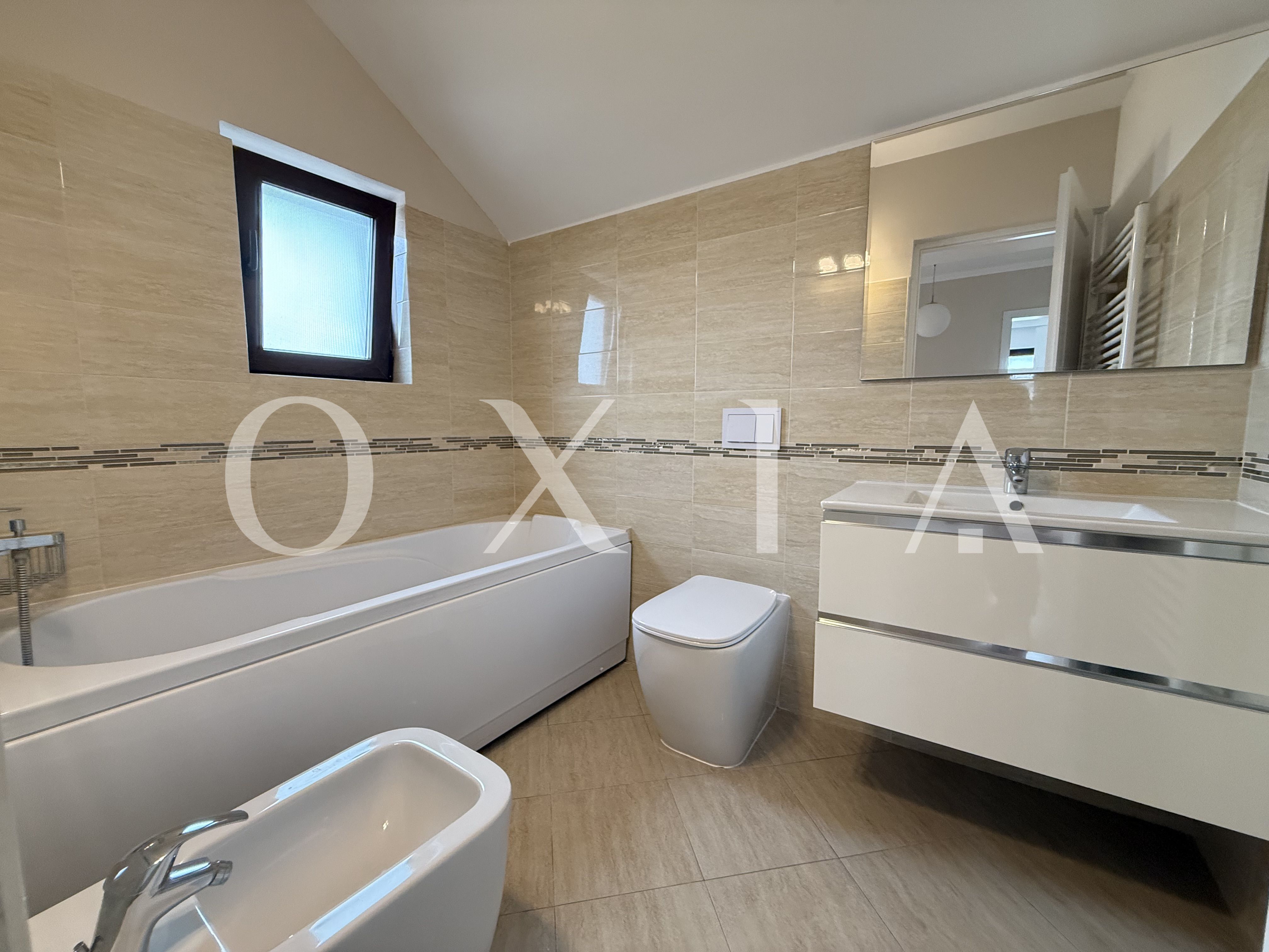 Casa este construita din caramida Porotherm , izolatie de 10 cm, geamuri PVC tripan, placi de gresie/faianta, acoperis din tigla, usi interioare celulare, parchet, vopsea lavabila.