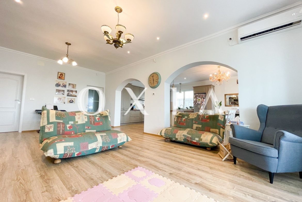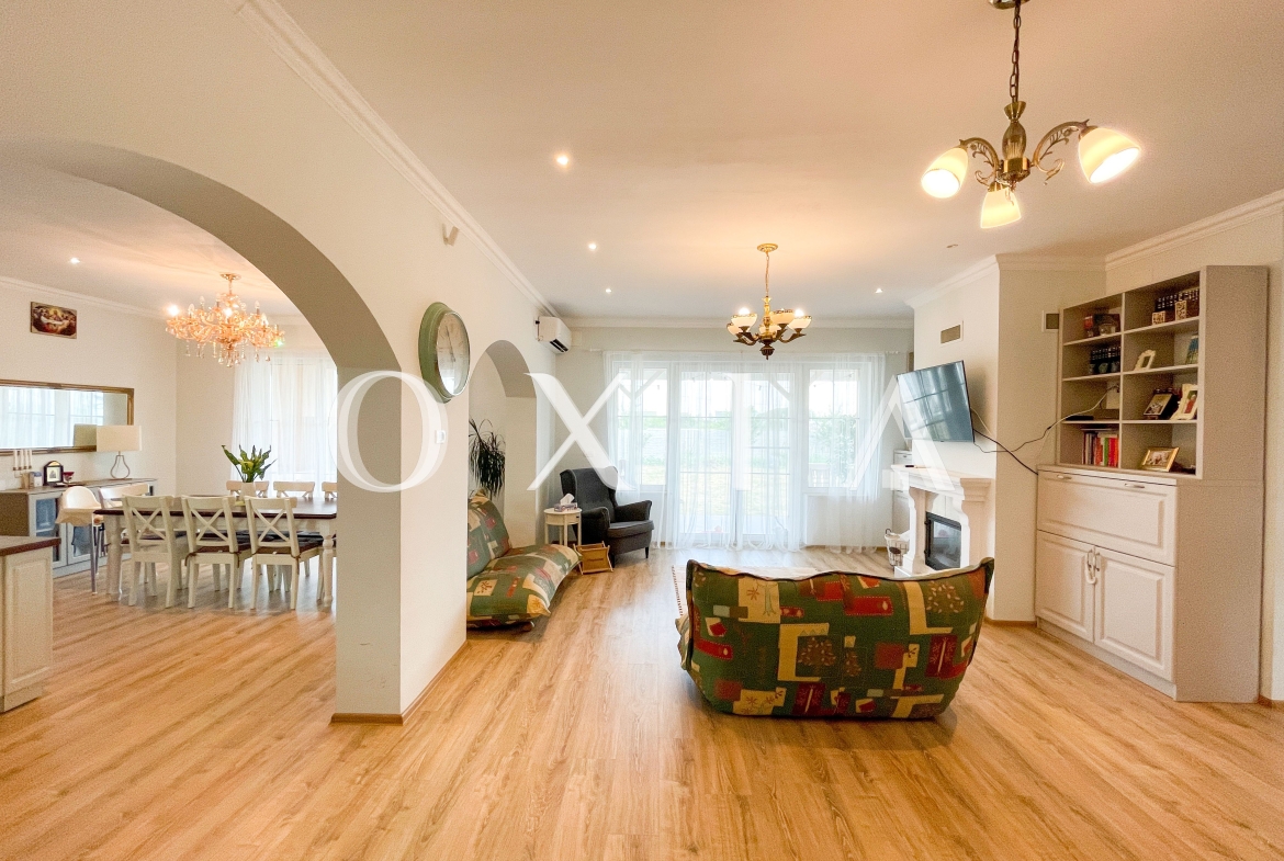OXIA prezinta spre vanzare casa pe parter cu garaj in Ghiroda, cu suprafata terenului de 1005 mp, suprafata construita de 250mp, suprafata utila de 180 mp + terasa de 42 mp, compartimentata astfel: