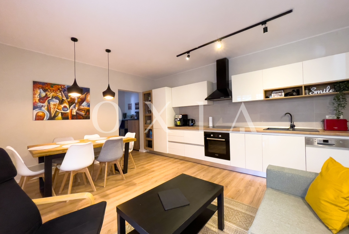 Imobilul a fost renovat intergal si beneficiaza de finisaje de calitate superioara: geamuri termopan cu 3 foi de sticla(tripan), parchet laminat pentru trafic intens, gresie, faianta, usi interior.