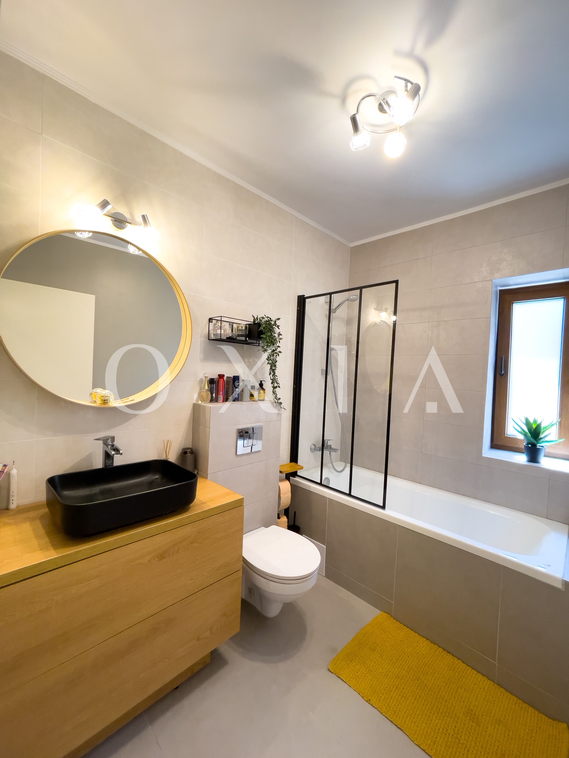 Imobilul a fost renovat intergal si beneficiaza de finisaje de calitate superioara: geamuri termopan cu 3 foi de sticla(tripan), parchet laminat pentru trafic intens, gresie, faianta, usi interior.