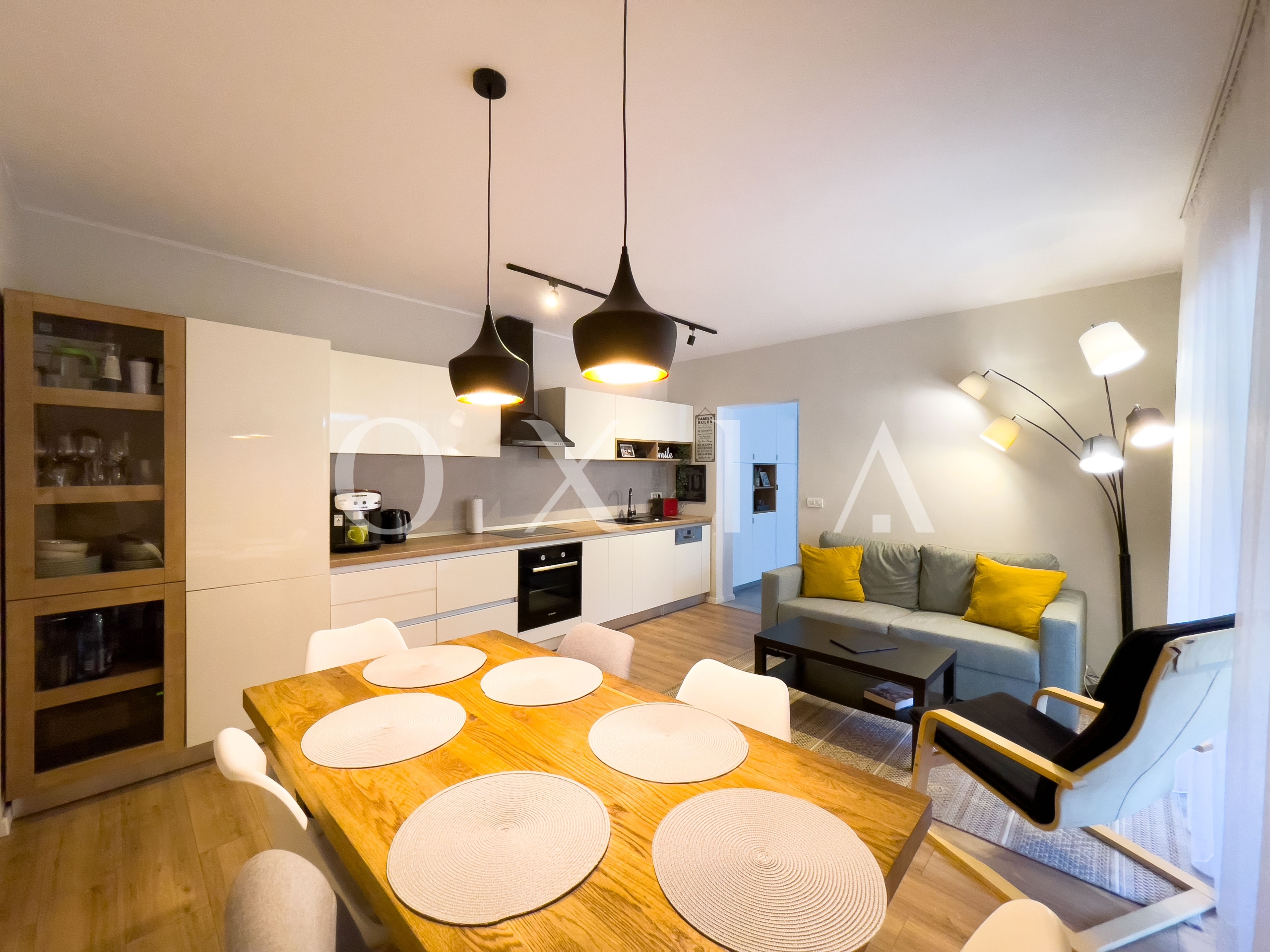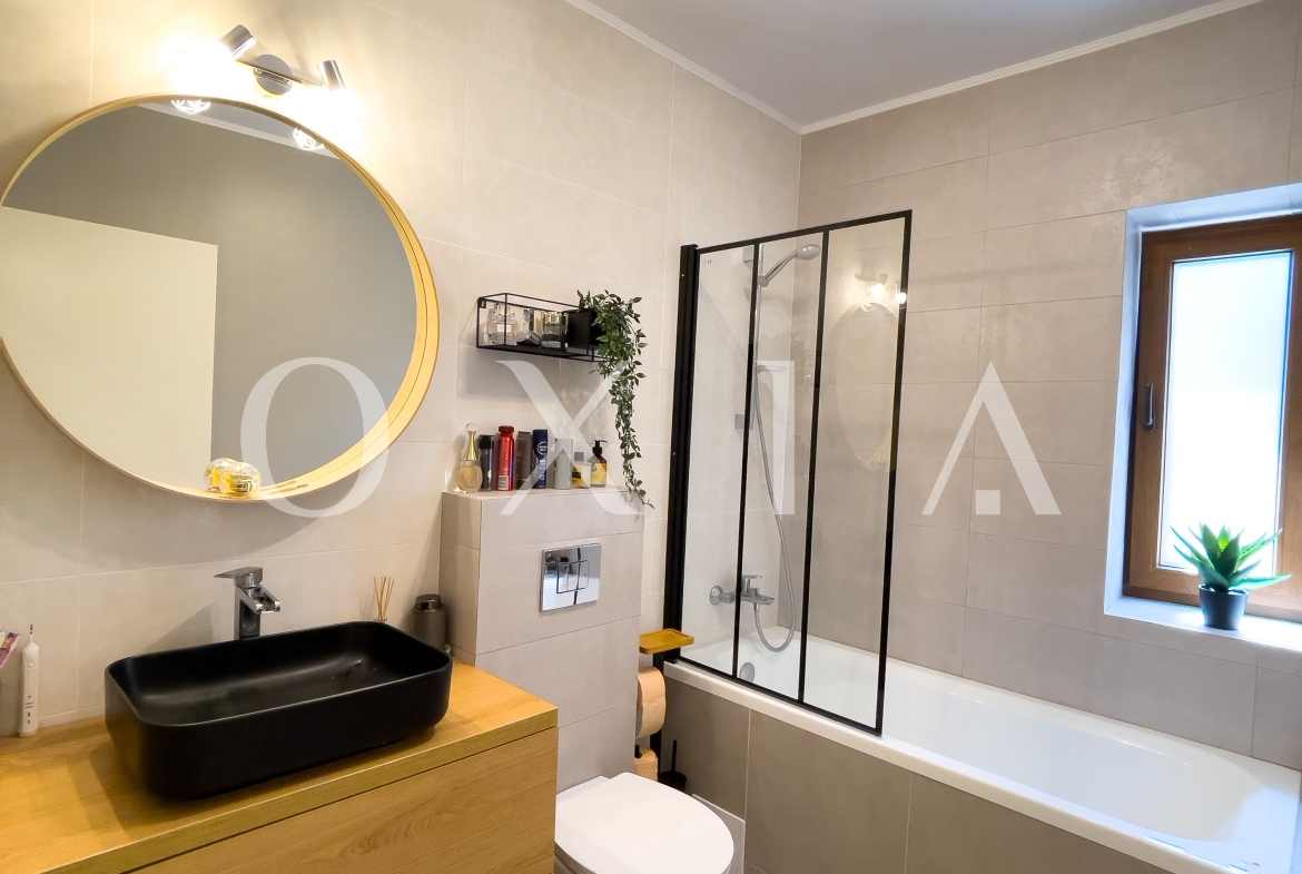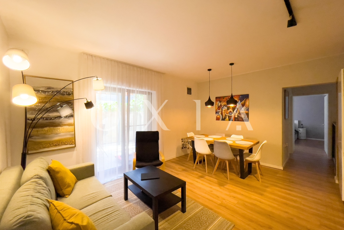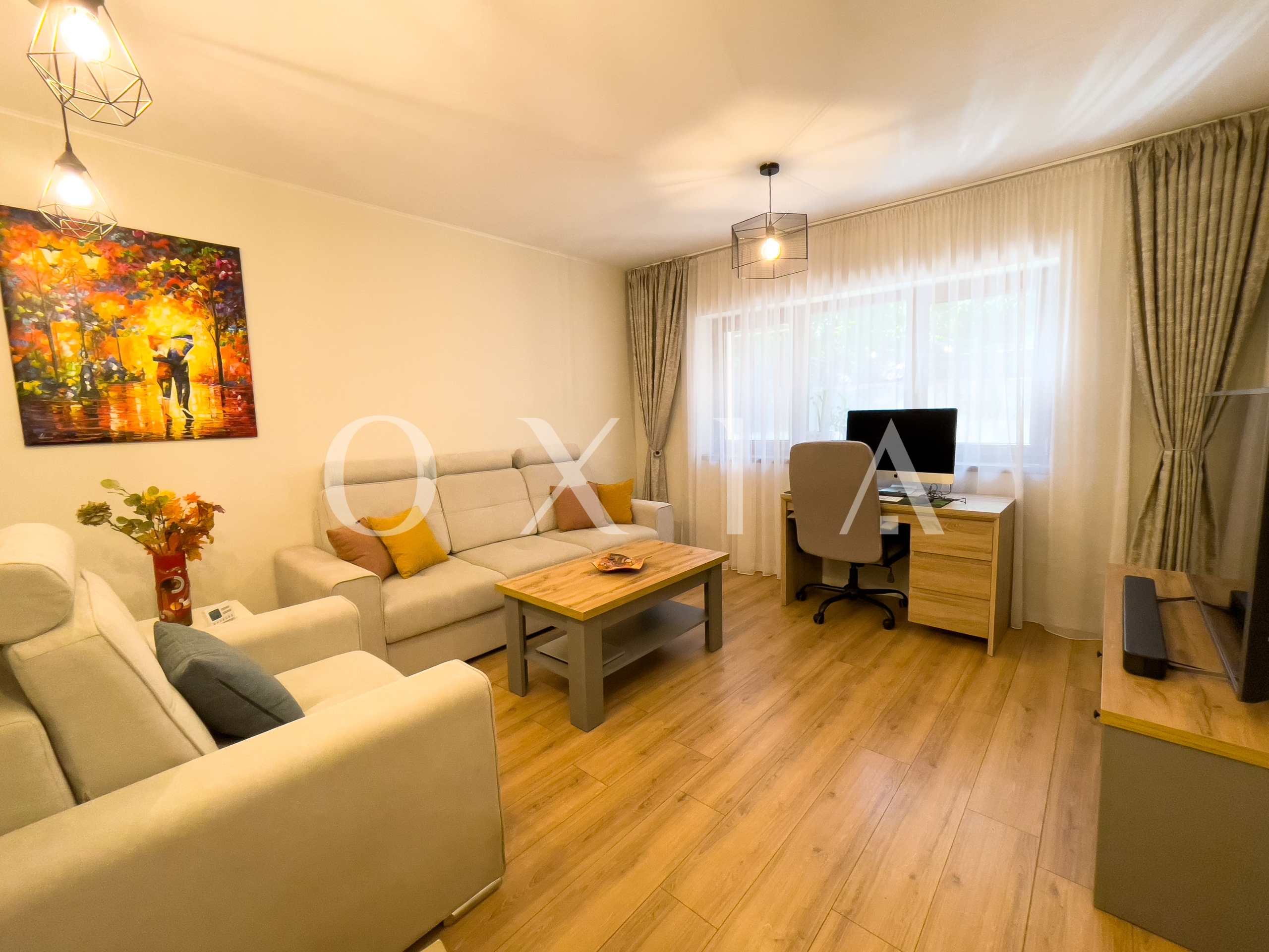 Imobilul a fost renovat intergal si beneficiaza de finisaje de calitate superioara: geamuri termopan cu 3 foi de sticla(tripan), parchet laminat pentru trafic intens, gresie, faianta, usi interior.