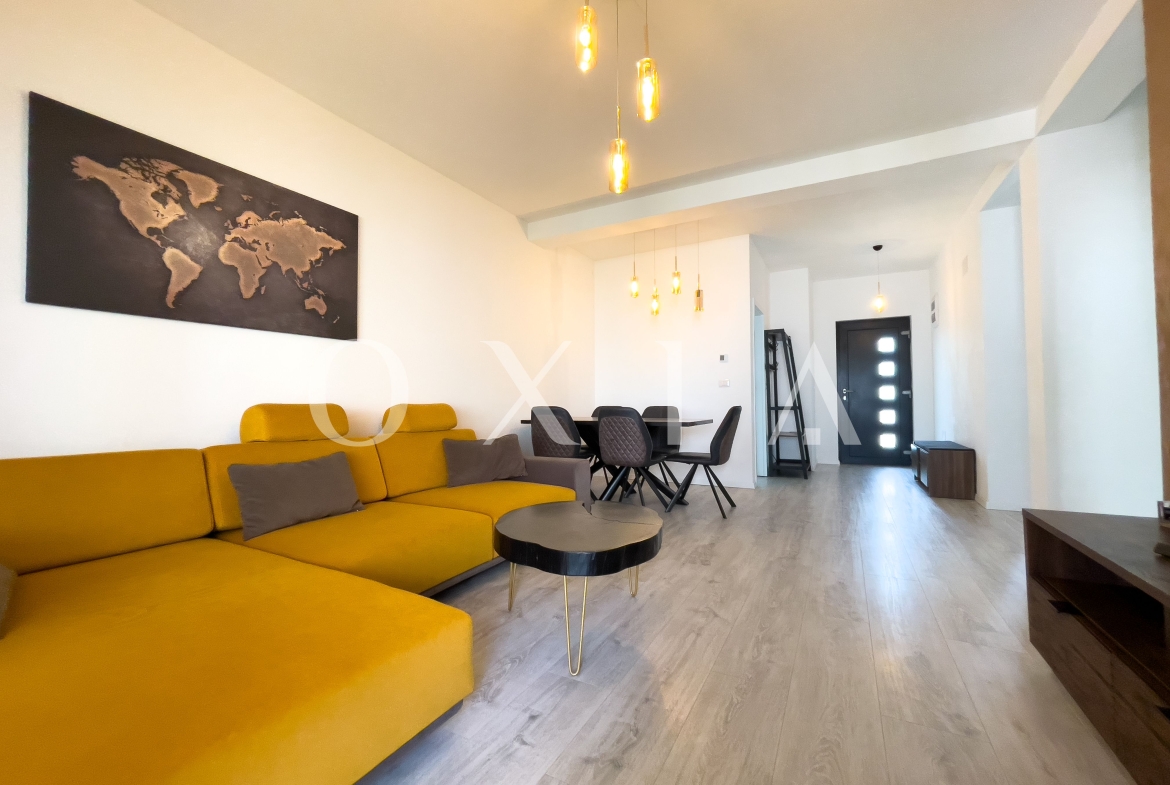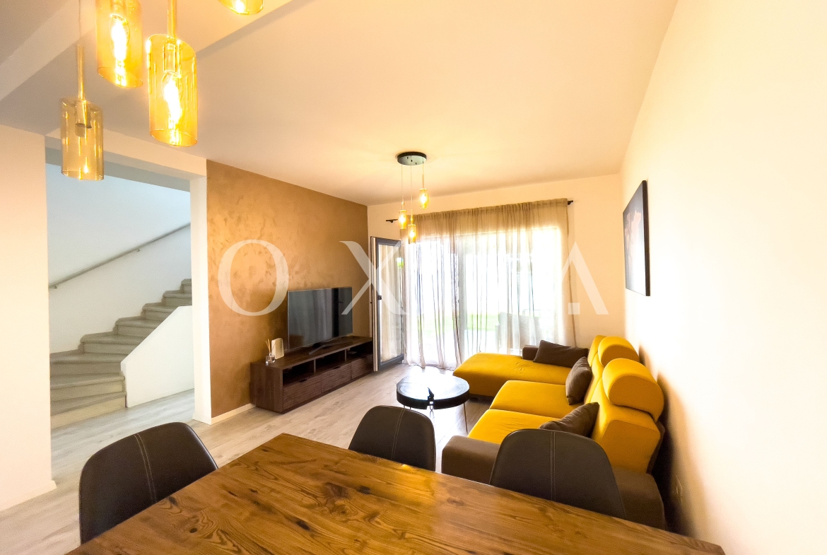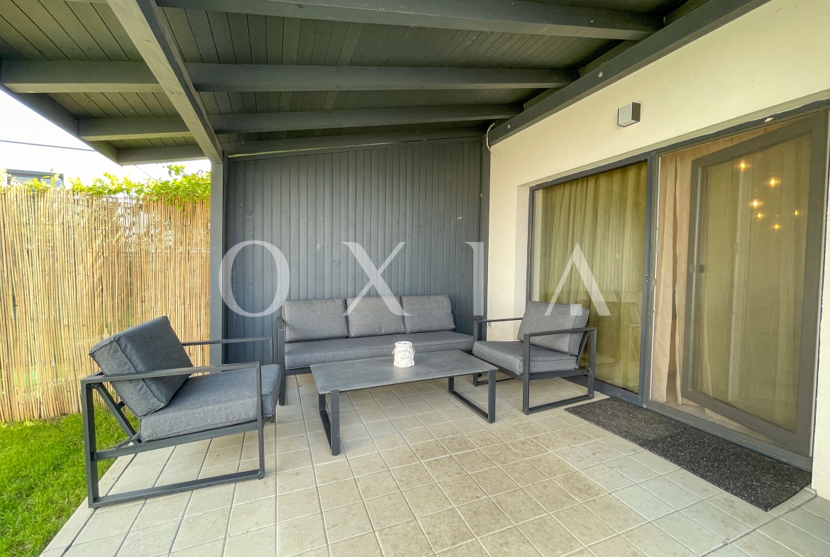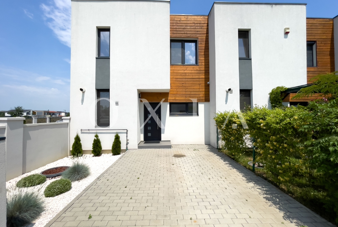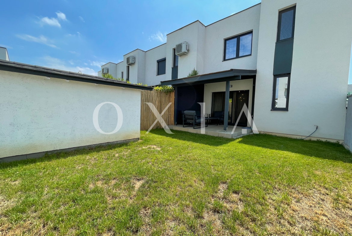 OXIA prezinta spre inchiriere casa in anamblu rezidential, P+E cu suprafata terenului de 200 MP, suprafata utila de 102 MP, compartimentata astfel: