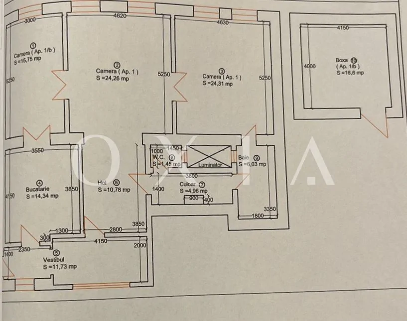 OXIA prezinta spre vanzare apartament circular cu 3 camere situat in zona istorica in apropiere de Parcul Carmen Sylva ,la parterul unui imobil cu regim de inaltime Demisol+P+1,cu suprafata de 113,65 mp utili, compartimentat astfel: