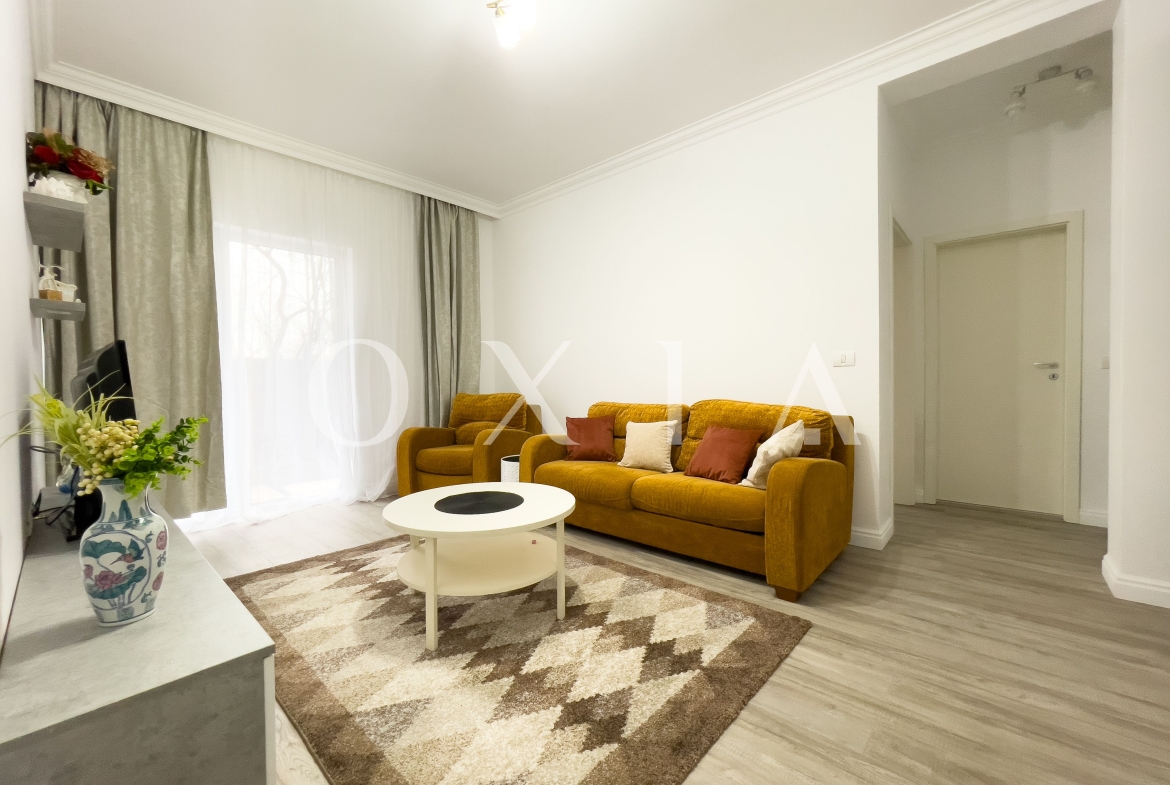 OXIA prezinta spre inchiriere apartament cu 2 camere in Giroc, situat la parterul unui imobil cu 2 etaje, semidecomandat, cu suprafata de 50 MP utili + 40 MP gradina, compartimentat astfel: