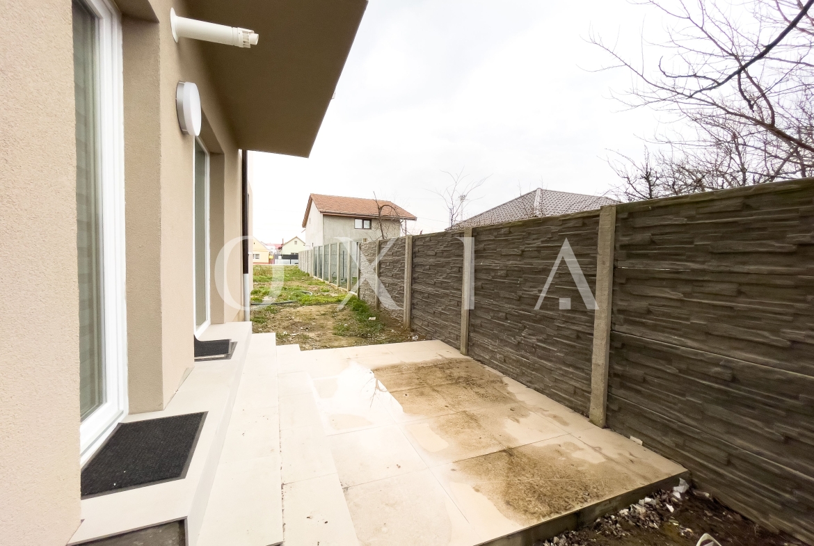 OXIA prezinta spre inchiriere apartament cu 2 camere in Giroc, situat la parterul unui imobil cu 2 etaje, semidecomandat, cu suprafata de 50 MP utili + 40 MP gradina, compartimentat astfel: