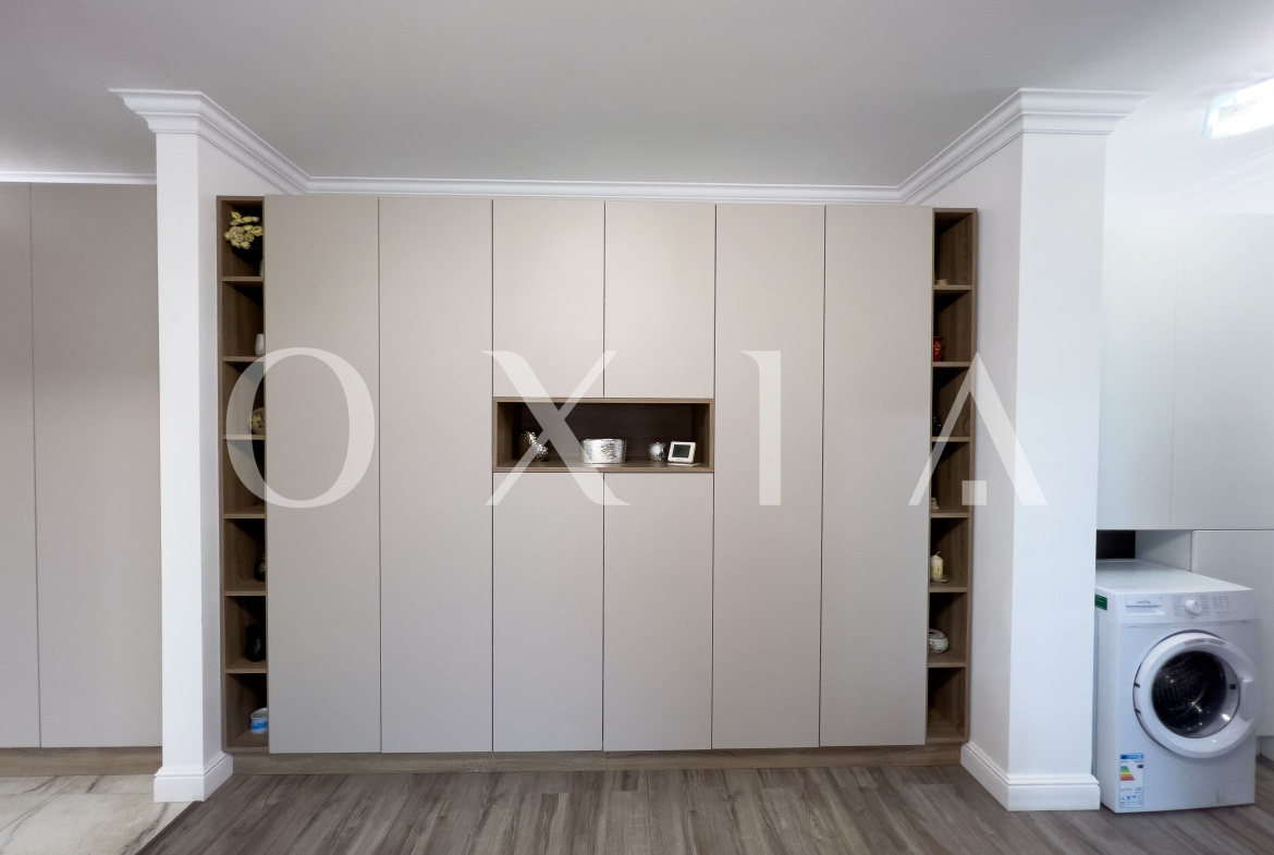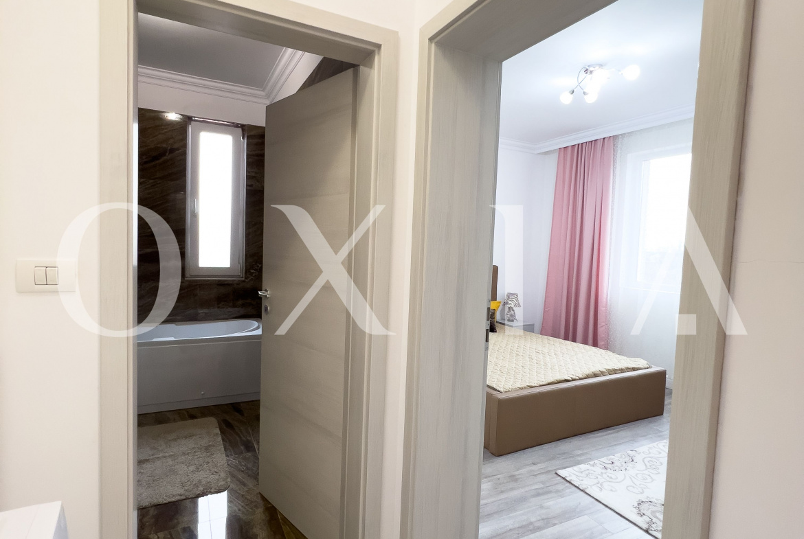 Dormitorul are in dotare un corp de mobilier ce poate fi folosit ca si birou sau zona de machiaj.