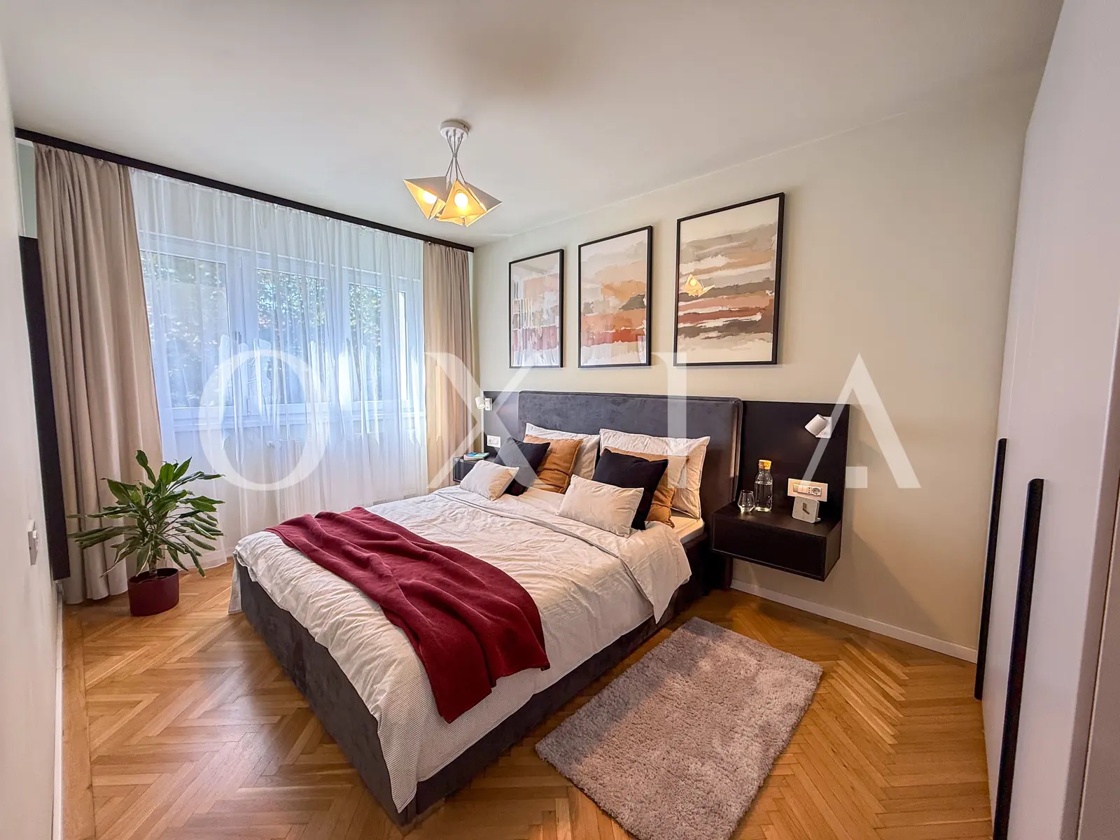 Apartamentul a fost renovat in totalitate si beneficiaza de amenajari moderne, placi de gresie/faianta, ferestre PVC cu geam termopan, usi interioare celulare, usa intrare metalica, vopsea lavabila, interfon, etc.