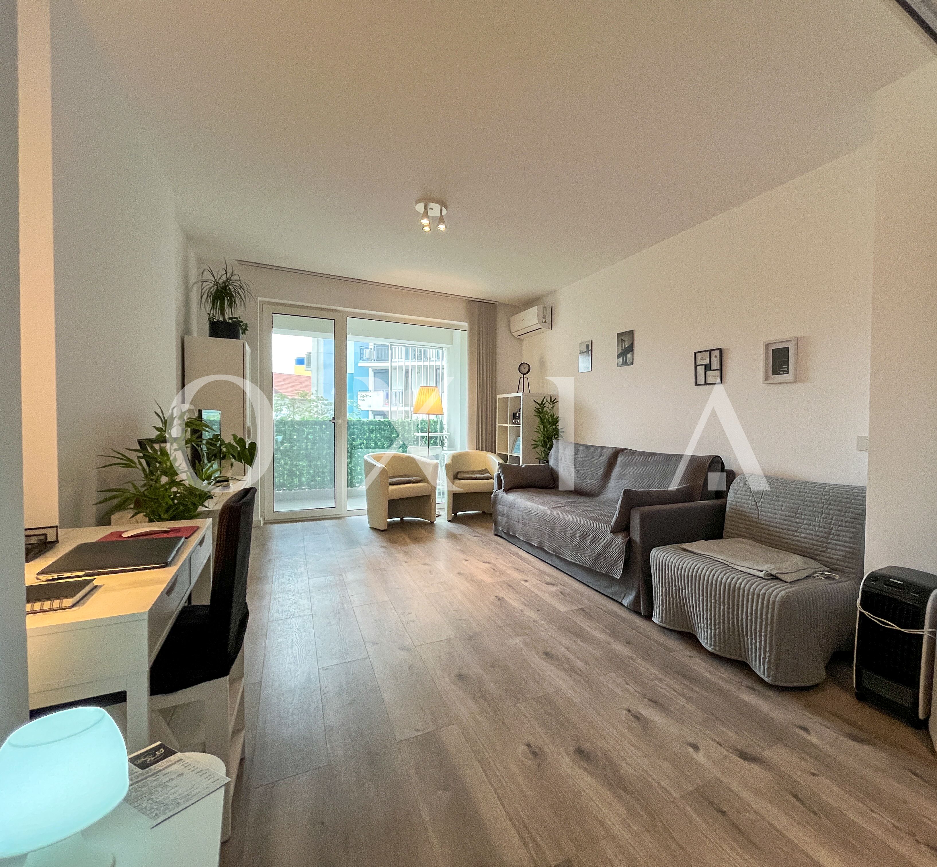 OXIA prezinta spre vanzare apartament tip studio, in Timisoara, zona Centrala, situat in imobil P+11E cu lift, la etajul 1, semidecomandat, cu suprafata de 45,5 MP utili + 4,4 MP balcon tip logie, compartimentat astfel: