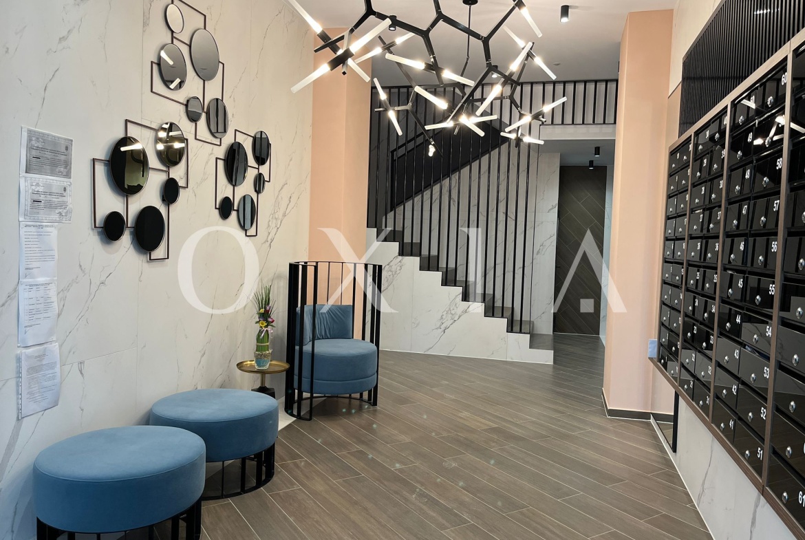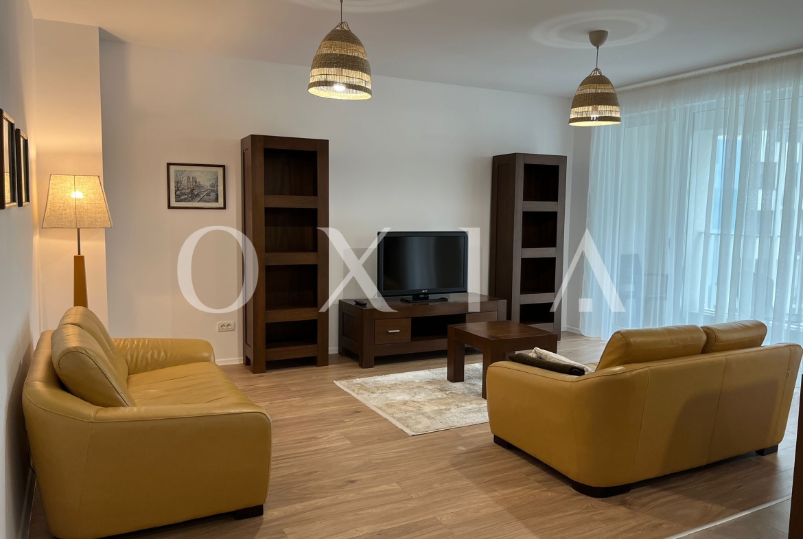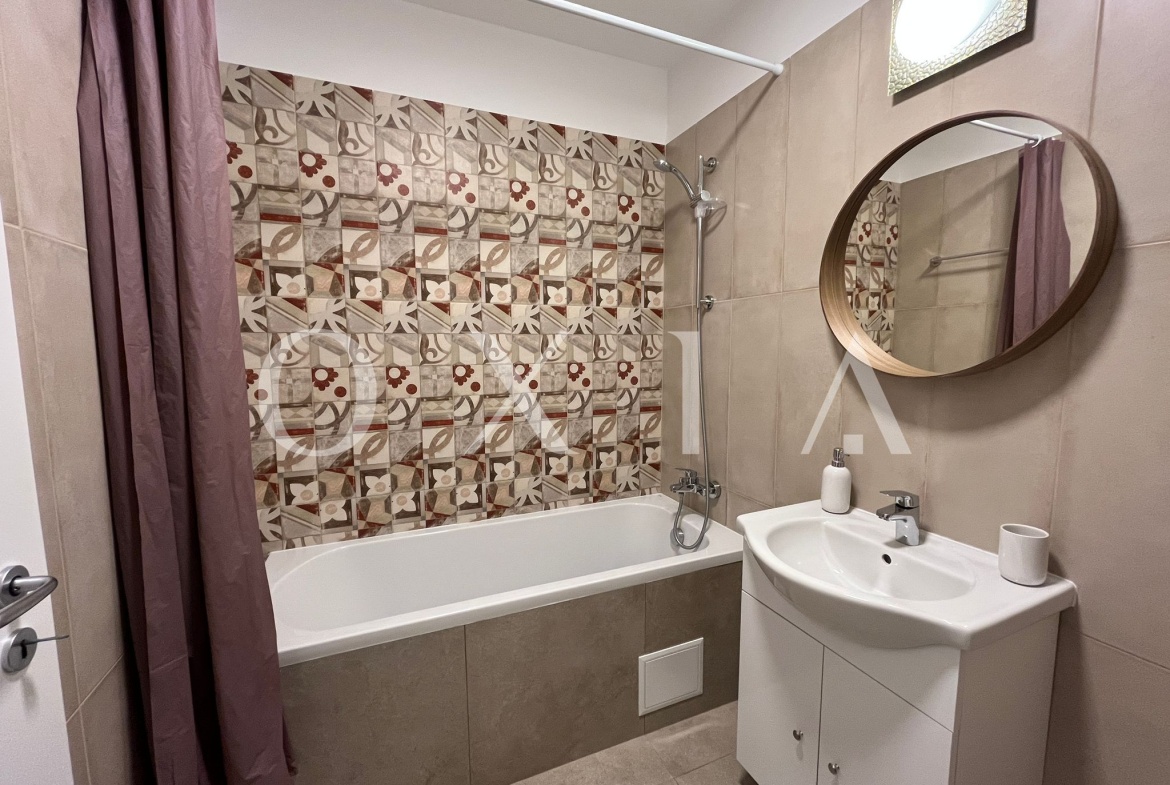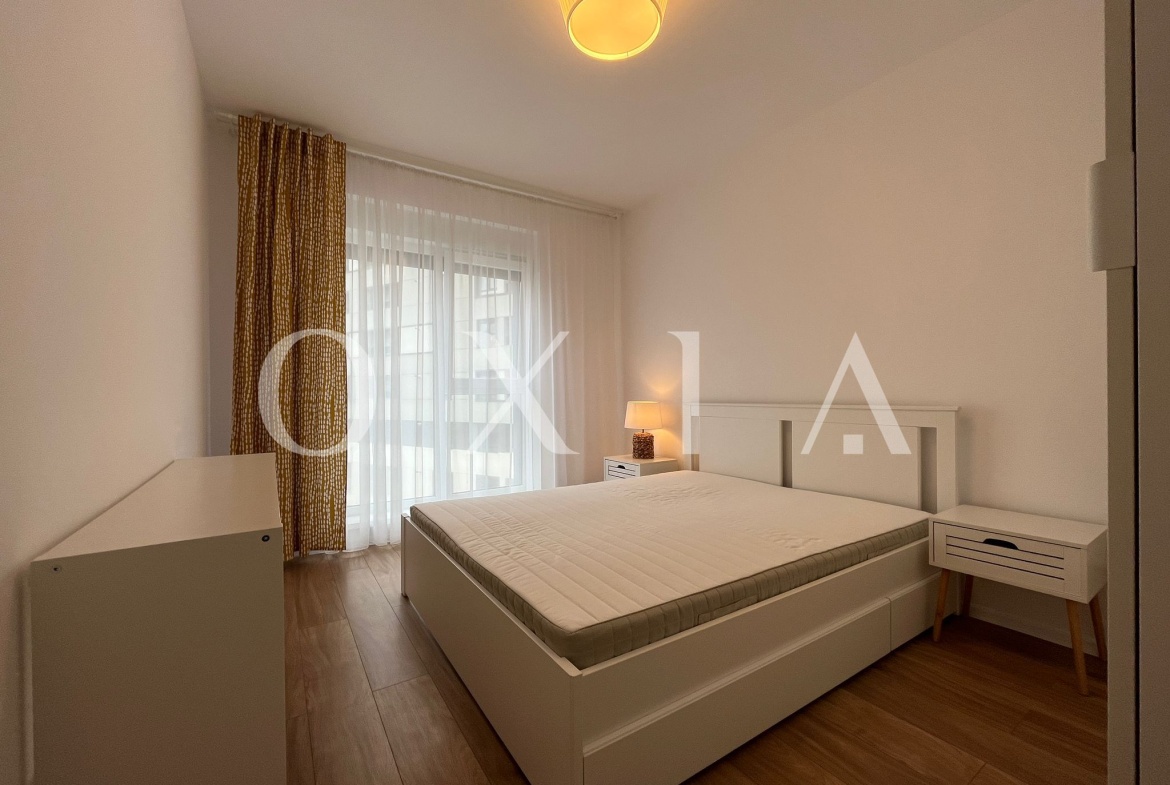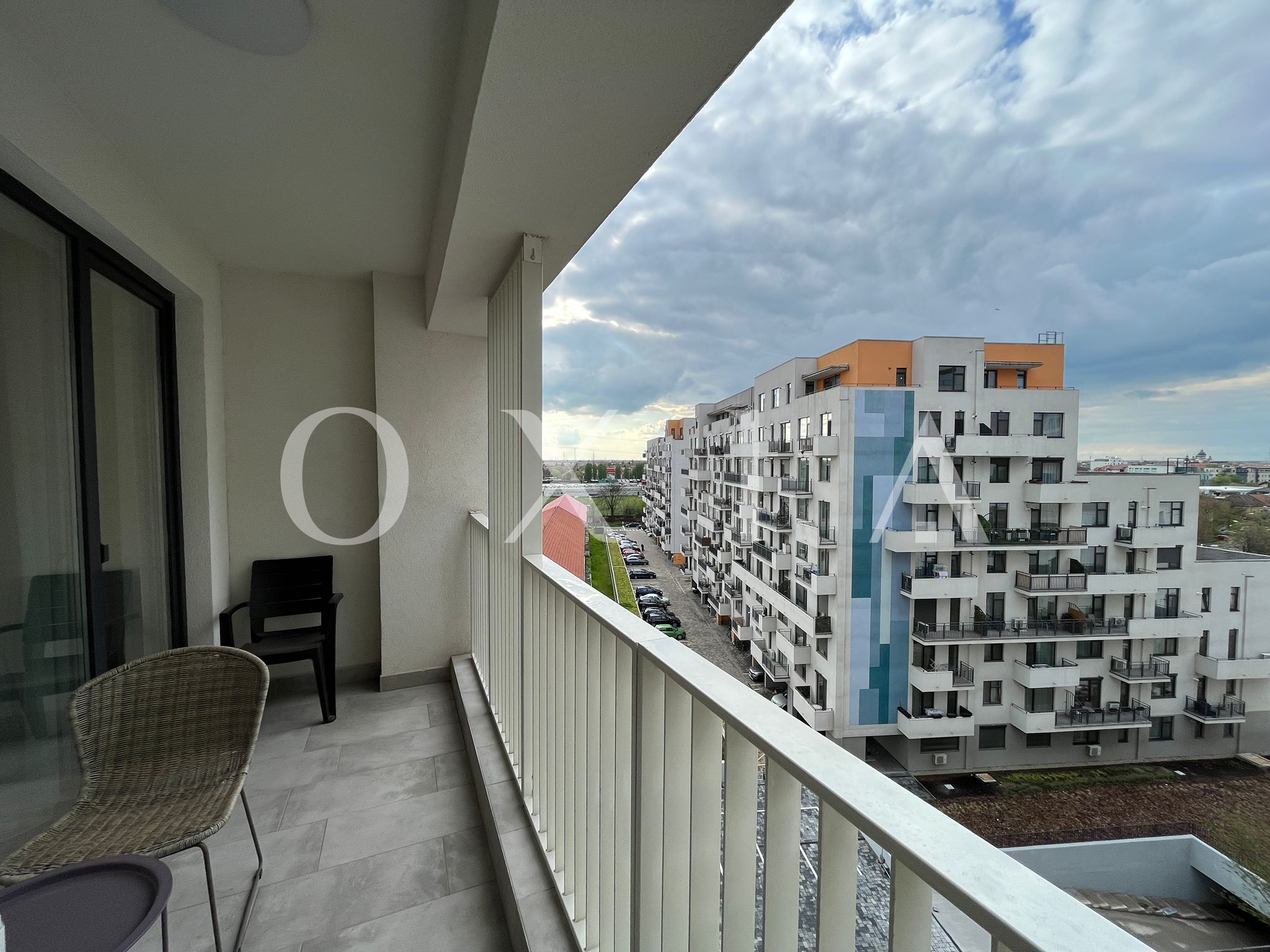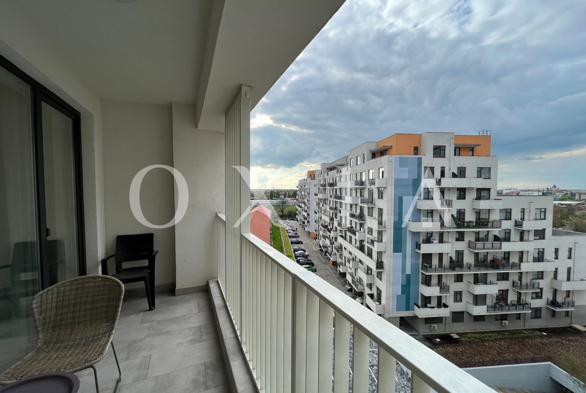 OXIA prezinta spre inchiriere apartament cu 2 camere, situat in Timisoara, complex rezidential City of Mara, la etajul 6/11, imobil dotat cu 2 lifturi, semidecomandat, cu suprafata de 55 mp utili+4mp terasa, compartimentat astfel: