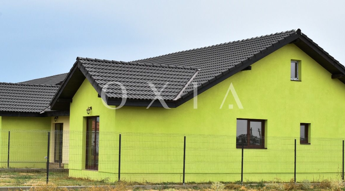 Casa este construita din caramida, izolata cu polistiren de 10cm EPS 80, acoperita cu tigla (spre pod este izolata cu vata minerala) .