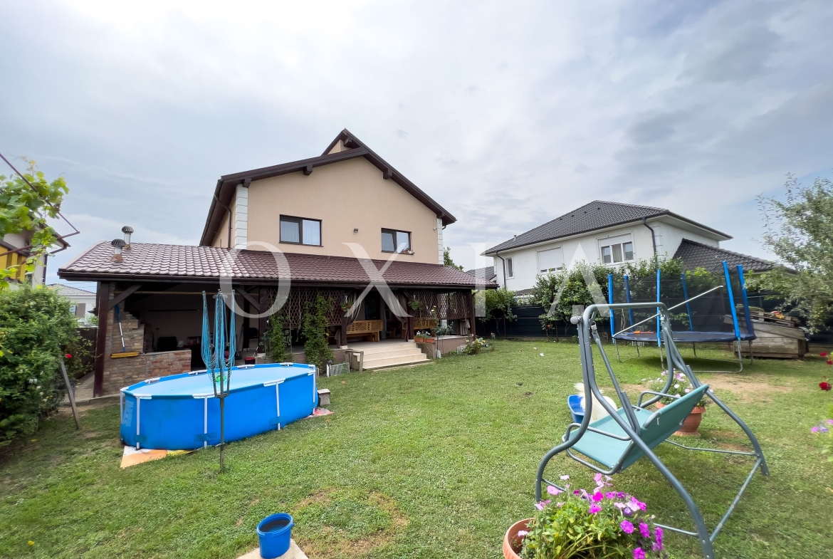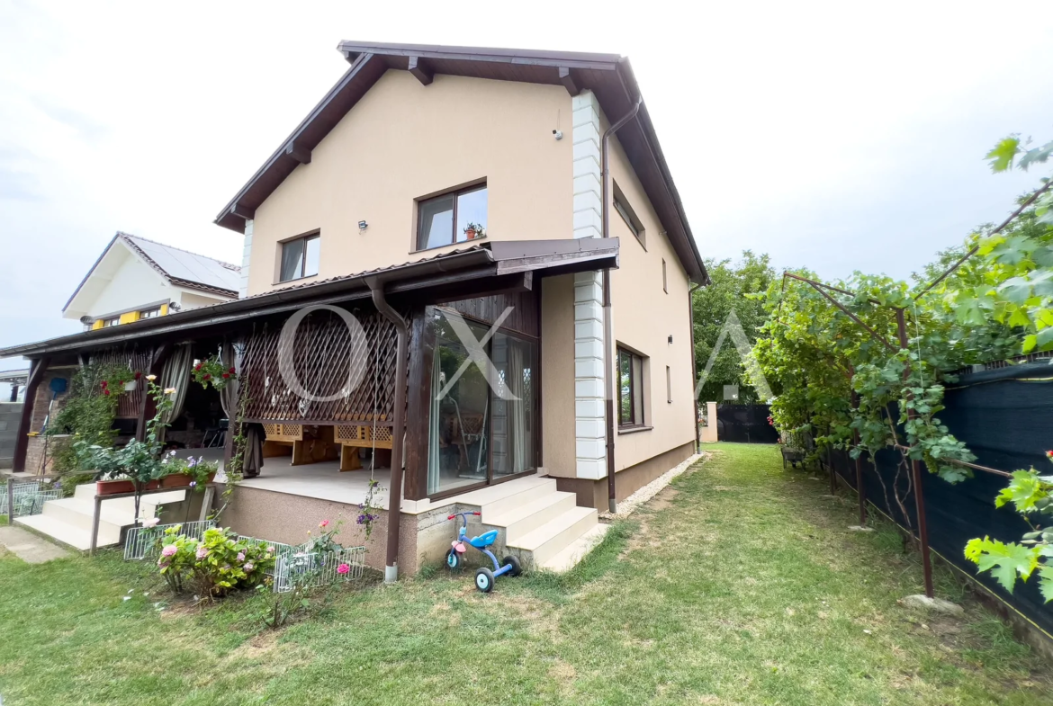 OXIA prezinta in exclusivitate spre vanzare casa individuala P+E in Dumbravita cu acces de pe Bulevardul Ion Creanga, imobil P+E din 2011, cu suprafata terenului de 869 mp, suprafata construita de 225 mp, suprafata utila de 203 mp, compartimentata astfel: