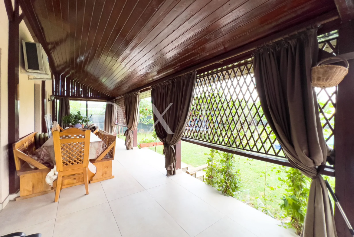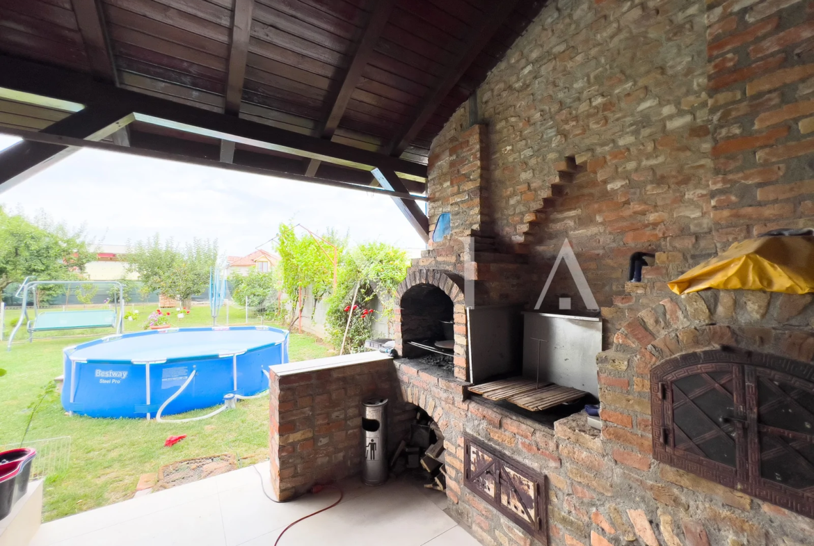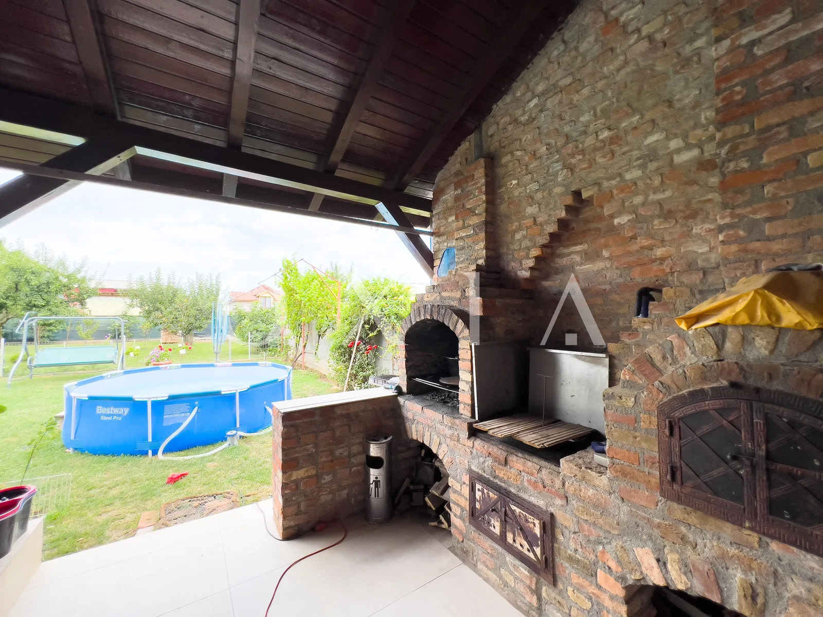 Casa este construita din caramida porotherm de 30 cm, izolata cu polistiren de 10 cm, acoperita cu tigla.
